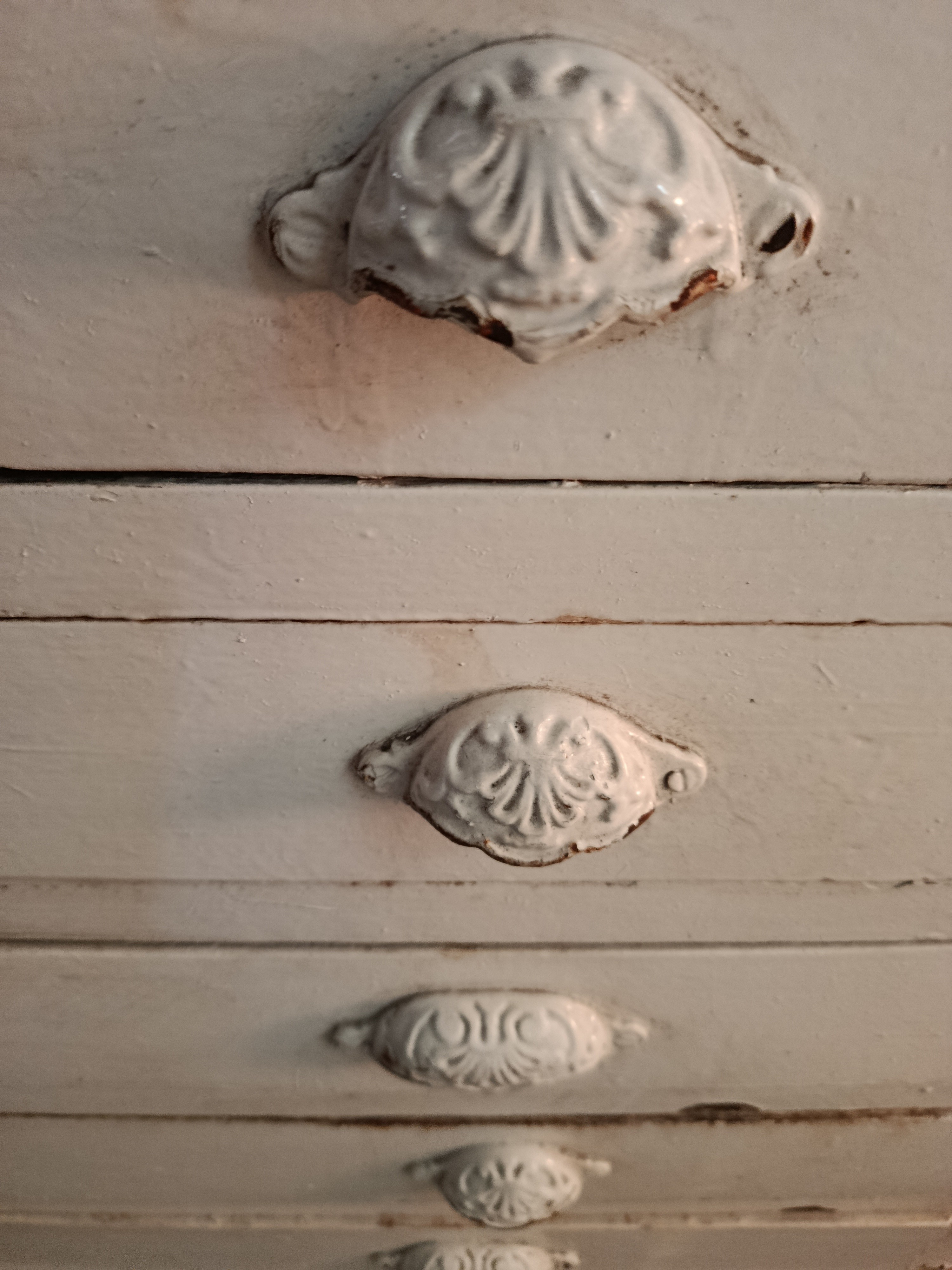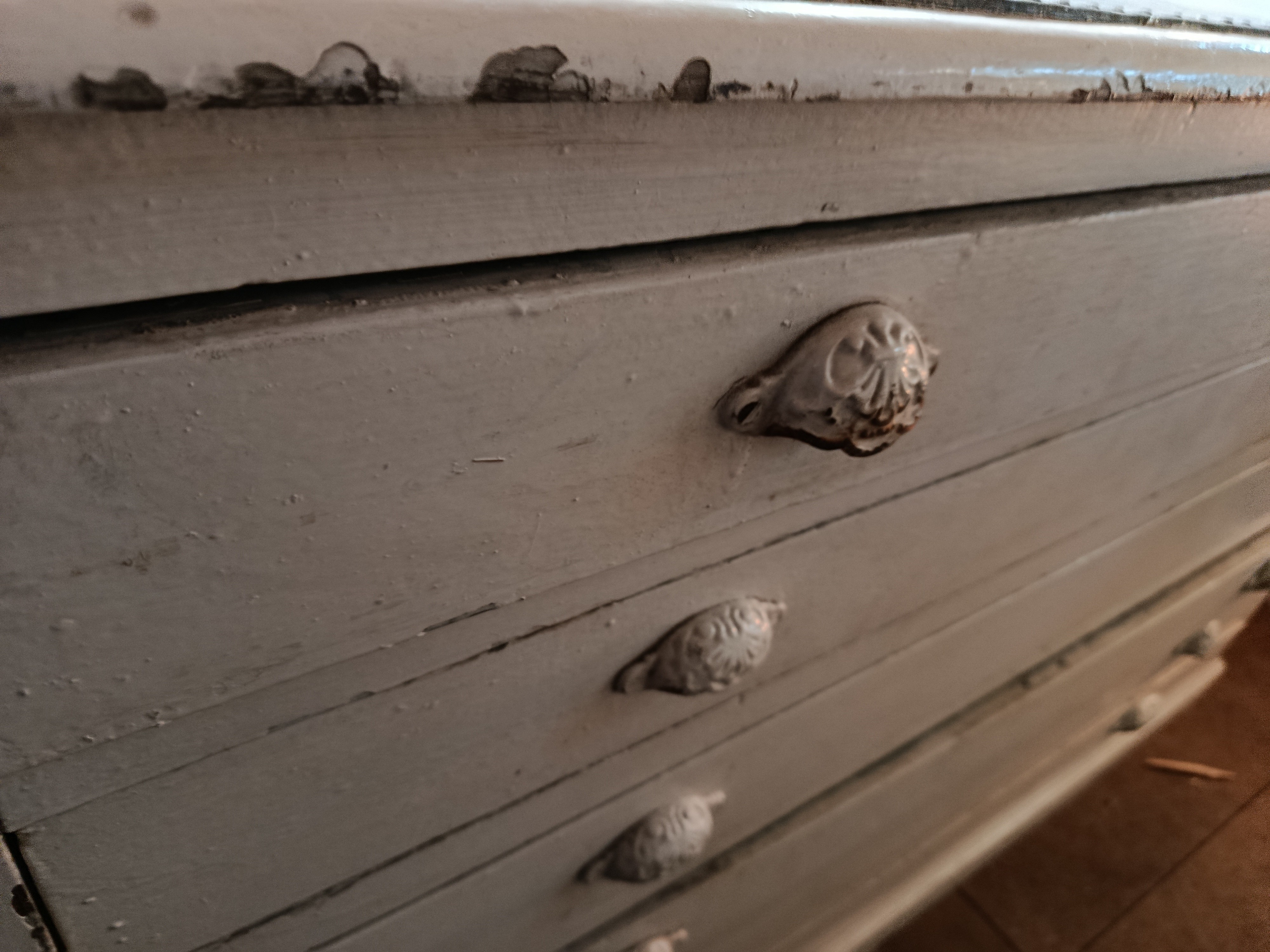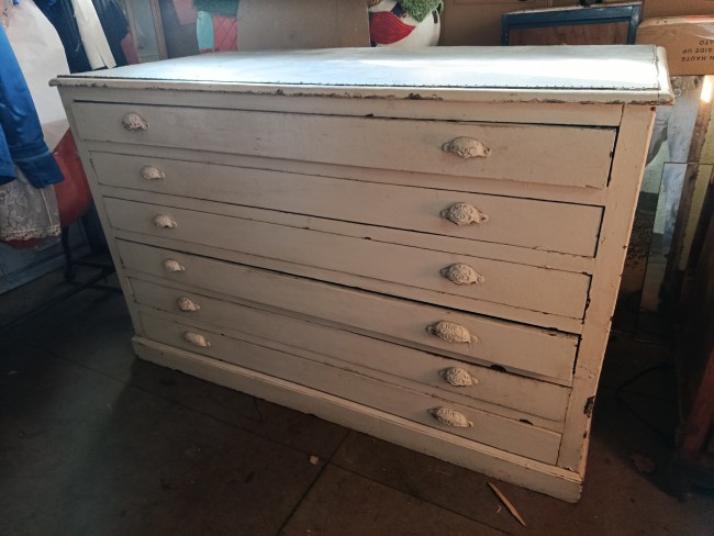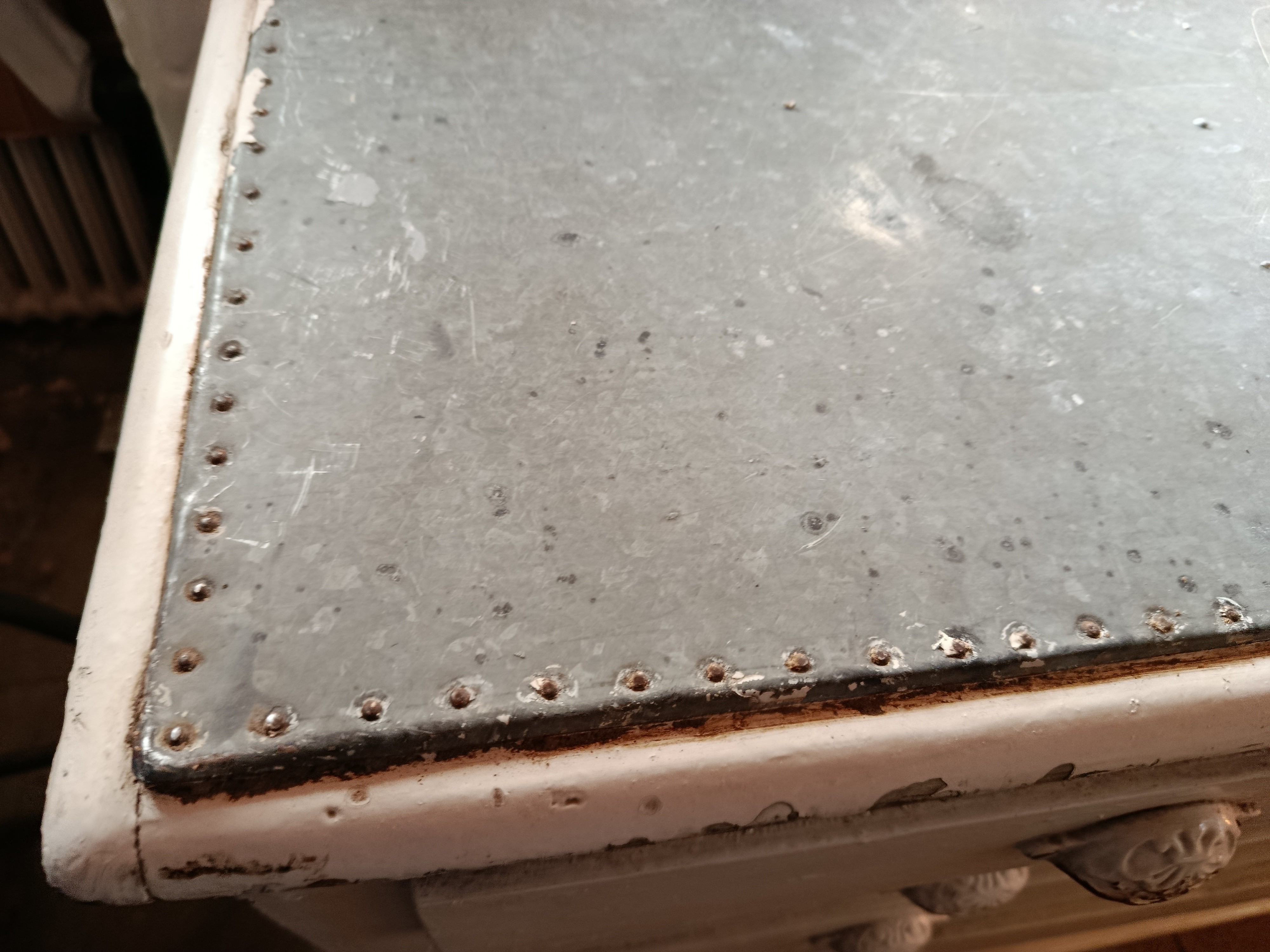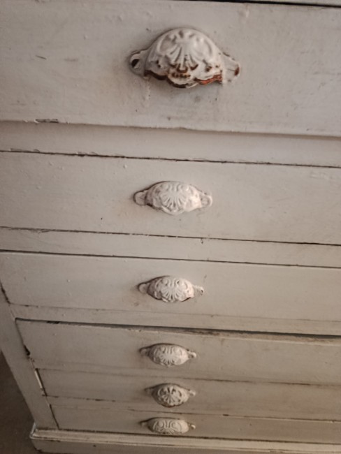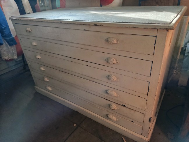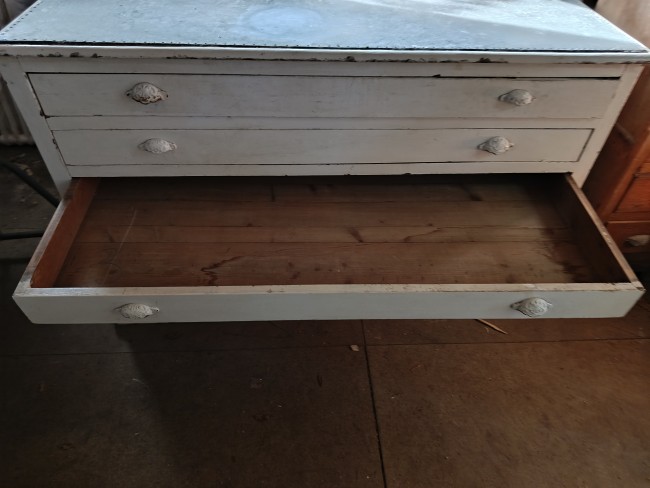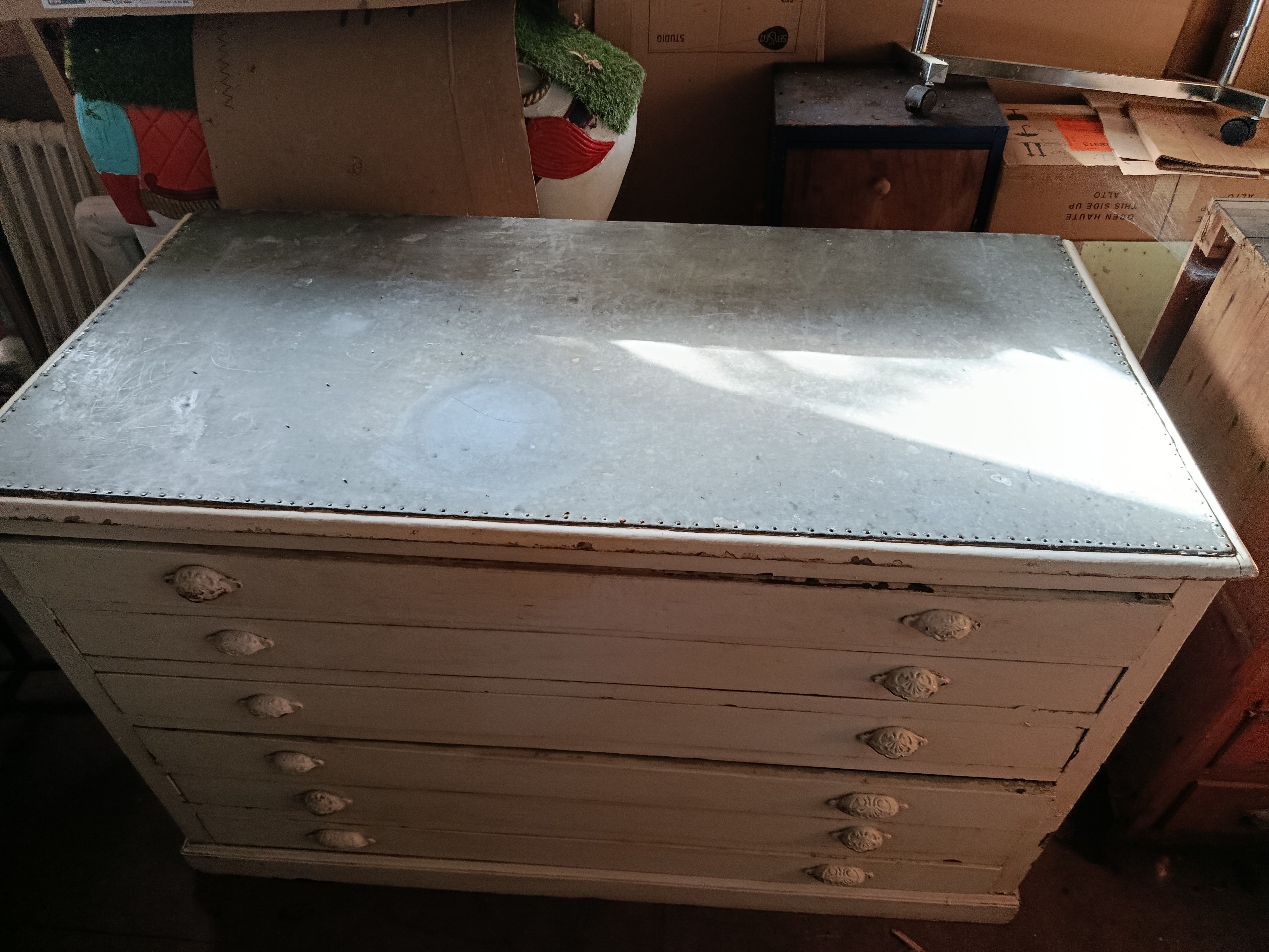 Meuble de métier - récupéré dans une arrière boutique de Fleuriste - magasin de village fermé depuis des lustres. - très grands tiroirs tous fonctionnels - superbes poignées en métal aux motifs travaillés - dessus du meuble en zinc