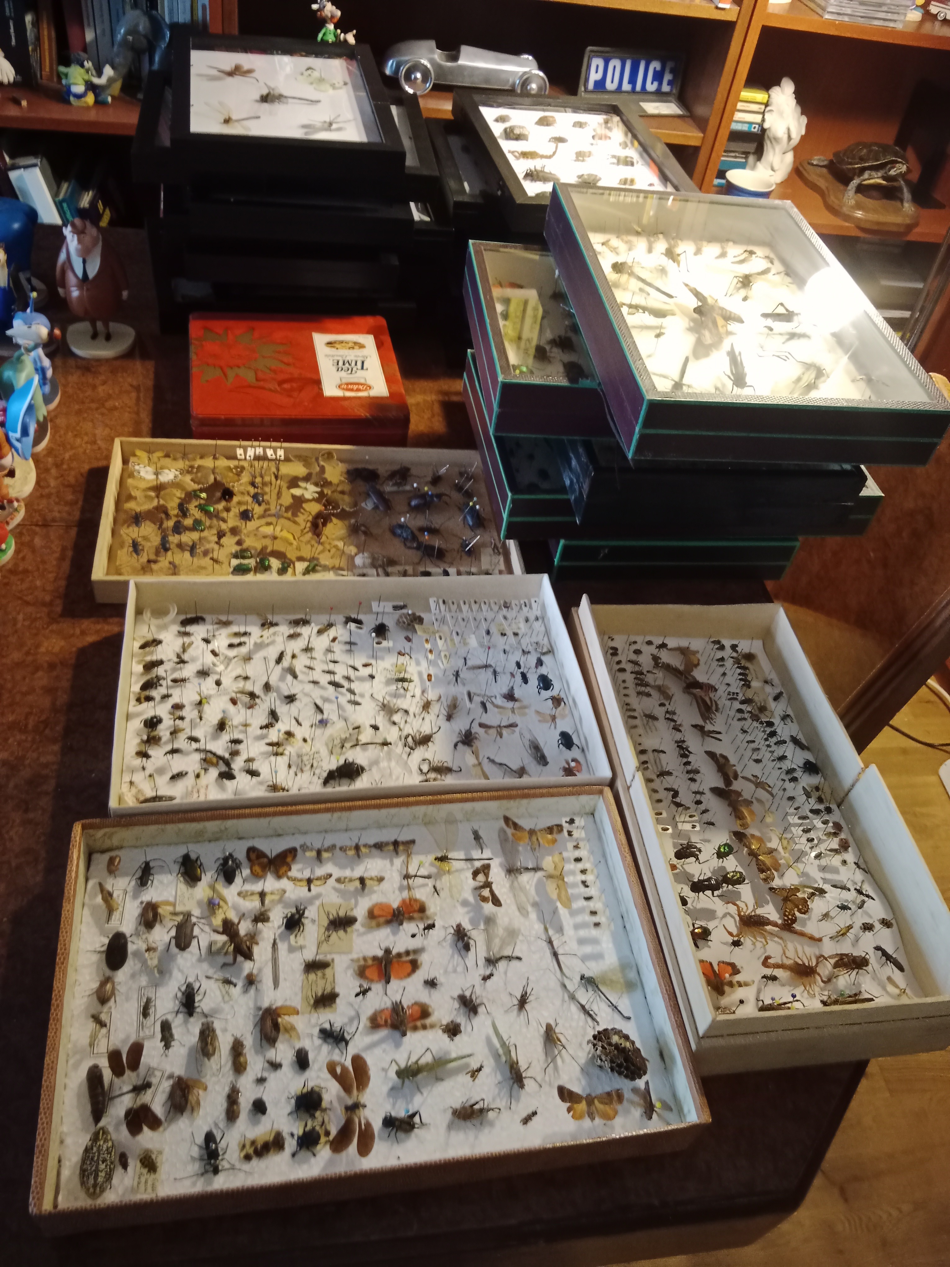Impressionante collection d'insectes et papillons épinglés , en boites et en cadres dont une partie spécialement conçue à cet effet (Deyrolle - boubée) - plus ou moins 70 supports - Cette collection entomologique appartenait à un amateur avisé - pour collectionneur ou amateur - cabinet de curiosités