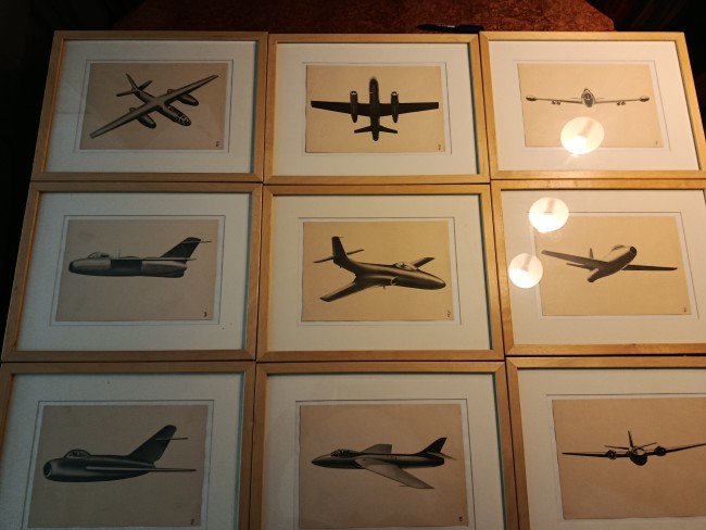 Encadrés de dessins (fusain?) avions prototypes - essais de soufflerie - années 60 - rare - très déco