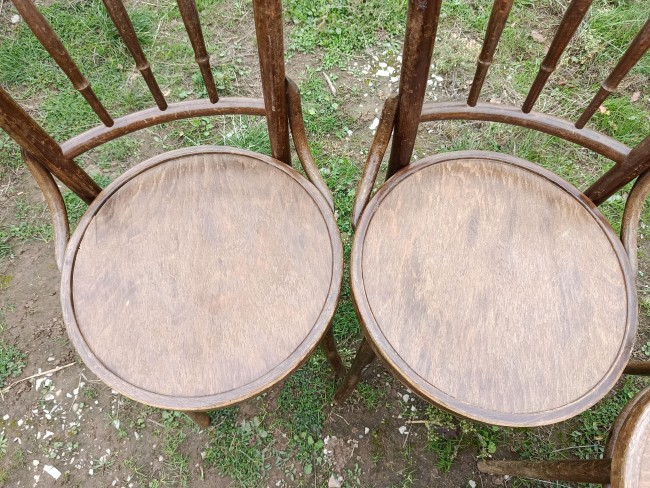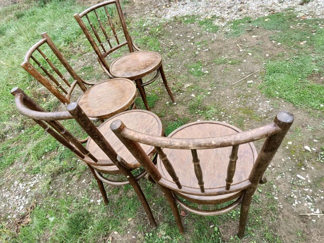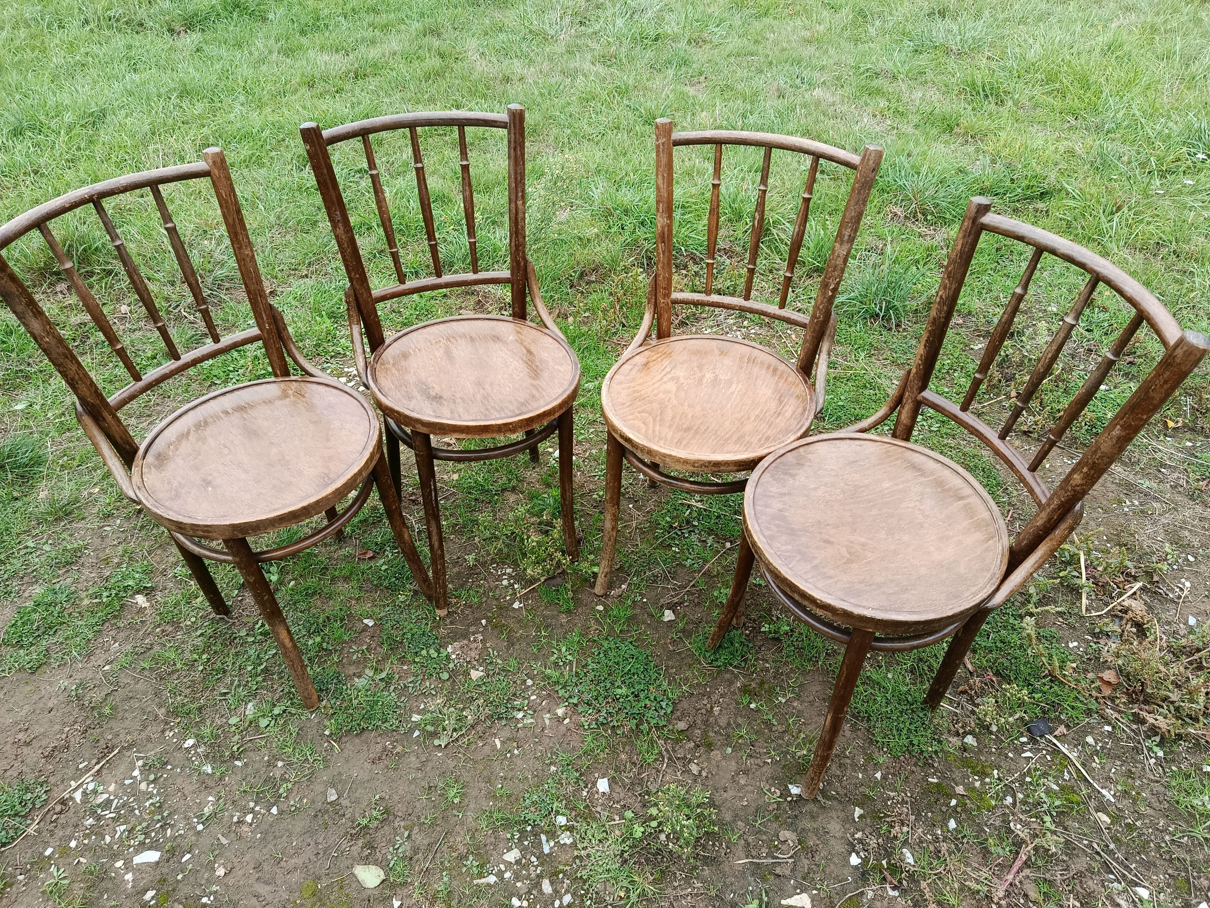 4 chaises - thonet ou style - impossible à déterminer - aucune expertise - mais de belle facture - quelques vis de consolidation ici ou là mais elles se tiennent très bien -