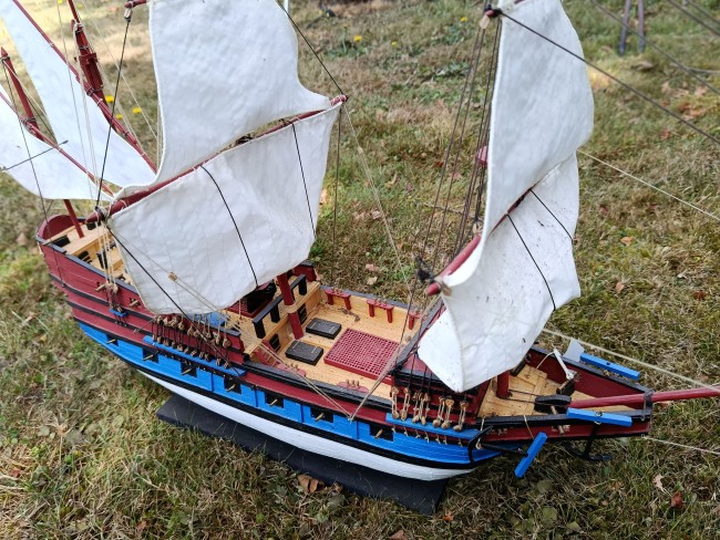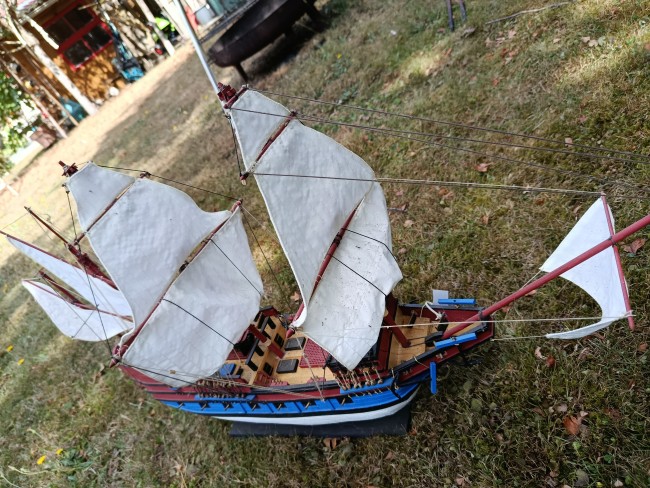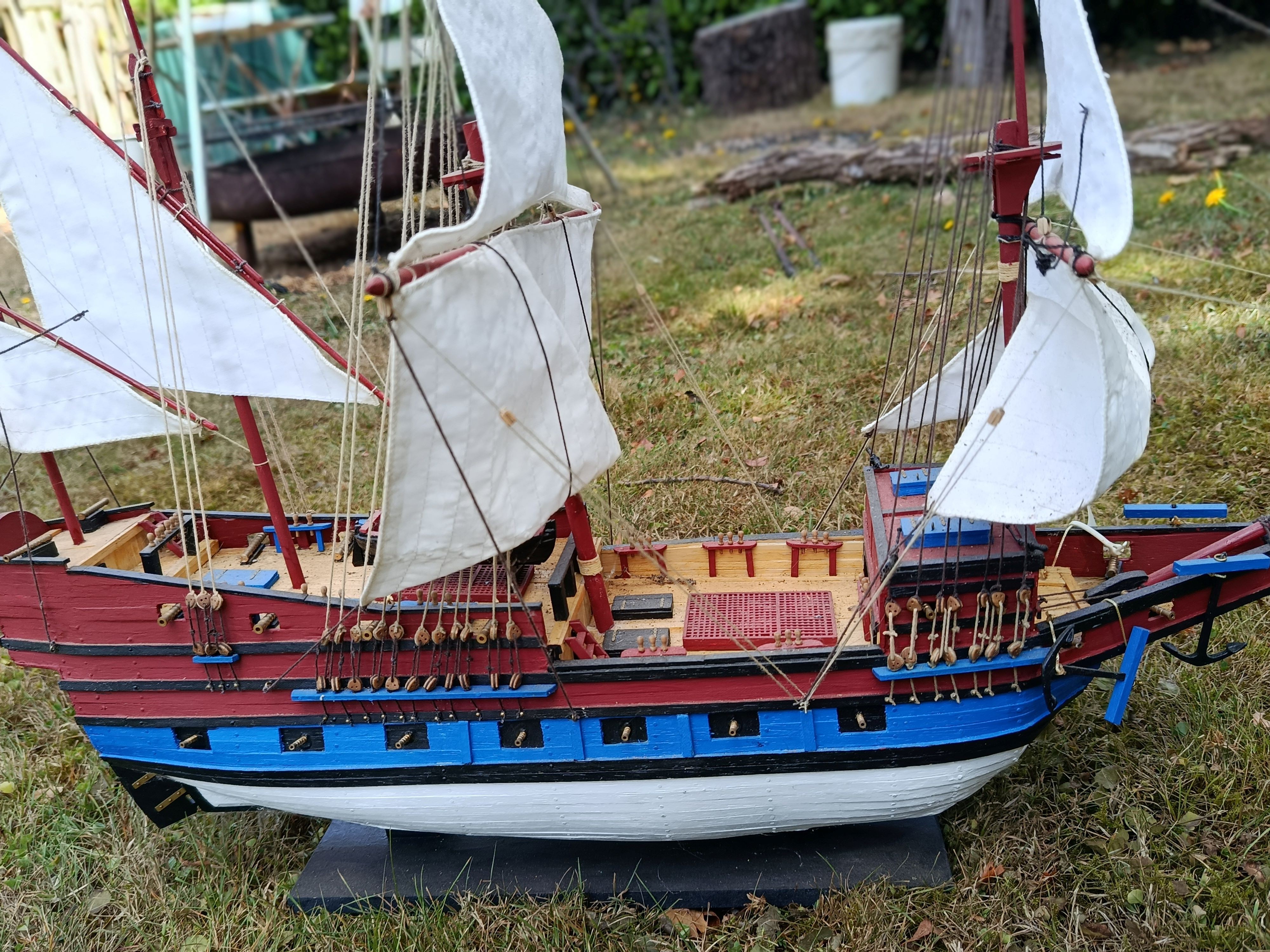 Beau voilier artisanal tout en bois - trvail gtrès minutieux et précis - bon état - + ou - 70cm - très déco