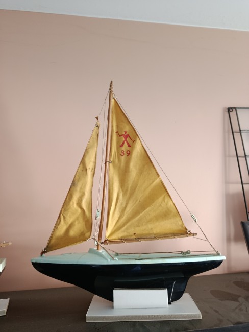 Une très belle déco pour une chambre d'enfant - ce petit bateau de bassin à une coque en plastique dur - assez lourde avec la quille - voiles en tissu