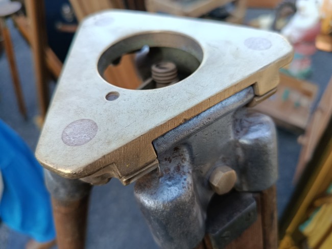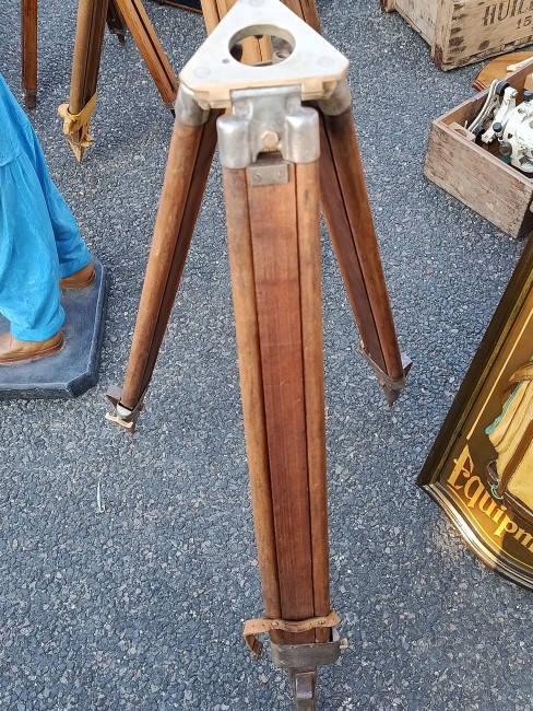 Beau trépied d'arpenteur en hêtre massif - socle en acier brossé - téléscopique avec 3 pieds dépliables - idéal pour pieds de lampe vintage