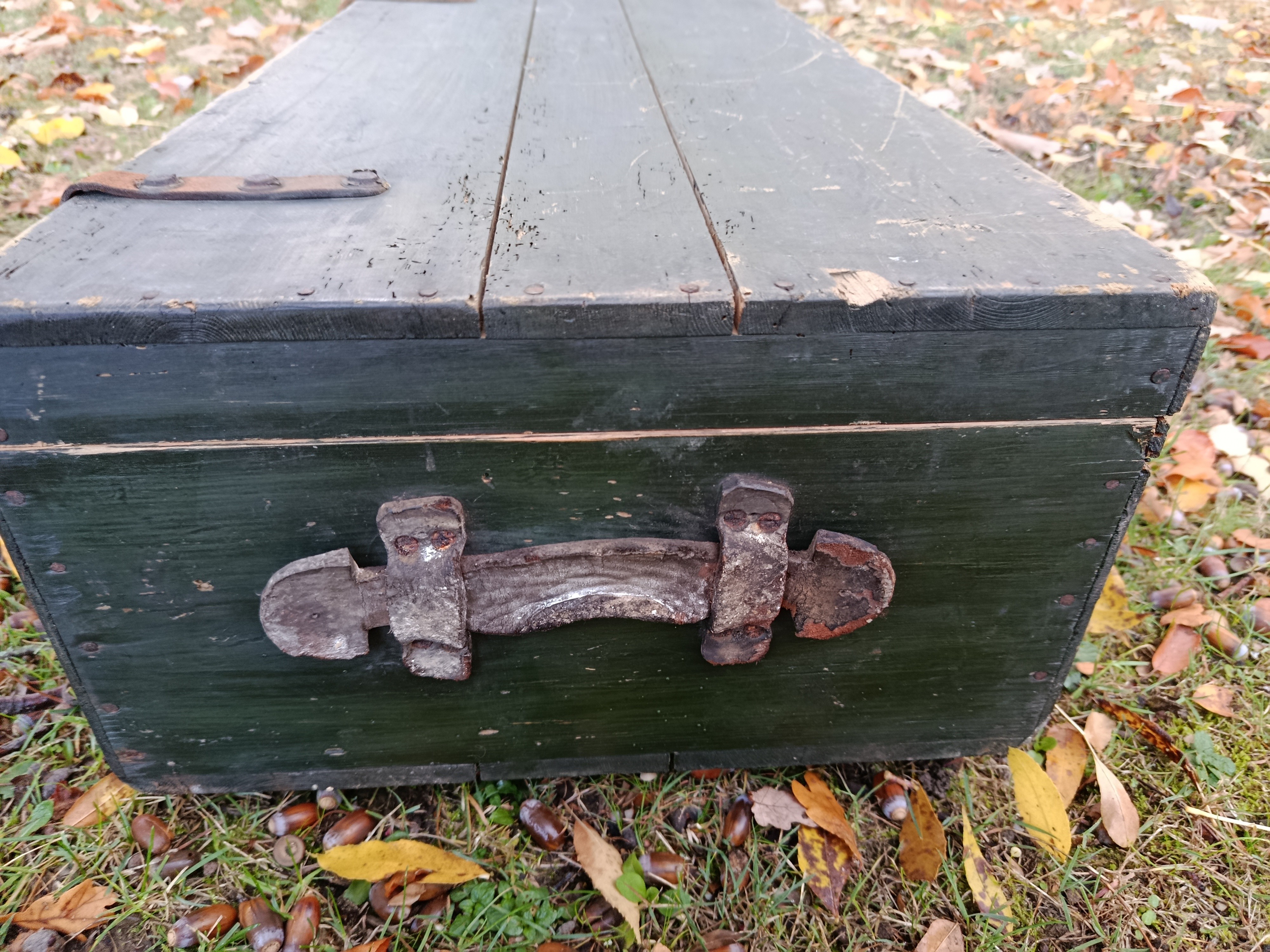 Malle militaire ww1 ou ww2 je l'ignore - elle est en bon état - complète avec sangles et fermoir - poignées en cuir d'origine avec porte nom en cuir - intérieur en bois - coffre solide - idéal pour collectionneurs, passionnés - expositions -ou pour usage en table basse - bar - table d'appoint - accessoire de théâtre ou de cinéma - livraison possible