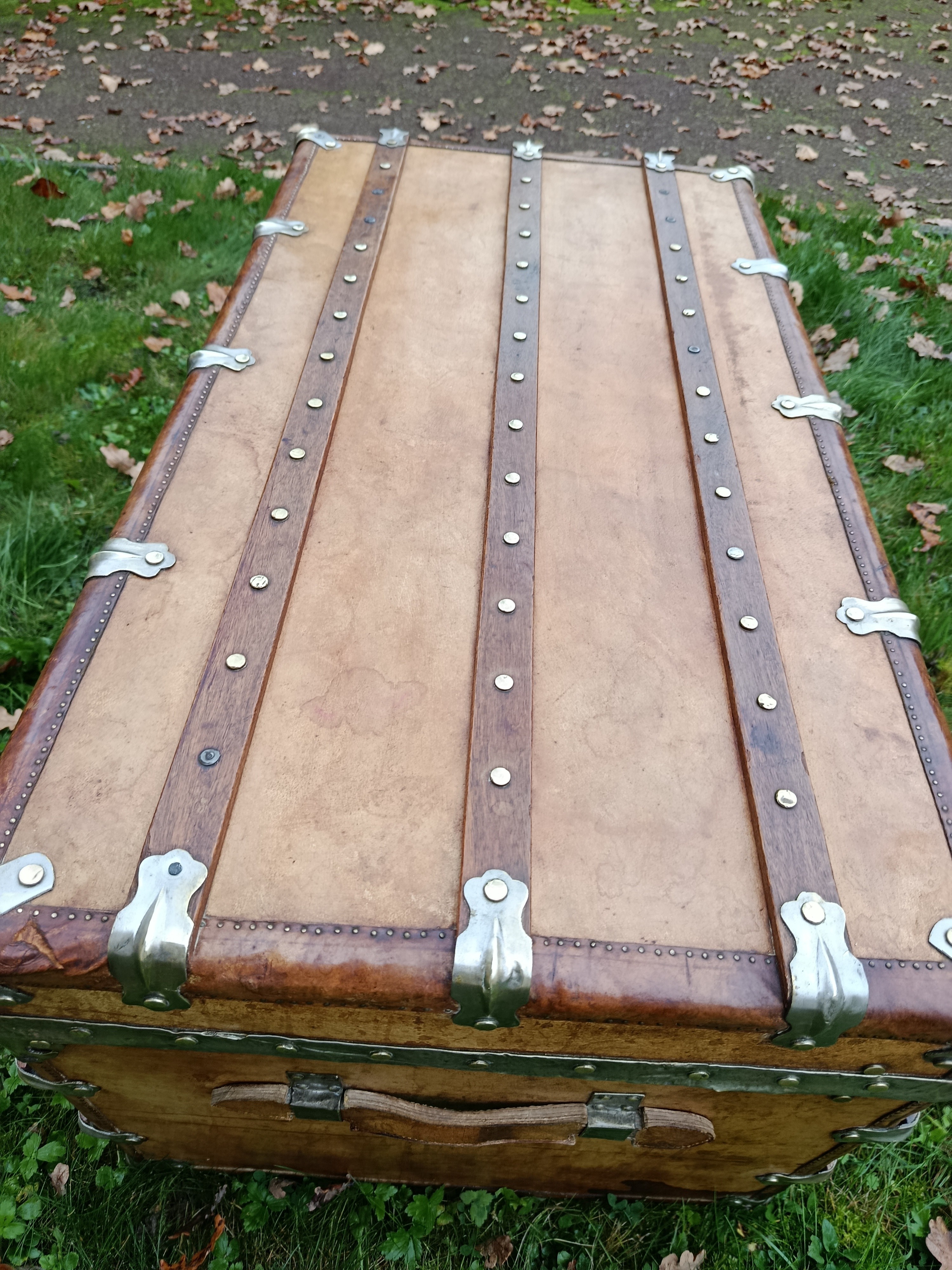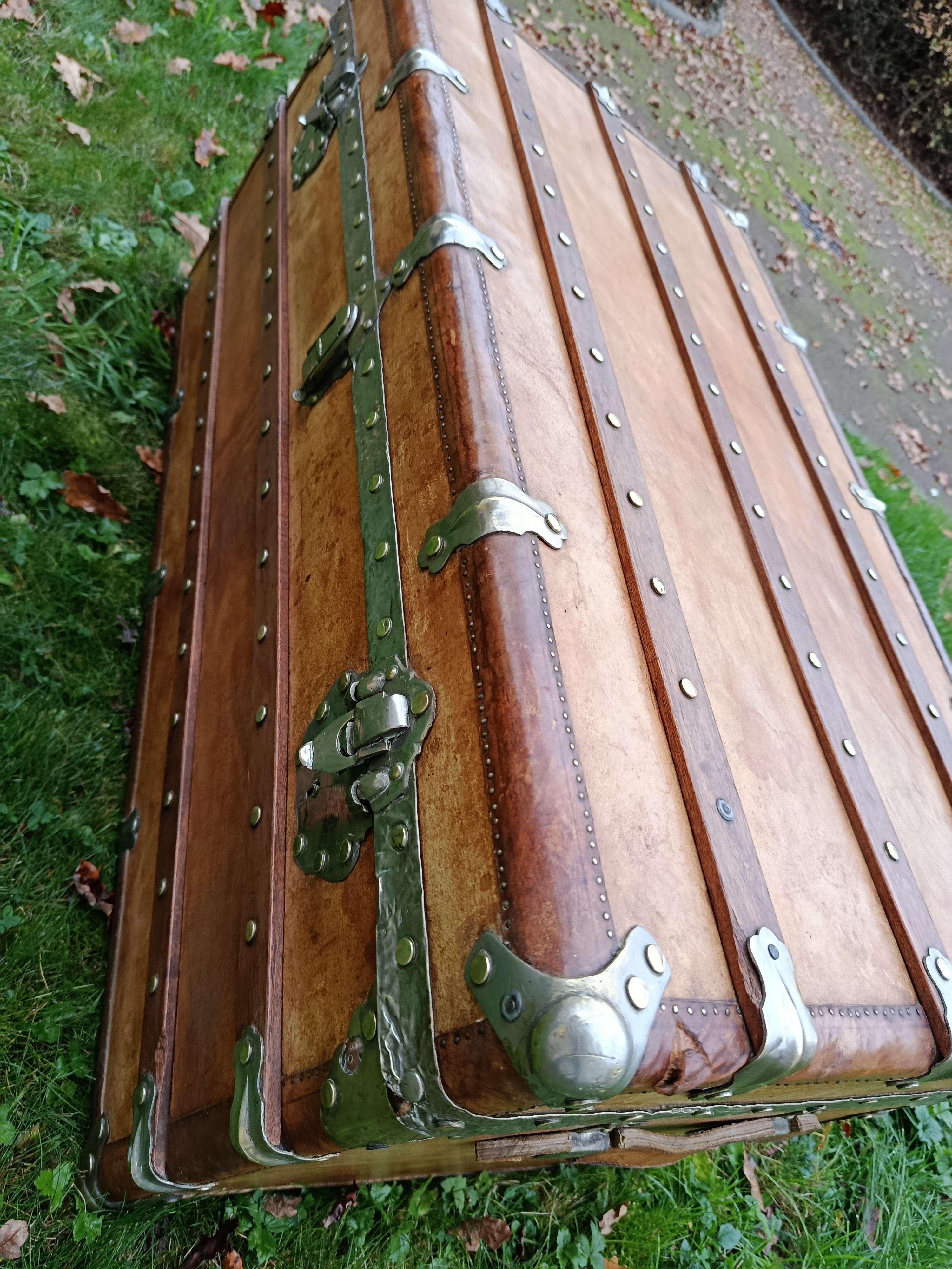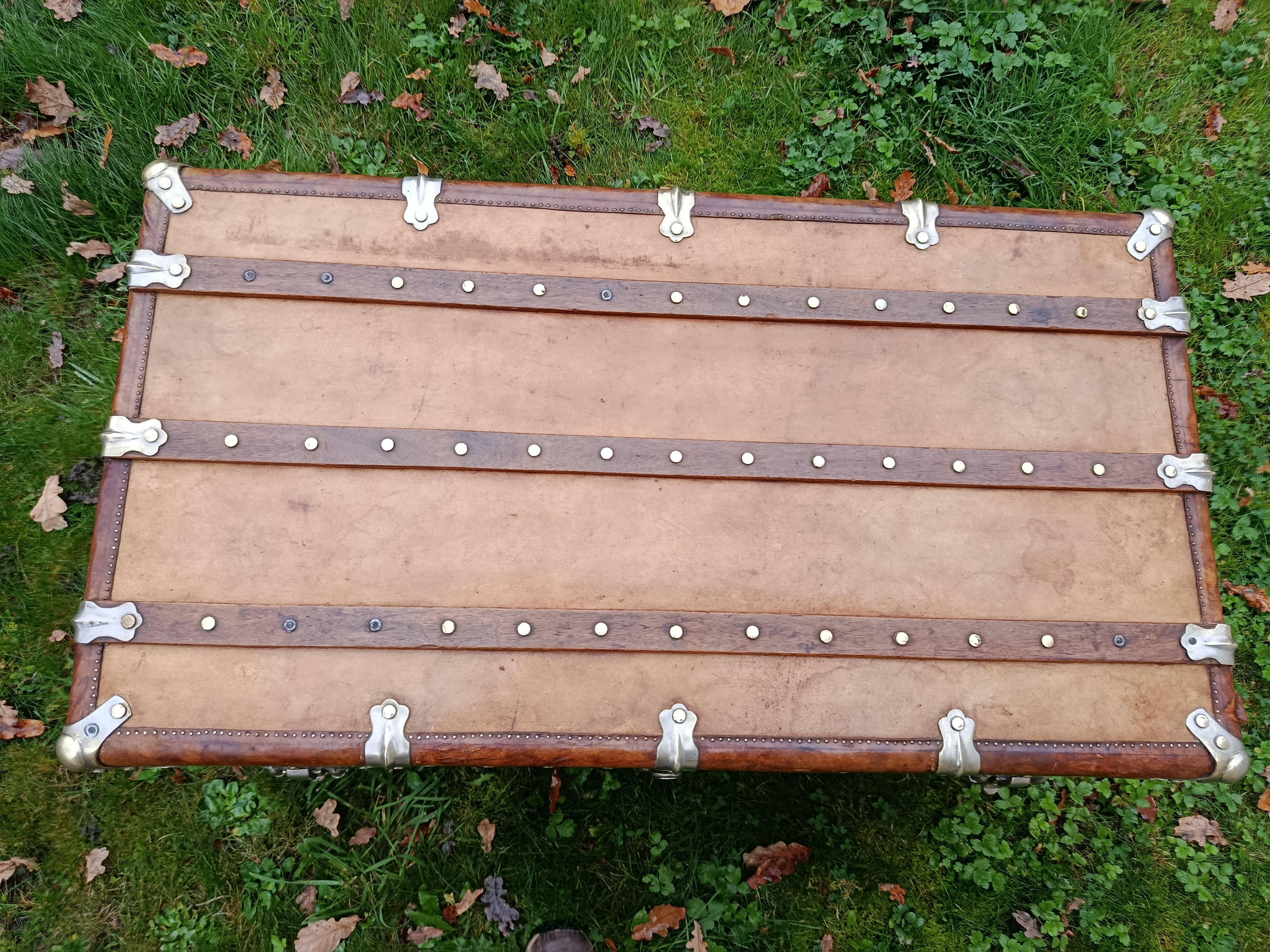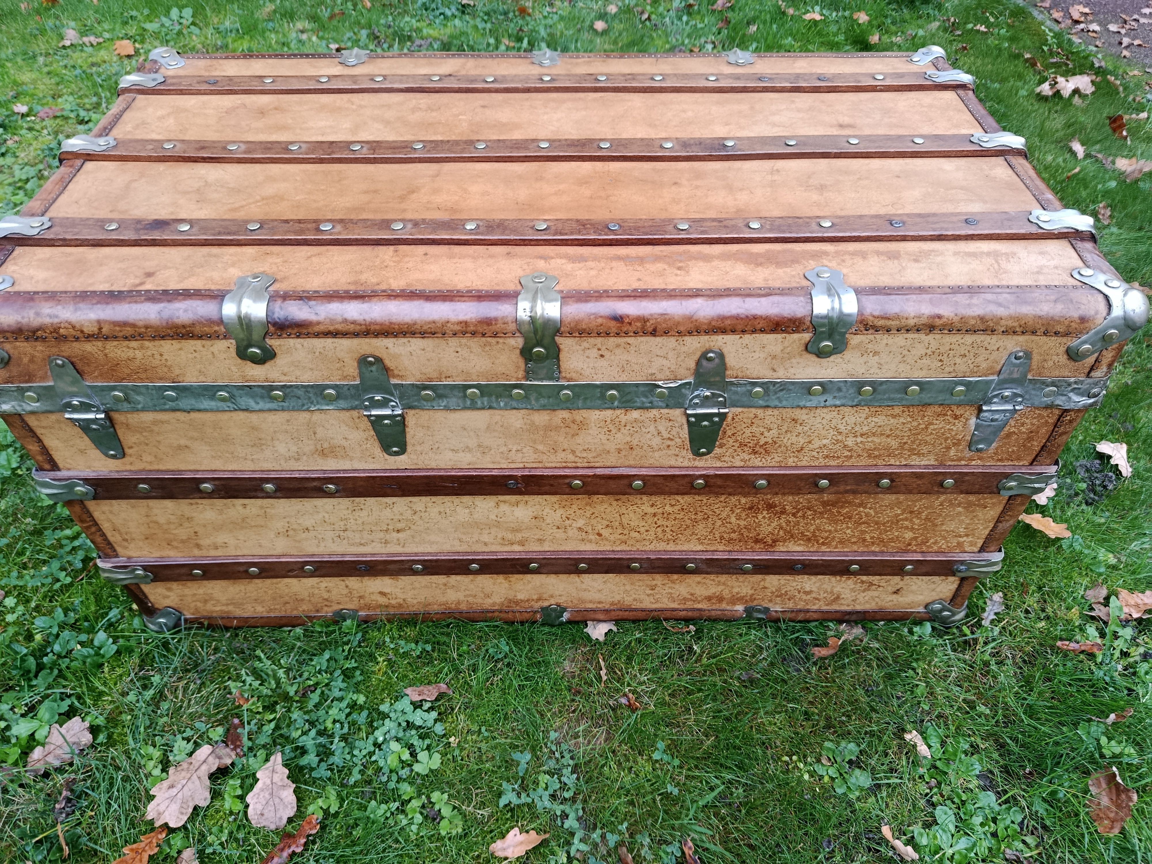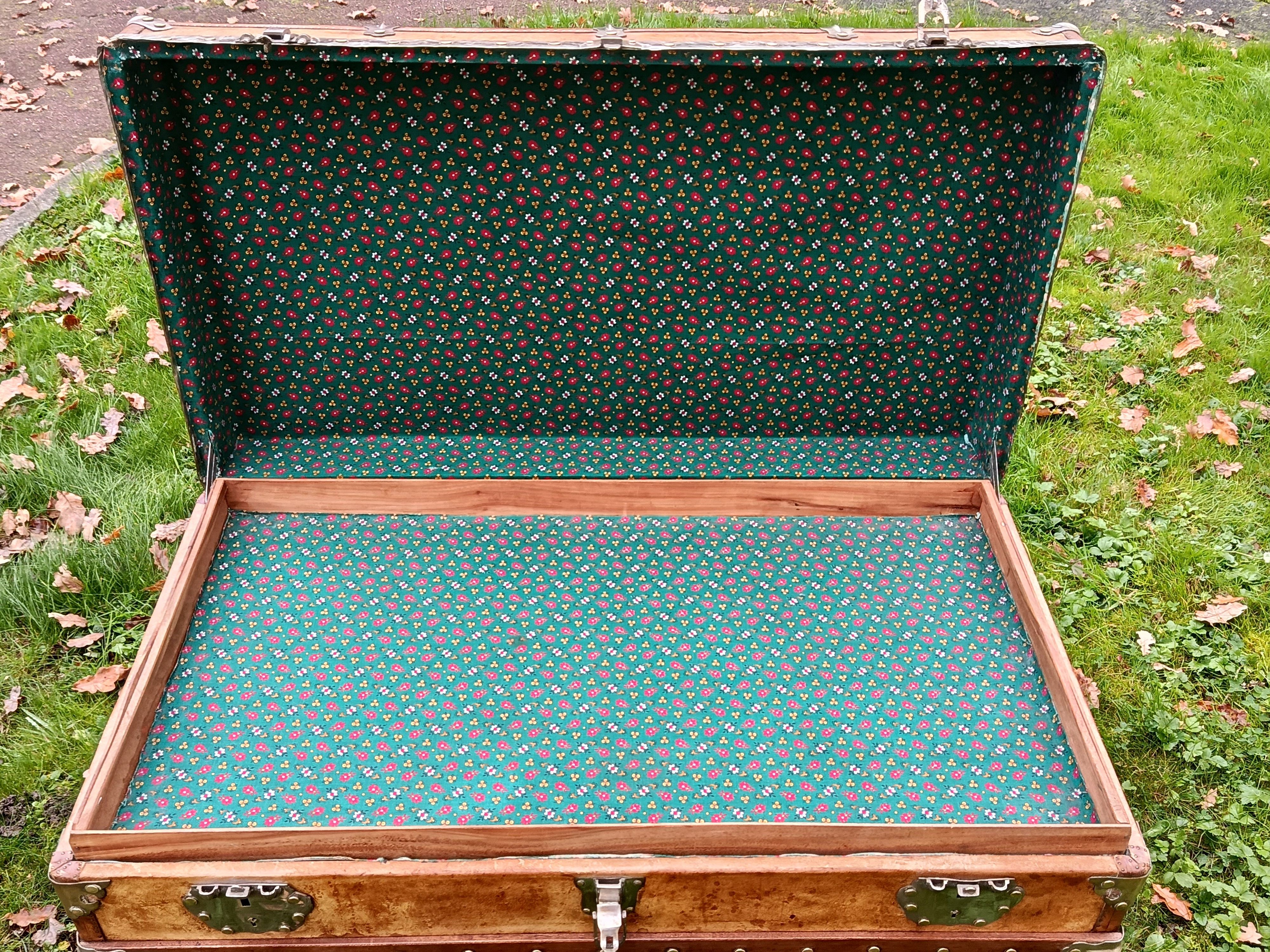 Malle coloniale en camphrier - fin 19ème - toute la structure est en bois de camphrier avec un parfum très caractéristique ( Répulsif contre les insectes nuisibles) - le revêtement est en parchemin ciré - lui donnant un aspect un peu cuivré très sympa - intérieur avec tissu non d'origine - mais peut se retirer aisément pour faire apparaître le bois nu avec un beau veinage - poignées en cuir - cornières en cuir - bijouterie nickelée - malle de très belle facture avec de beaux matériaux nobles - très solide - dessous en zinc - de grande contenance avec un chassis amovible - idéale pour servir de table basse - de bar - de rangement pour le linge de maisons, les oreillers, les couettes ect - banc à chaussures ...