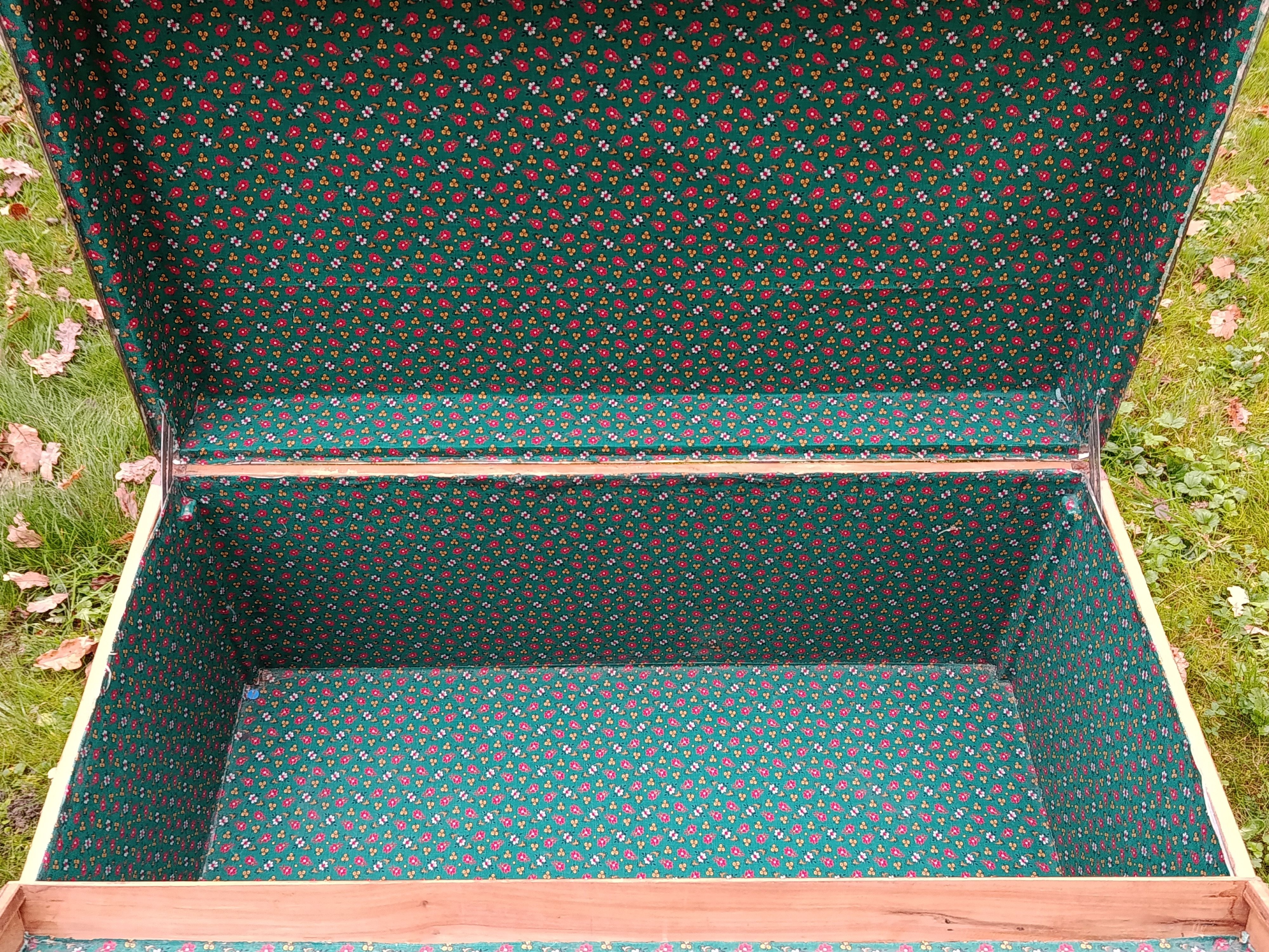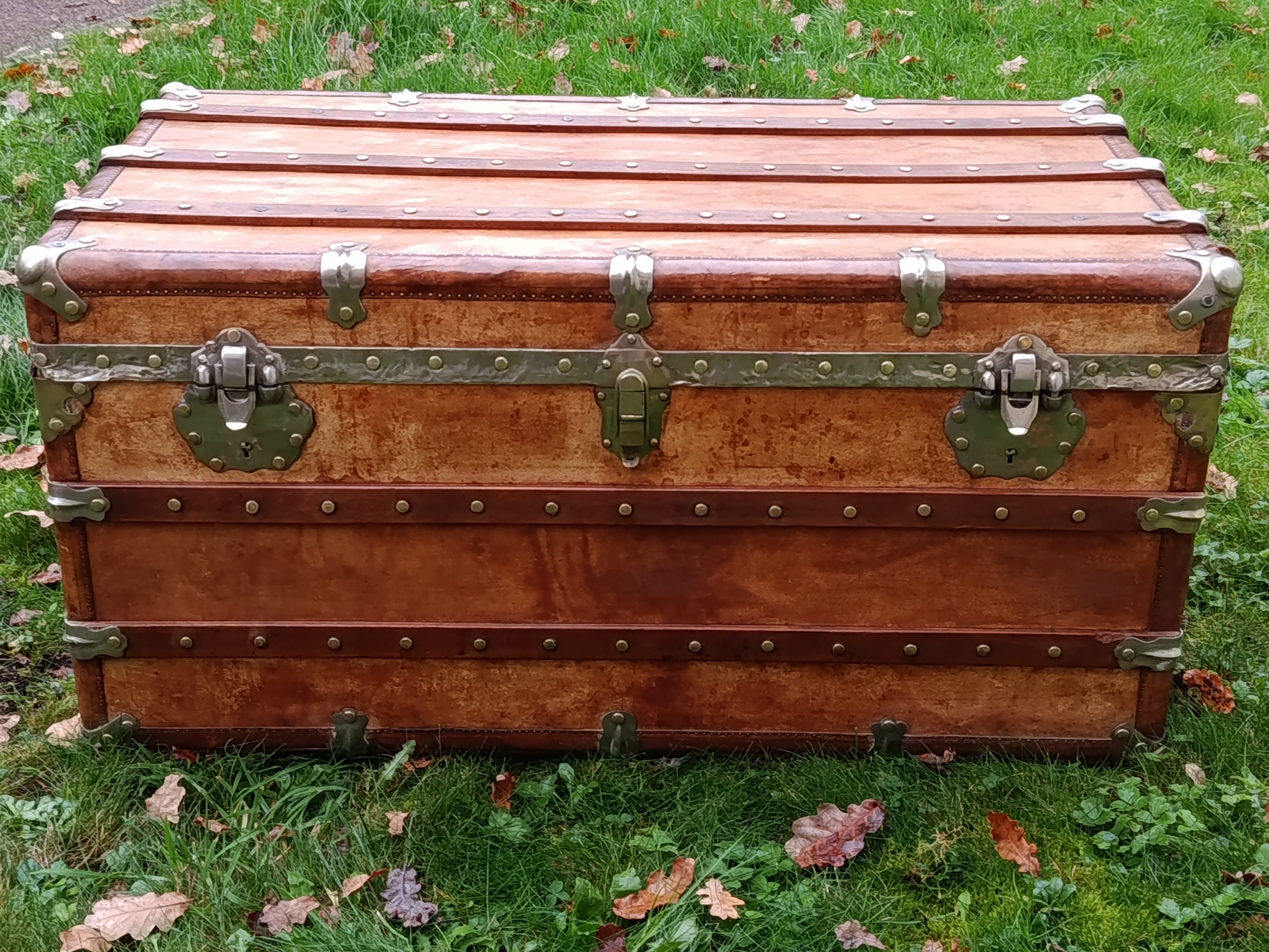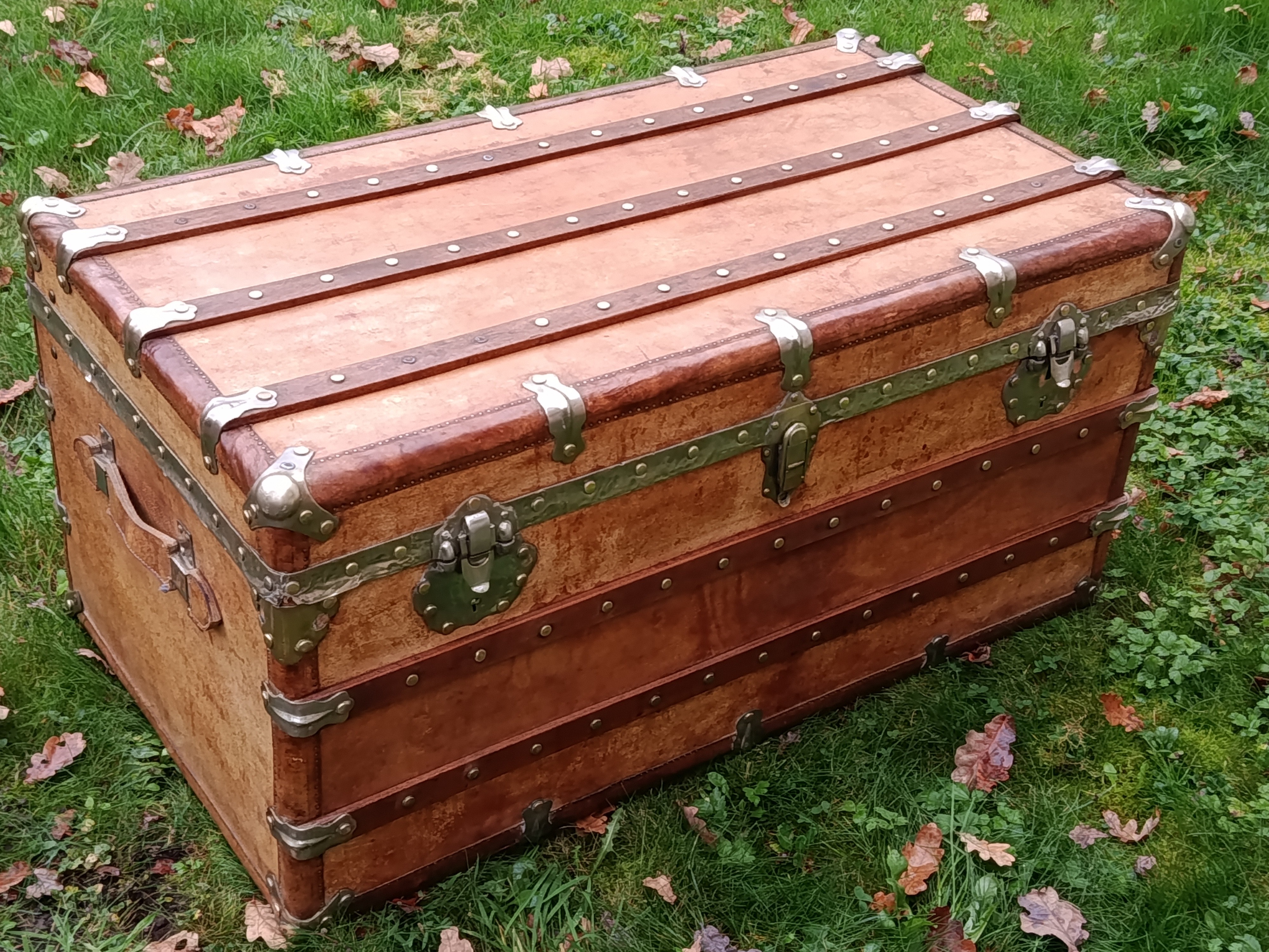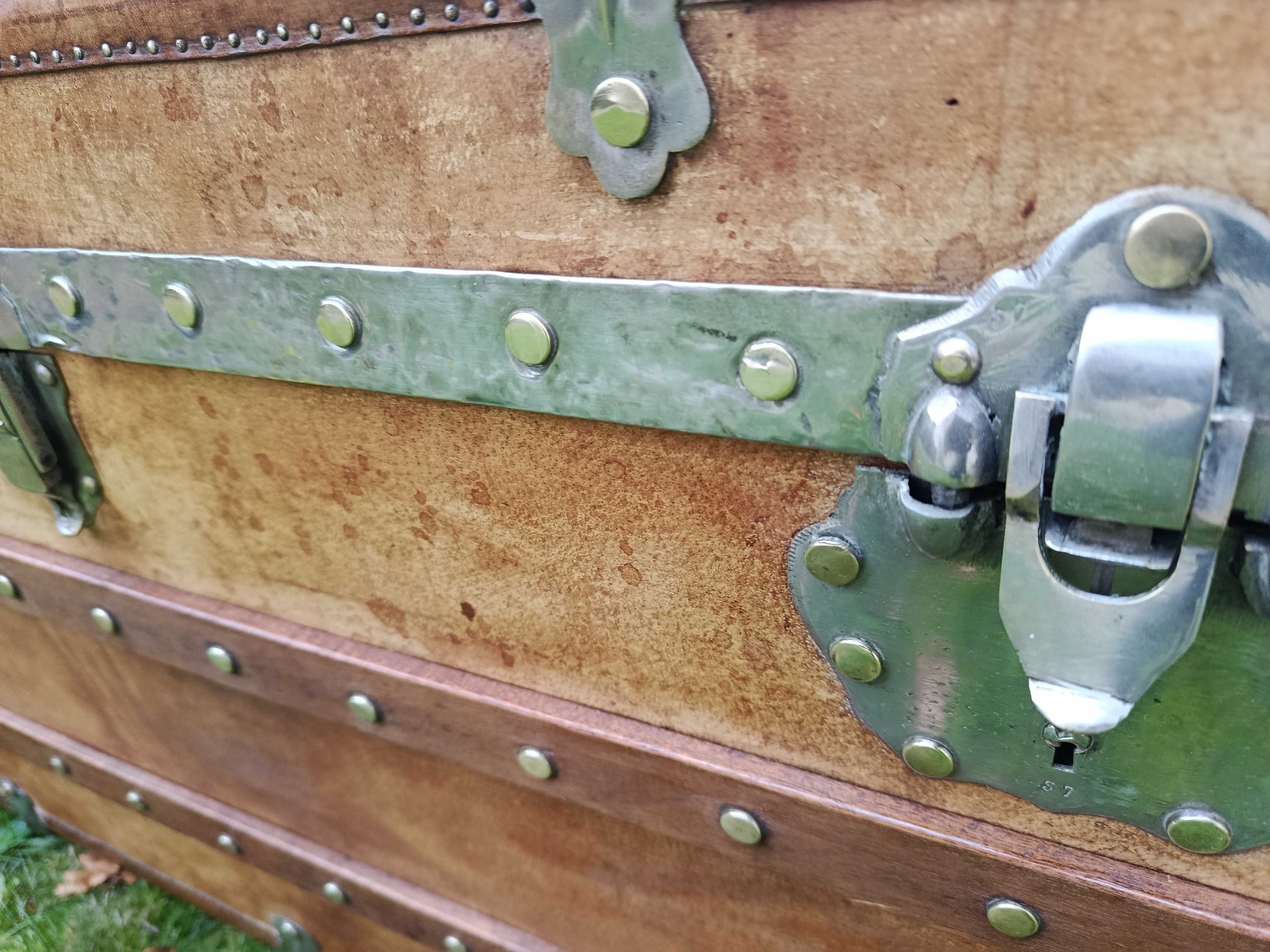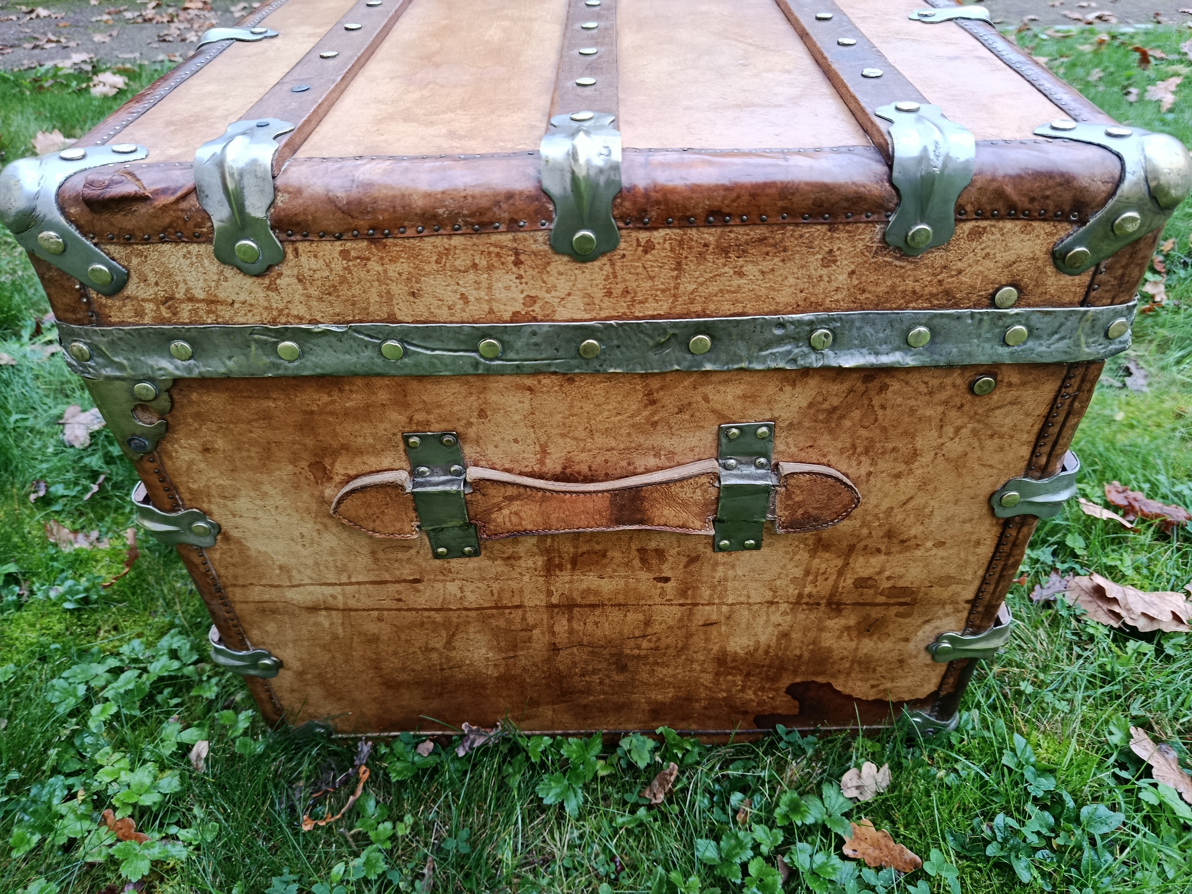 Malle coloniale en camphrier - fin 19ème - toute la structure est en bois de camphrier avec un parfum très caractéristique ( Répulsif contre les insectes nuisibles) - le revêtement est en parchemin ciré - lui donnant un aspect un peu cuivré très sympa - intérieur avec tissu non d'origine - mais peut se retirer aisément pour faire apparaître le bois nu avec un beau veinage - poignées en cuir - cornières en cuir - bijouterie nickelée - malle de très belle facture avec de beaux matériaux nobles - très solide - dessous en zinc - de grande contenance avec un chassis amovible - idéale pour servir de table basse - de bar - de rangement pour le linge de maisons, les oreillers, les couettes ect - banc à chaussures ...