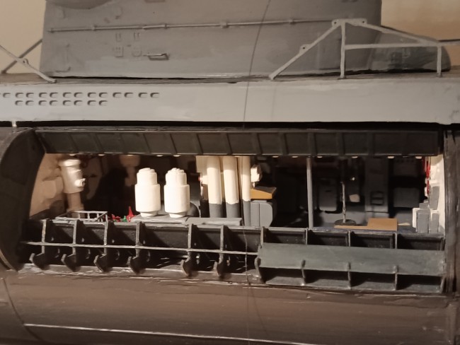 Maquette réalisée par un maquettiste averti - elle est en bois et métal - une face montrée avec coupes et l'autre face sans coupe - on peut orienter son exposition selon le goût ou le besoin - détails très précis du poste de commande et de la machinerie
