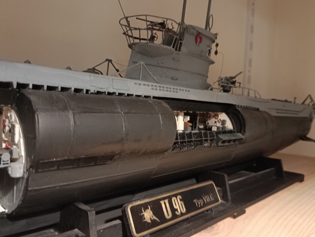 Superbe maquette en bois et métal de sous marin - grande dimension 1m40