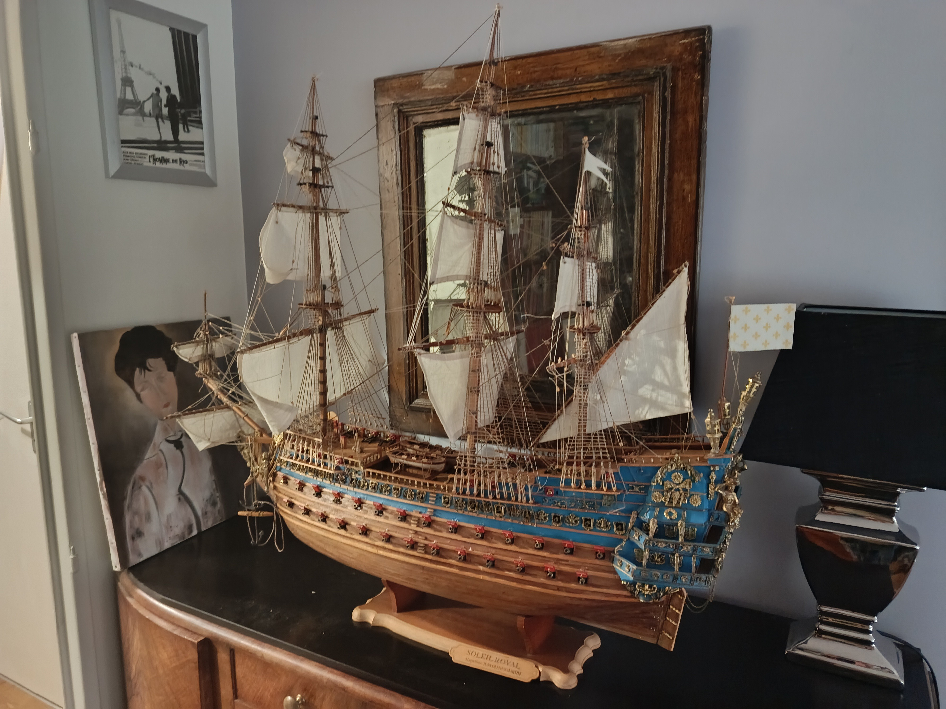 Grand maquette toute en bois et méatl du soleil royal (100 canons) - réalisée par un maquettiste averti - les plans sont joints avec - se passe de commentaires il suffit de regarder les photos