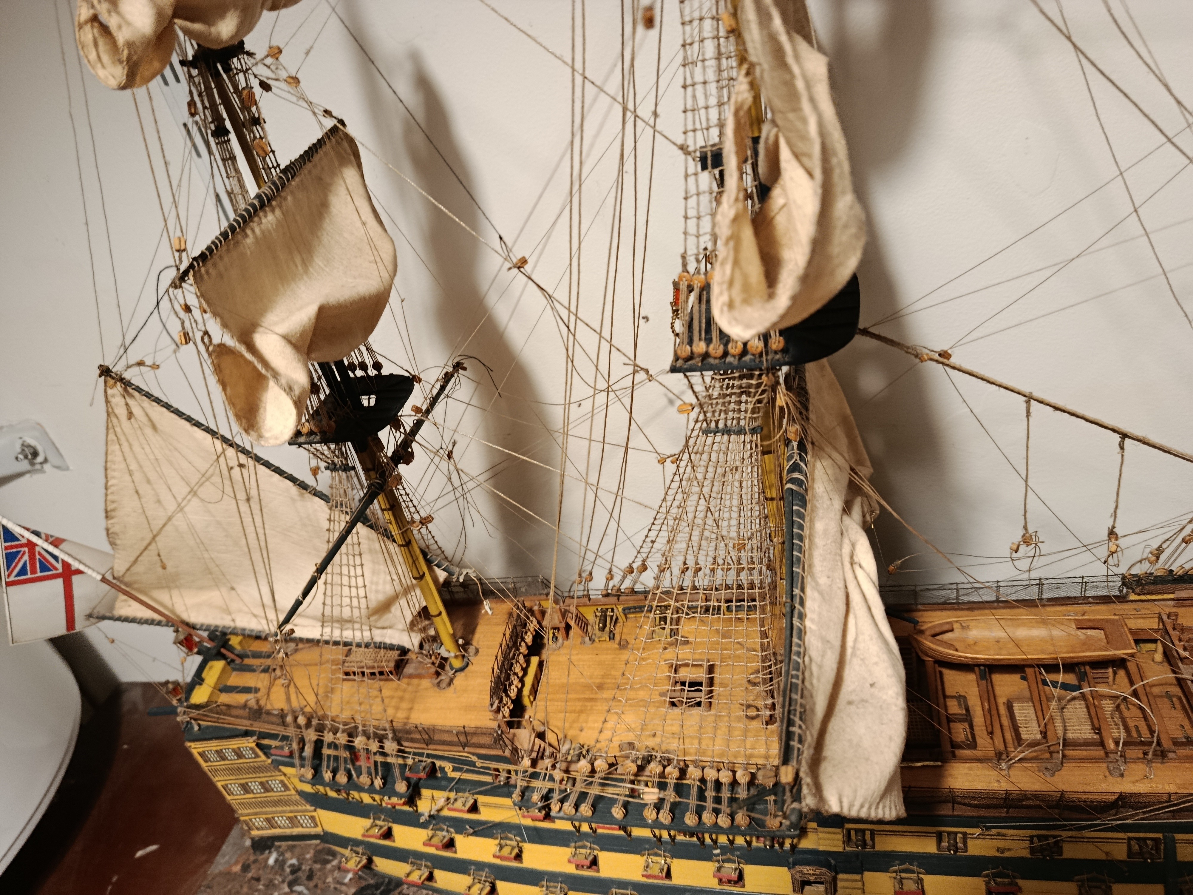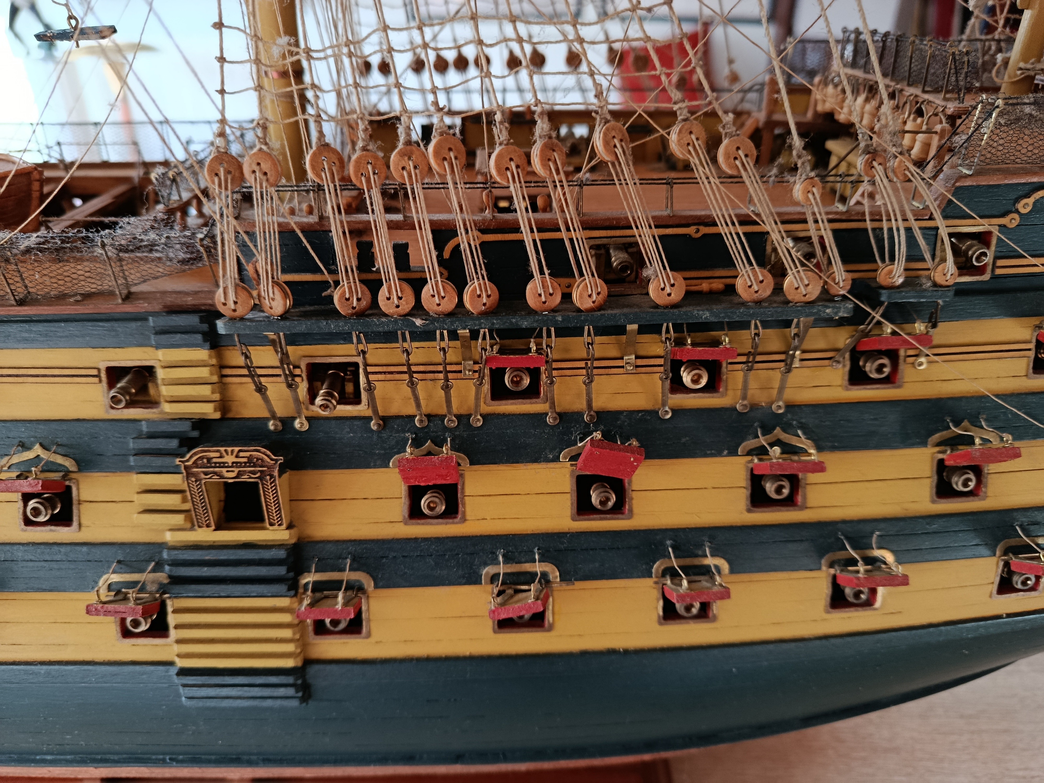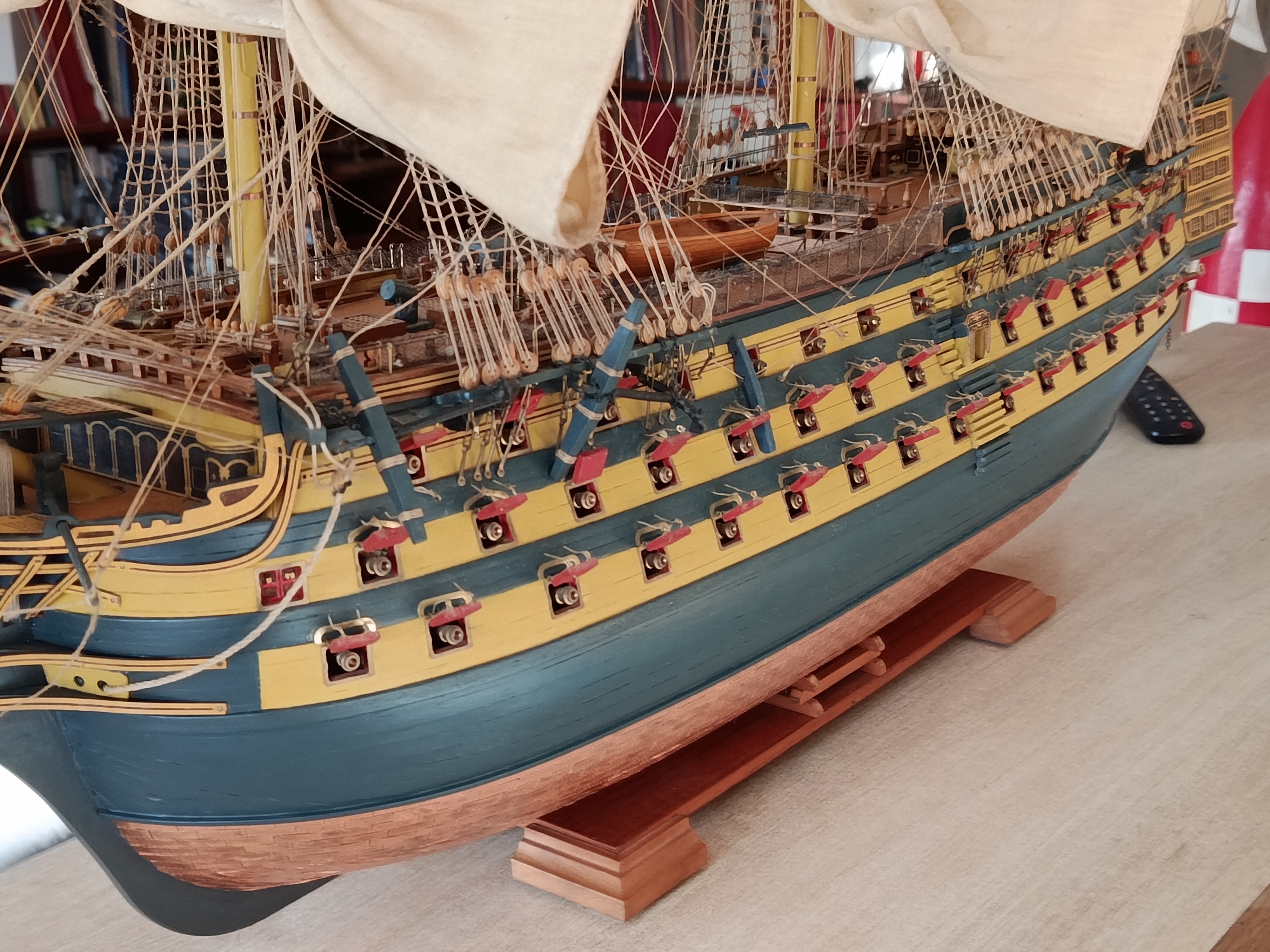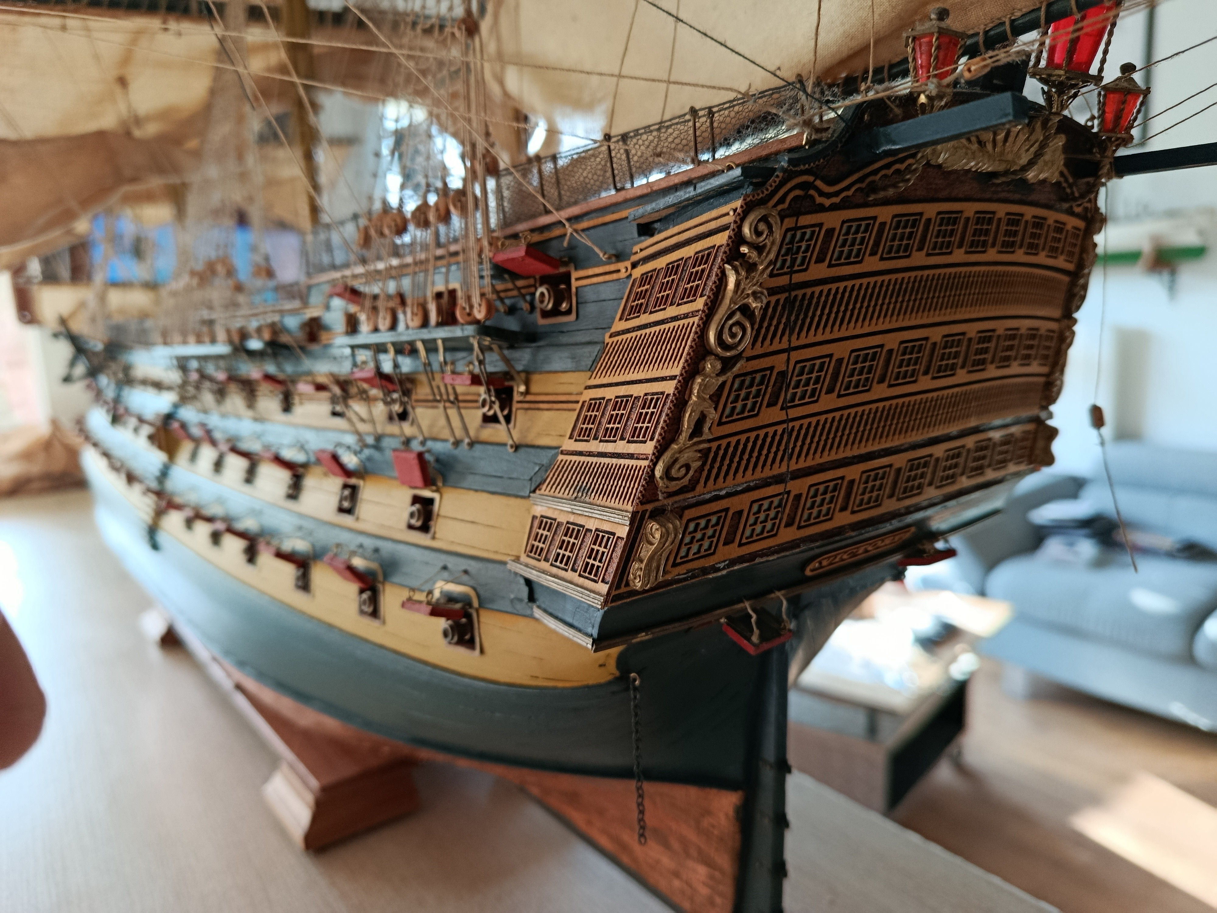 grande maquette en bois faite main - détails saisissants - accastillage et ornements en métal - grande dimensions 1m20x 90cm de haut