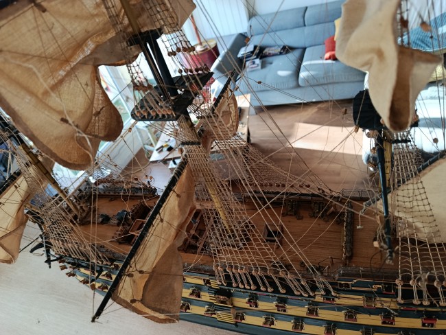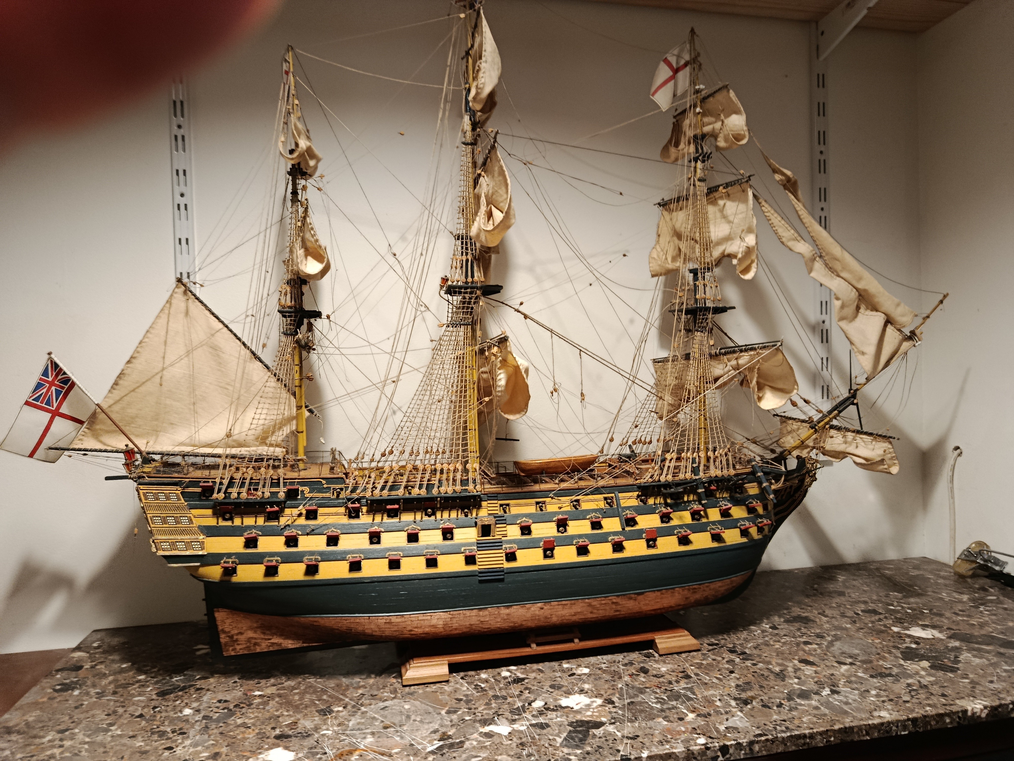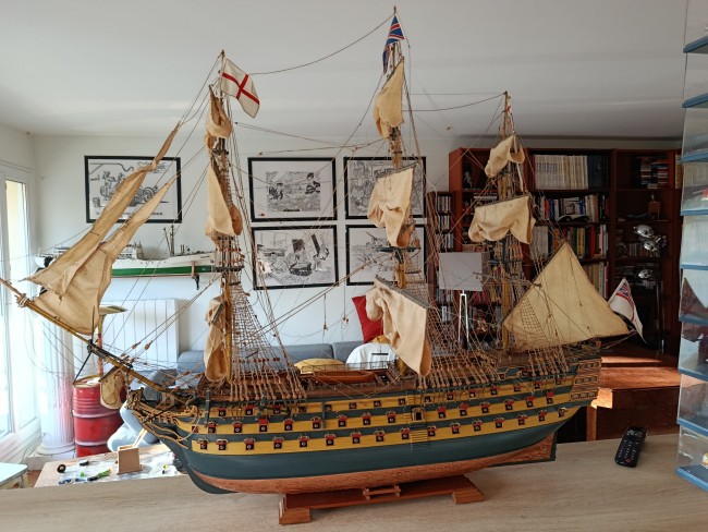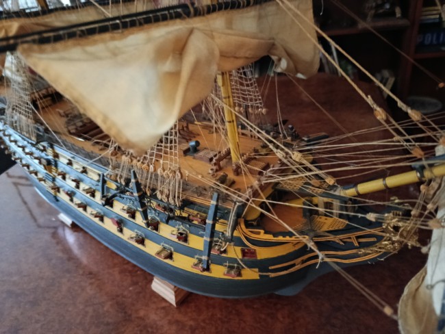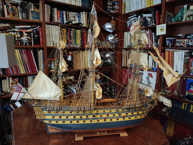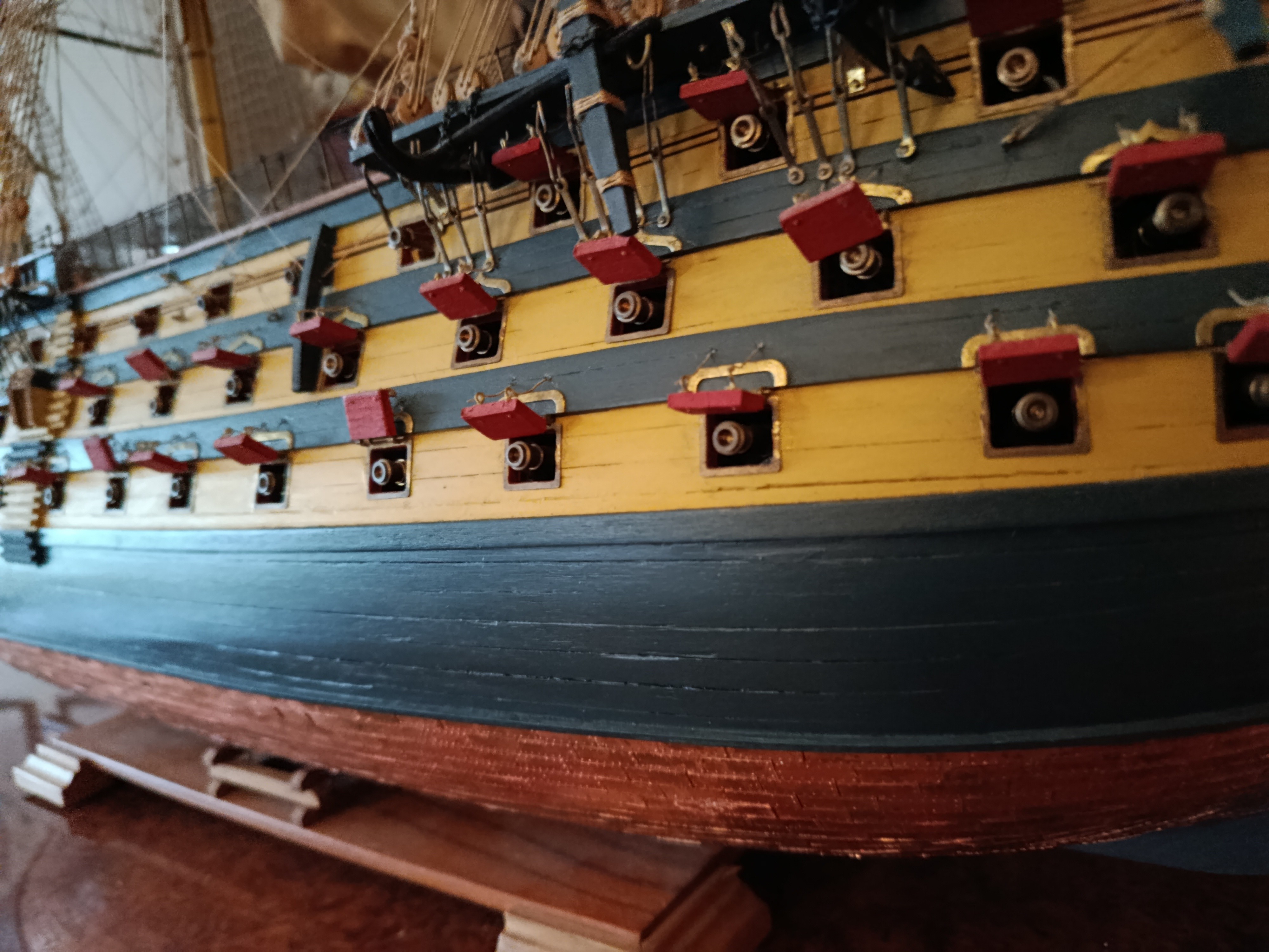 grande maquette en bois faite main - détails saisissants - accastillage et ornements en métal - grande dimensions 1m20x 90cm de haut