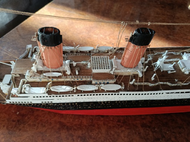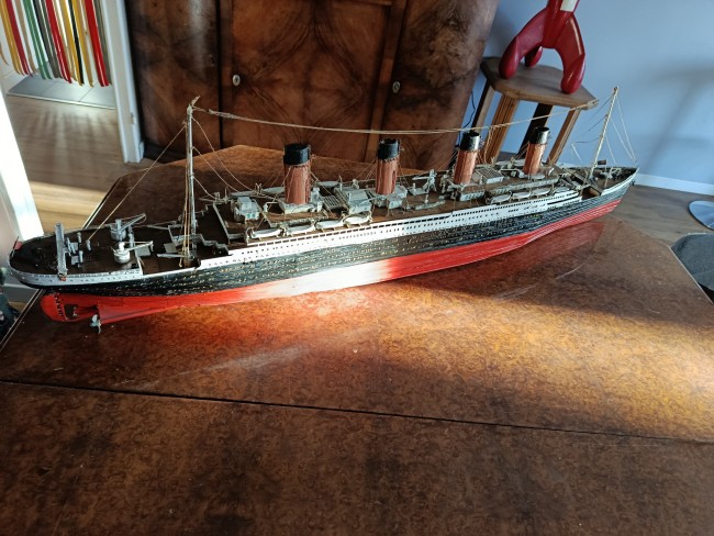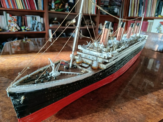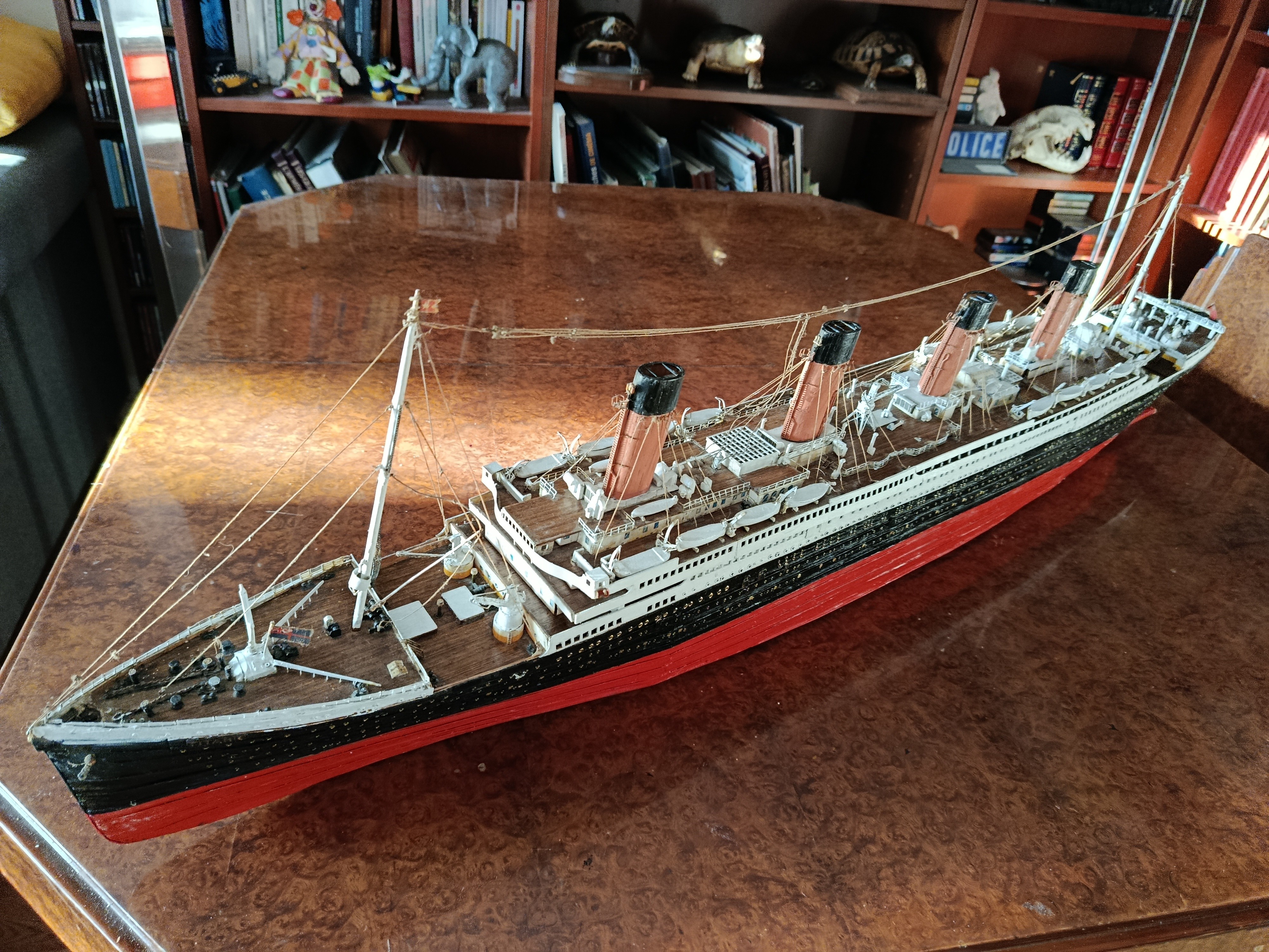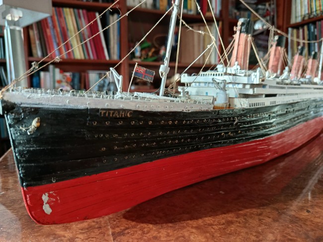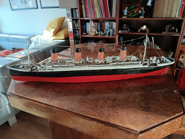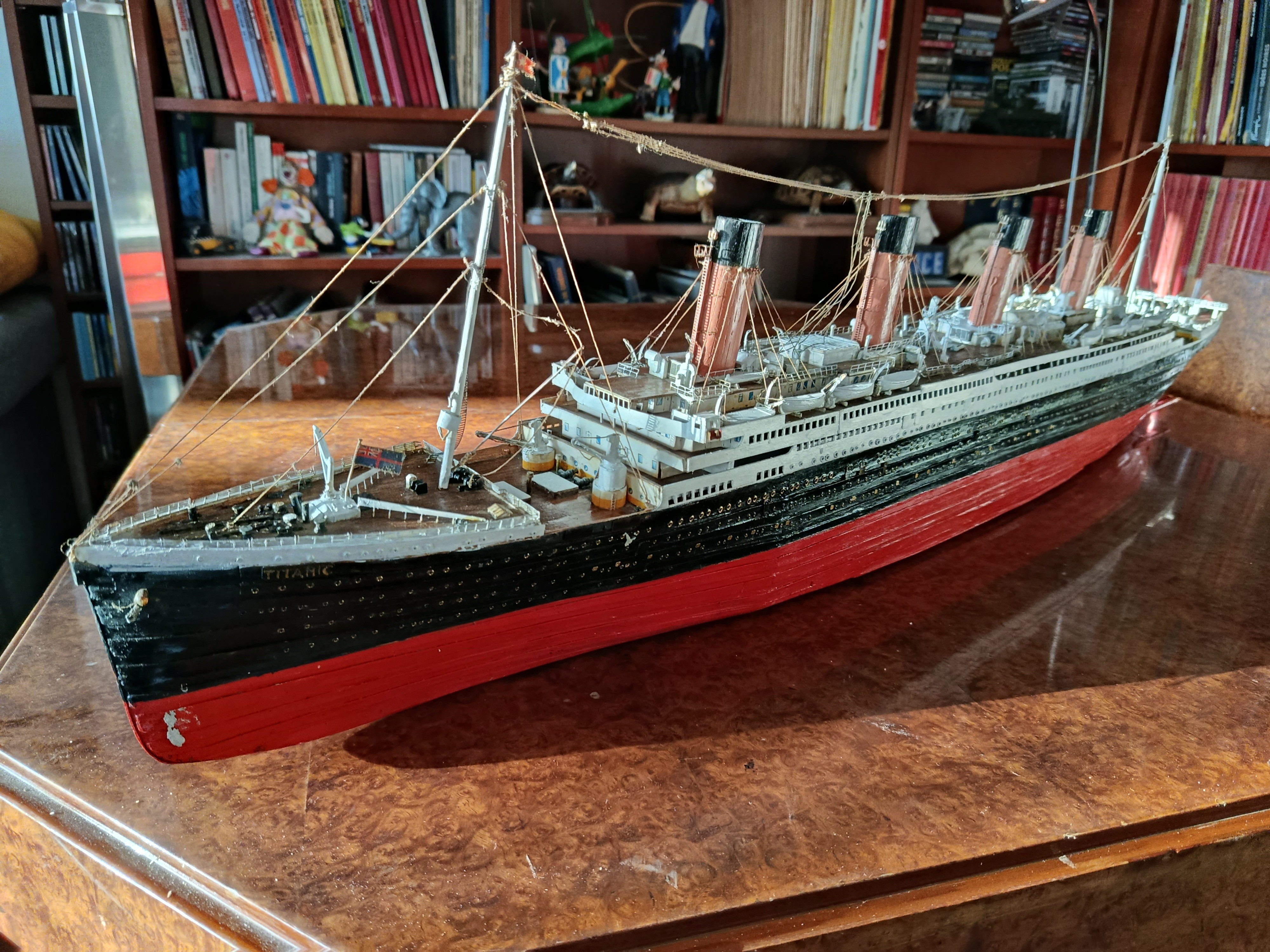 Grande maquette de bois du paquebot Titanic - c'est une maquette de la collection hachette faite main - dimensions : 1m10