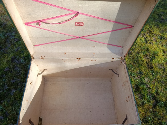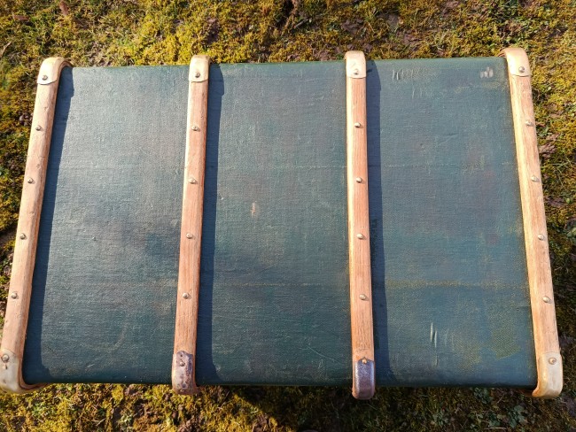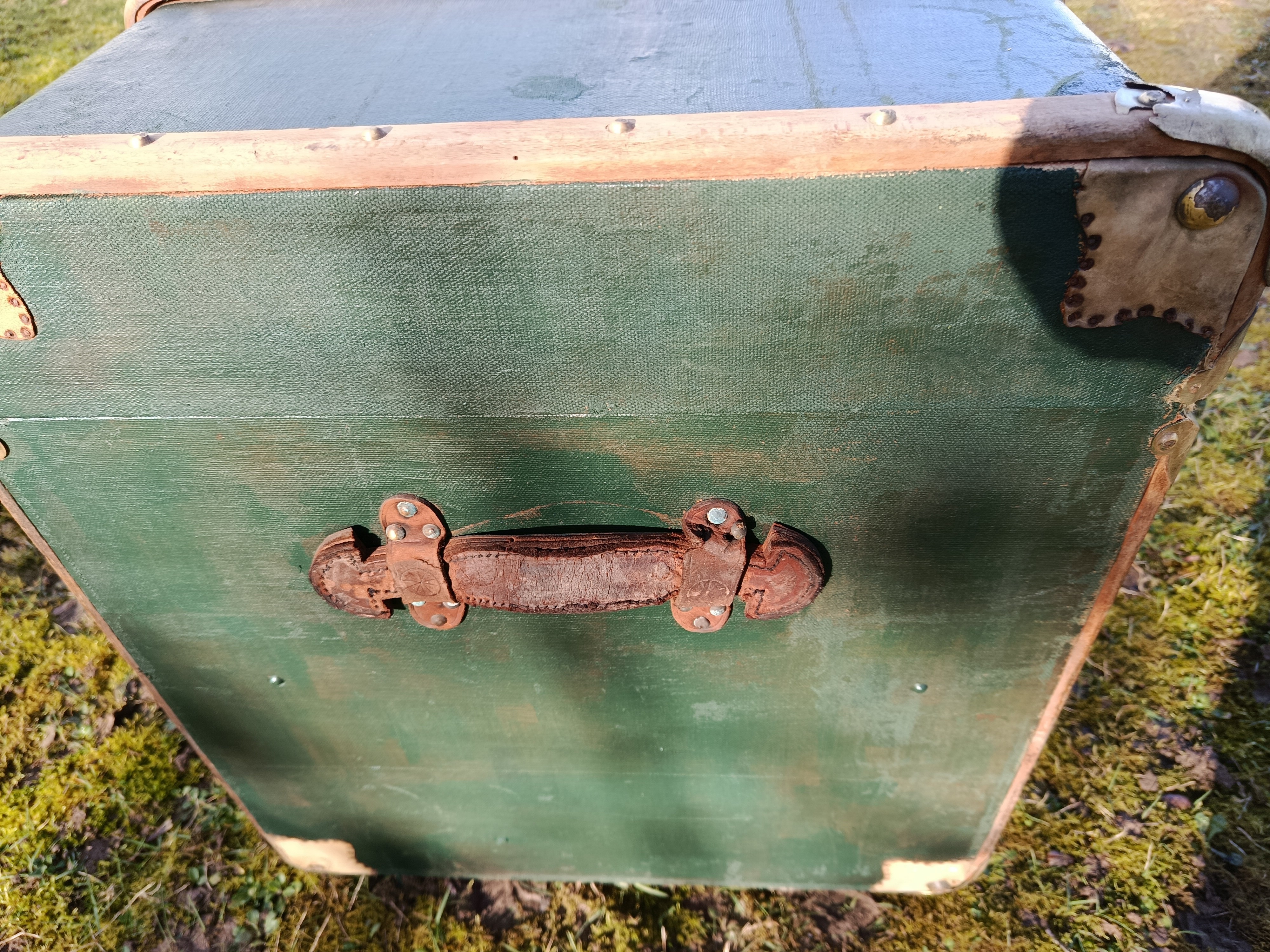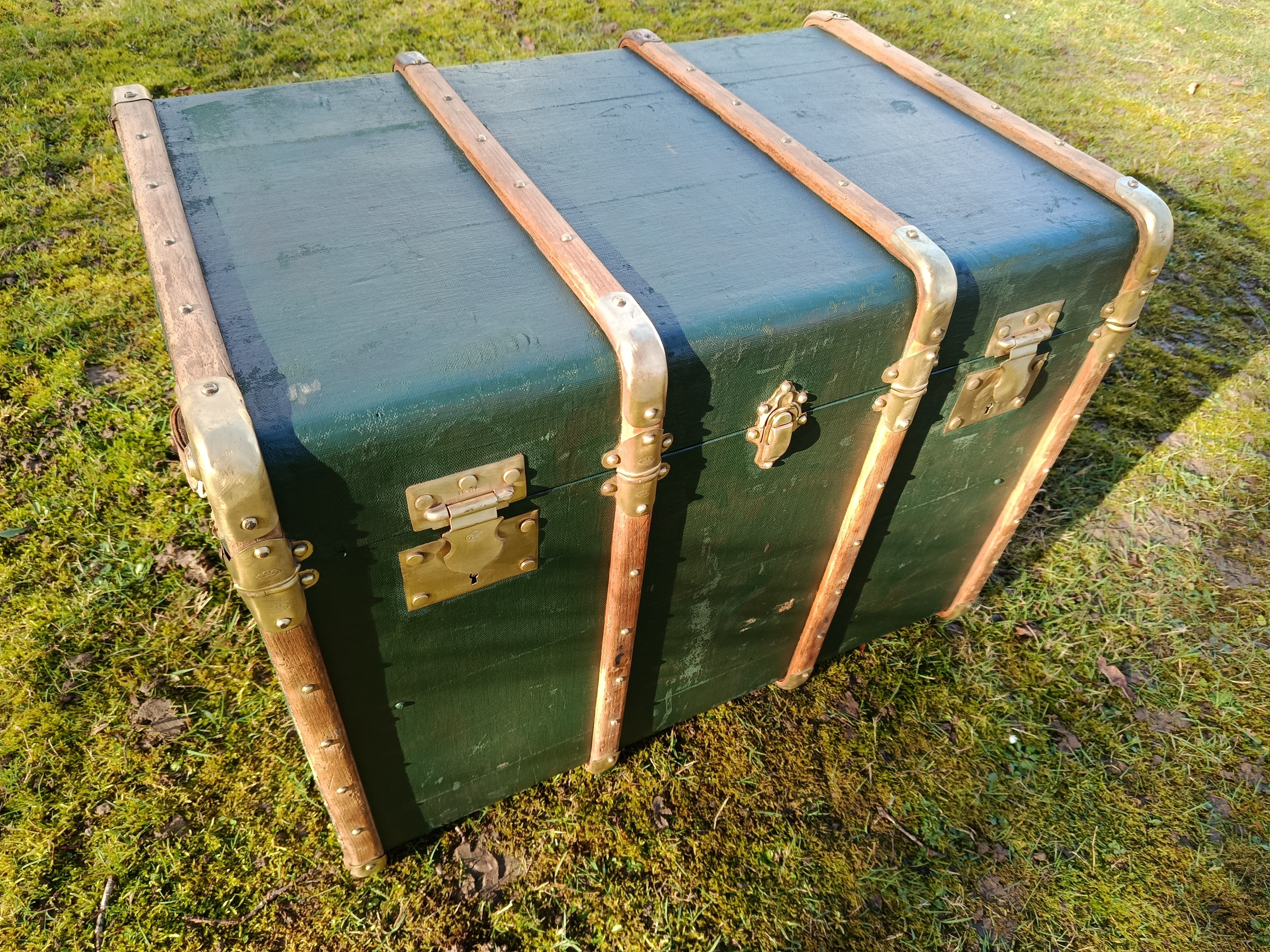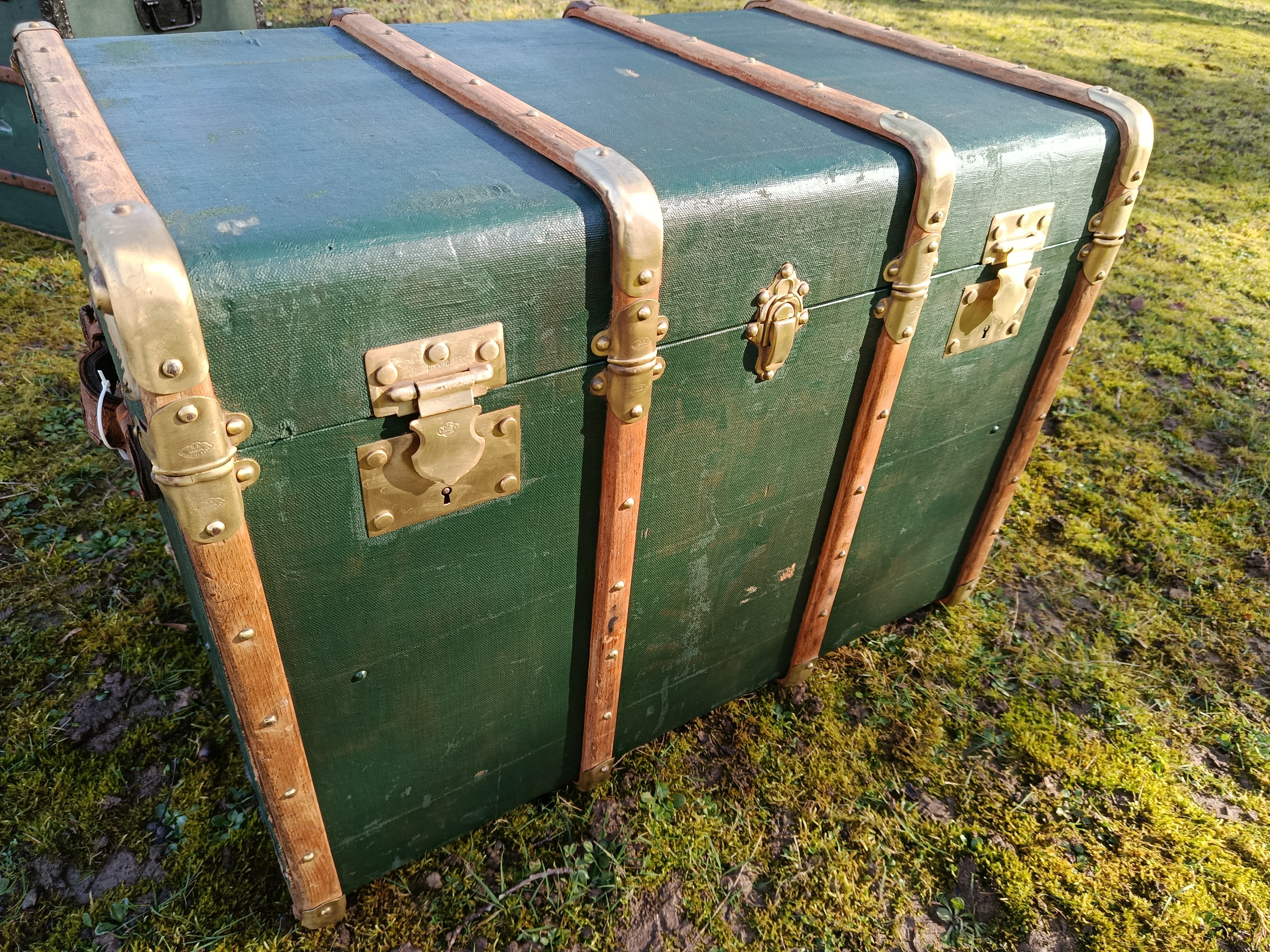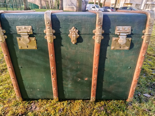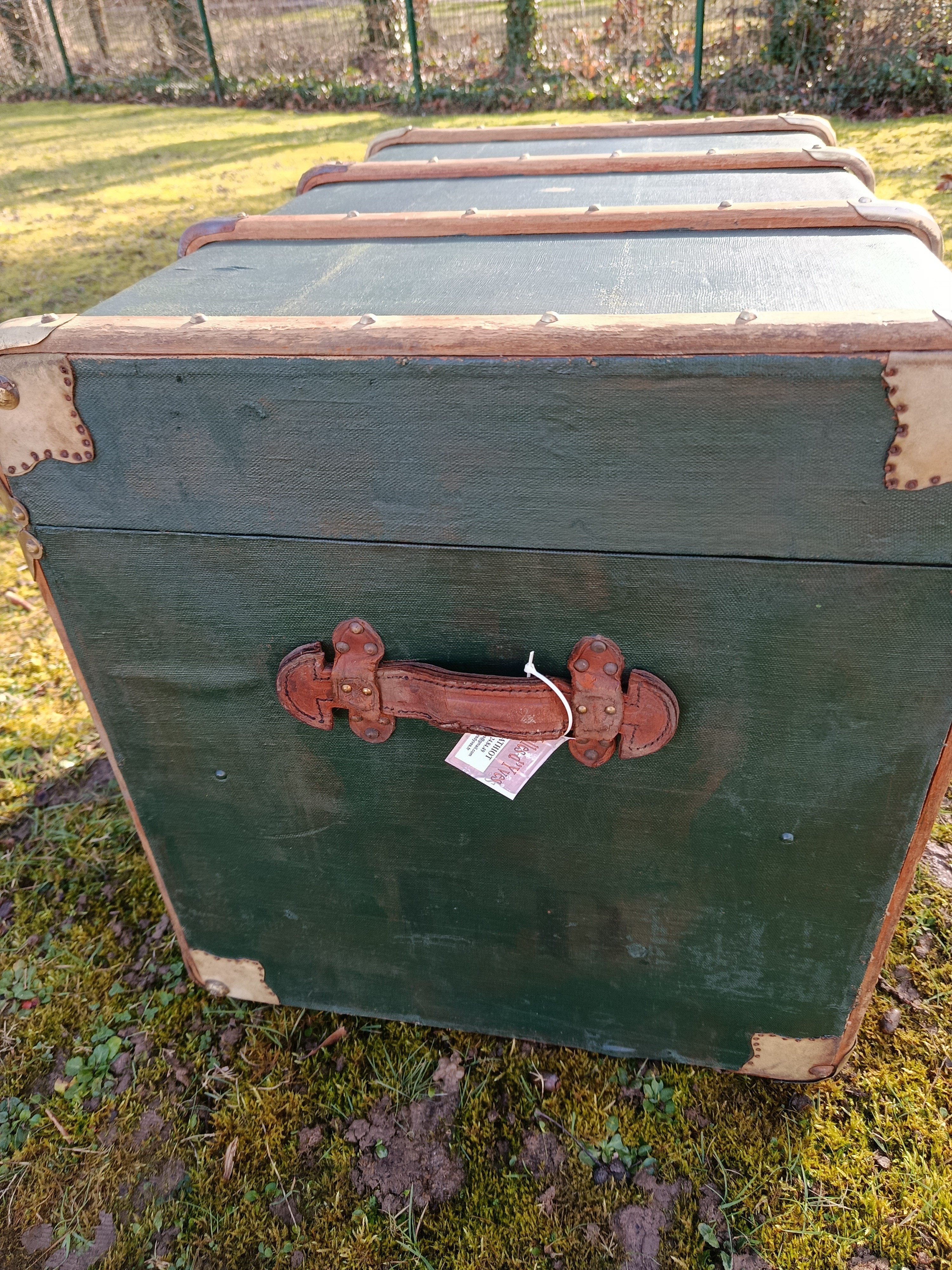 Malle cintrée des années 30 maison coulembier Paris Bvd Hausmmann - le revêtement a été rafraichi - cintrage en hêtre - bijouterie en laiton massif - cette malle est idéale pour une table basse de salon - un bout de lit - un bar - rangement dulinge de maison couettes oreillers - l'histoire de cette malle est dans les voyages sncf au début des années 30 - utilisée par un voyageur de commerce