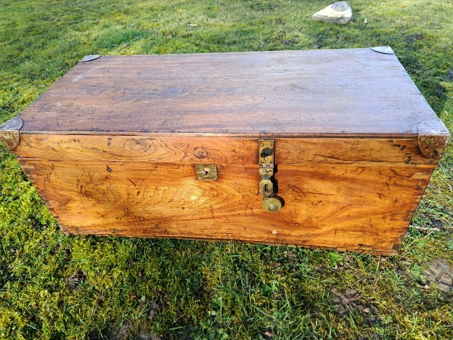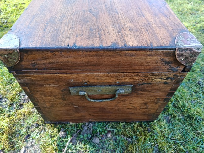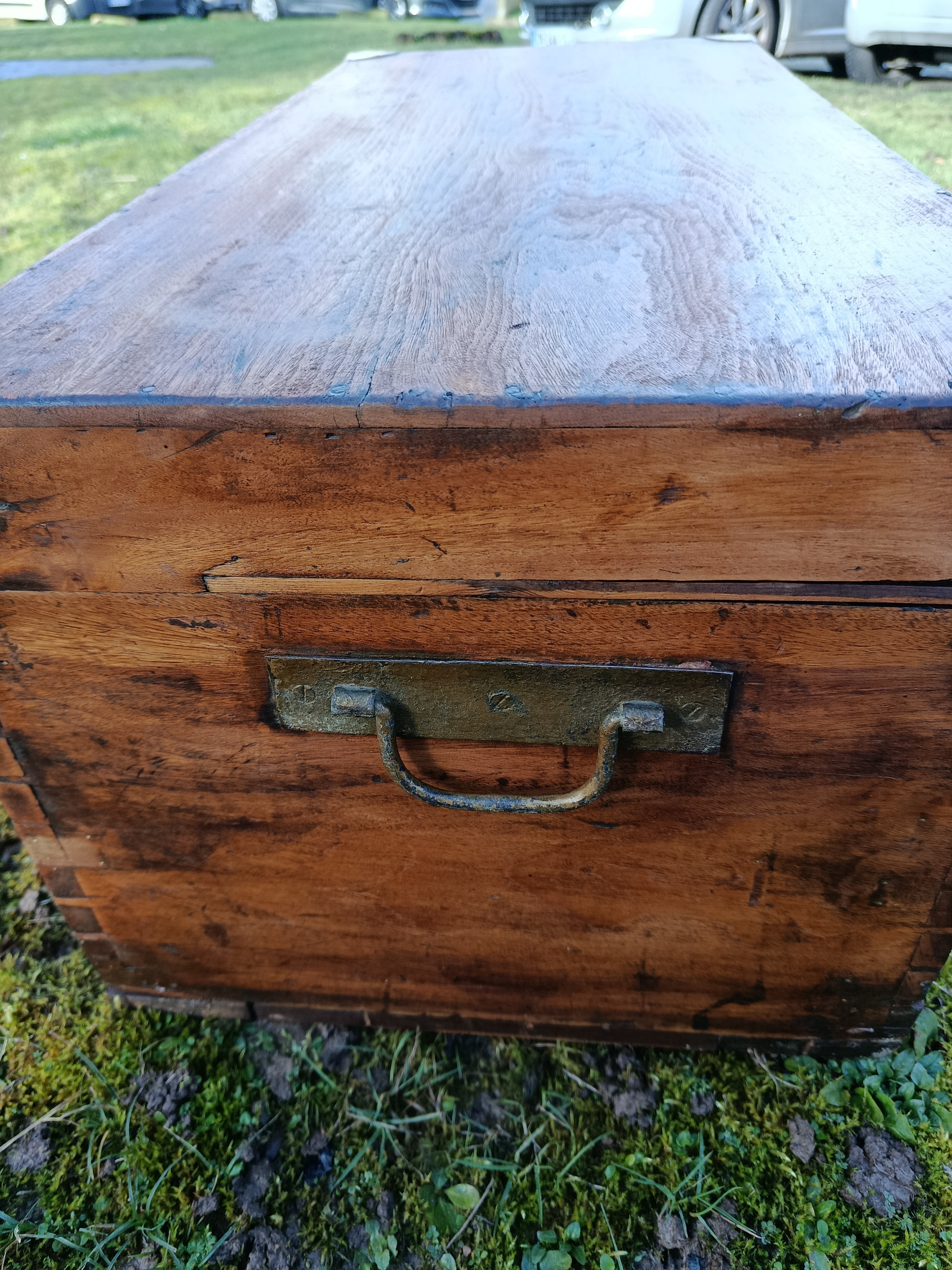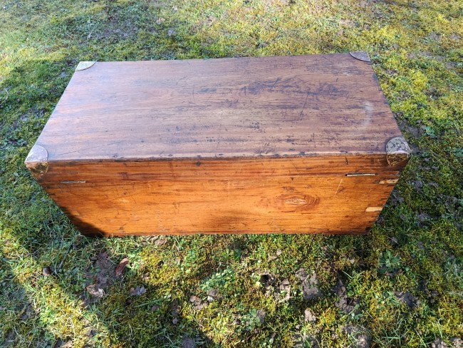 Camphrier de marine fin 19ème - récupéré à Cherbourg - sobre et très classe à la fois - il aurait servi sur un morutier ... ce coffre est sobre - il est dans ce bois resistant à l'humidité et aux attaques des nuisibles (insectes ect...) - moraillon avec vieux cadenas - poignées en laiton - idéal pour un petit coffre de rangement, peut être placé n'importe ou dans la maison - petite table basse pour un studio - rangement de photos ou autre colelction objets divers - banc à chaussures ... petit meuble d'entrée