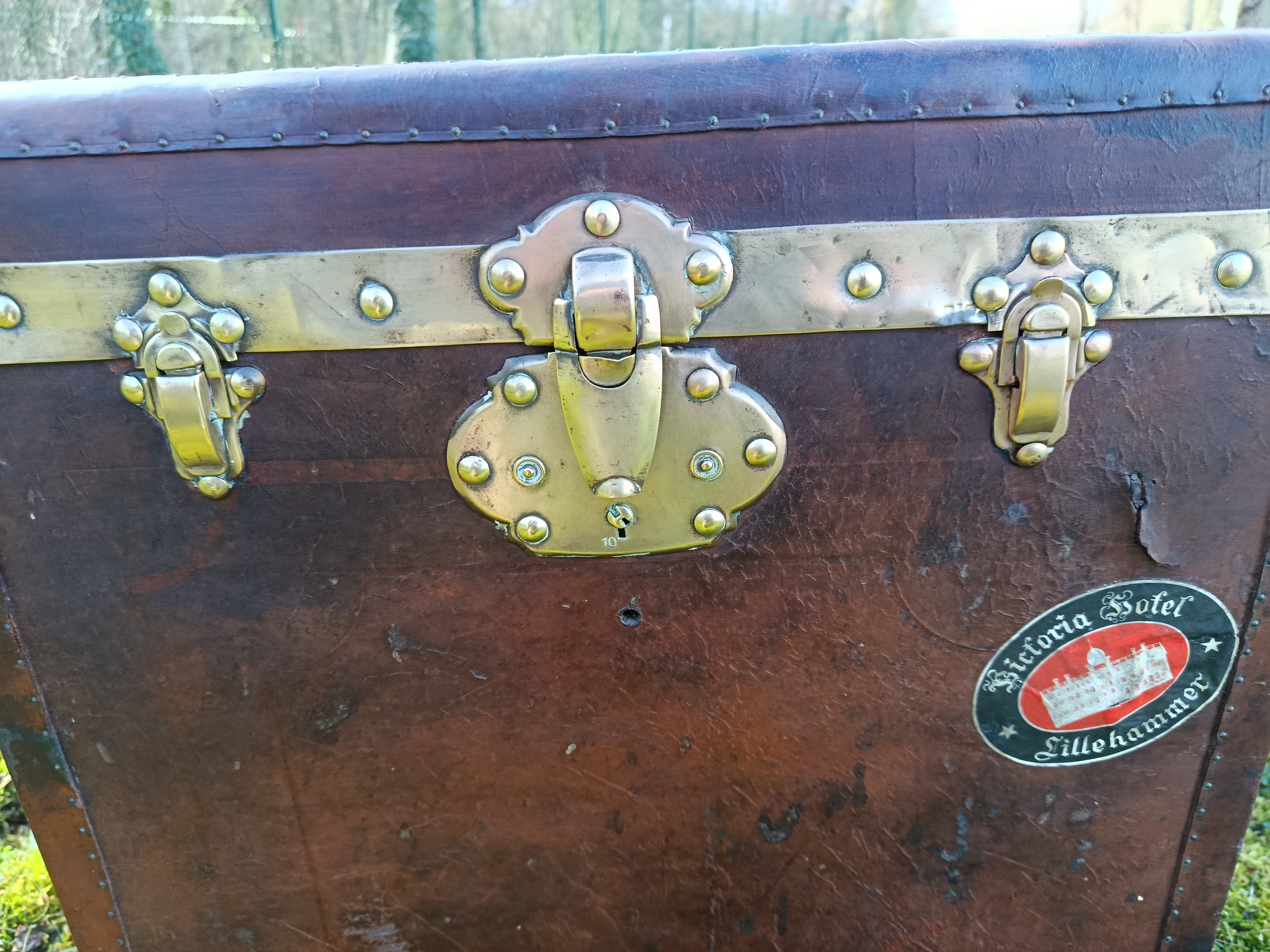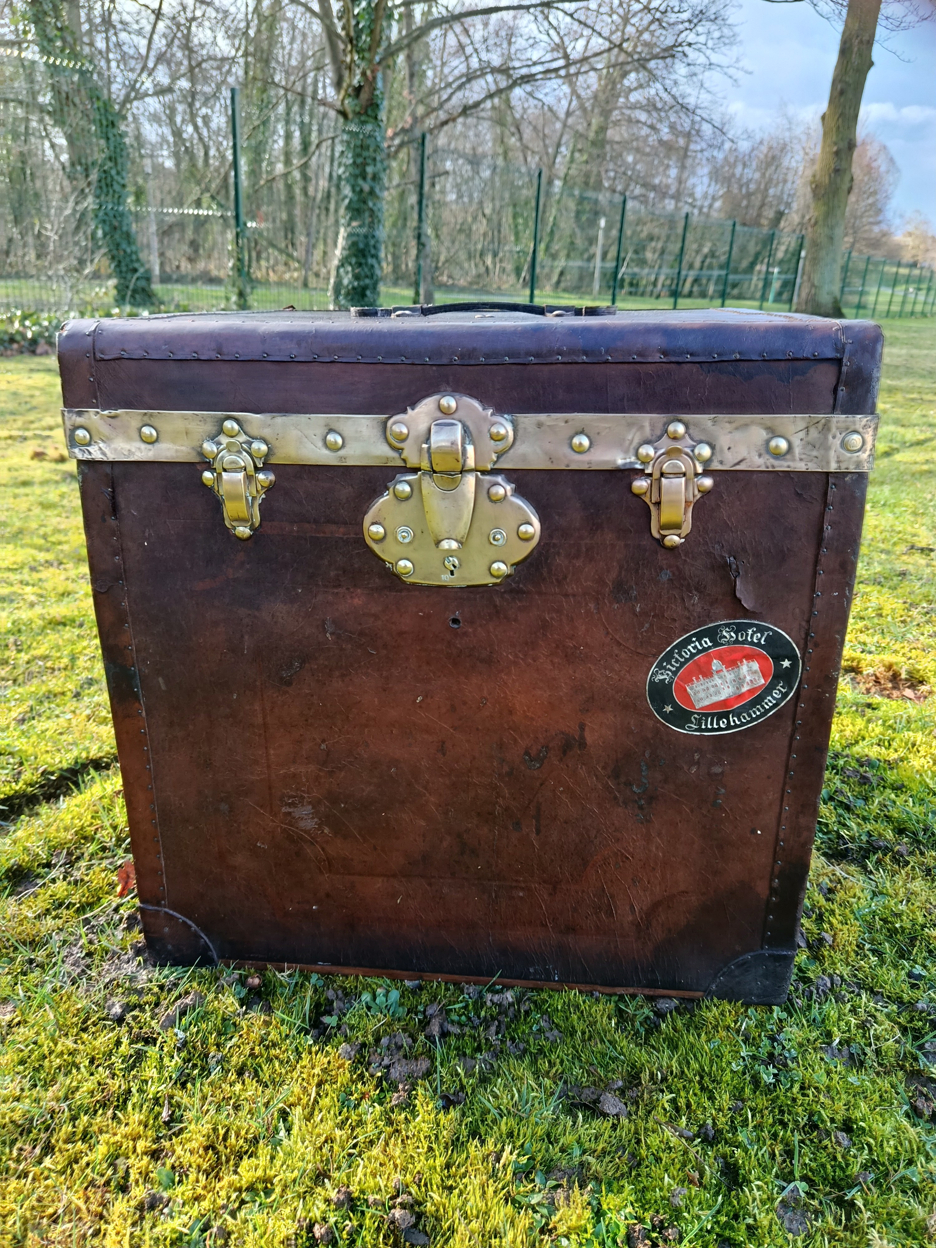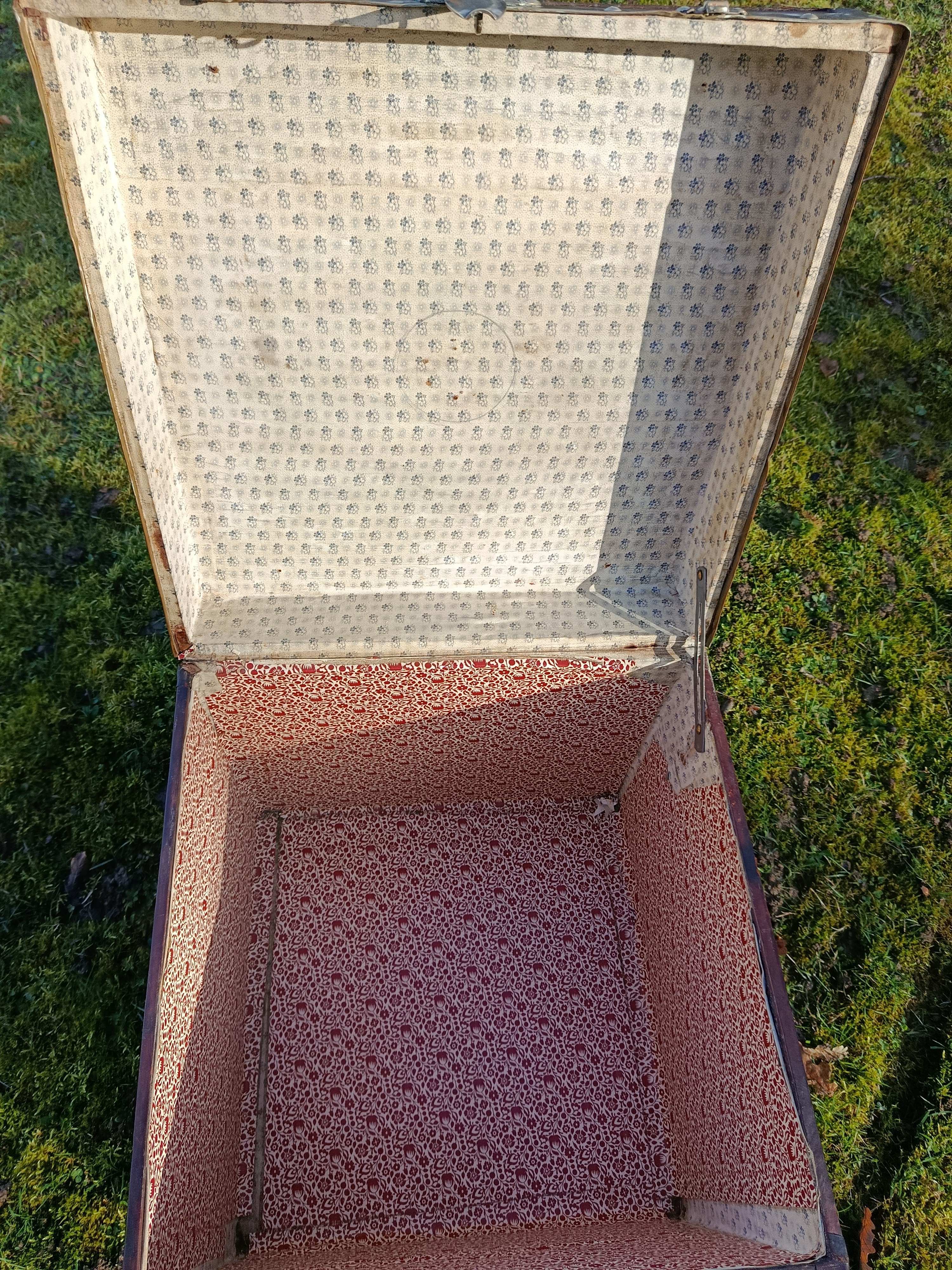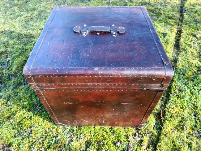 Malle de luxe en bois - revêtement cuir - trés belle qualité et belle conservation - le cuir a été rafraichi avec un produit spécial cuir - laiton astiqués - intérieur bon état - dimensions carrées - peu d'encombrement et très classe dans un intérieur - idéale pour rangement de petits objets - petit table dans un intérieur réduit ou chambre - table de nuit ... récupérée dans un appartement parisien