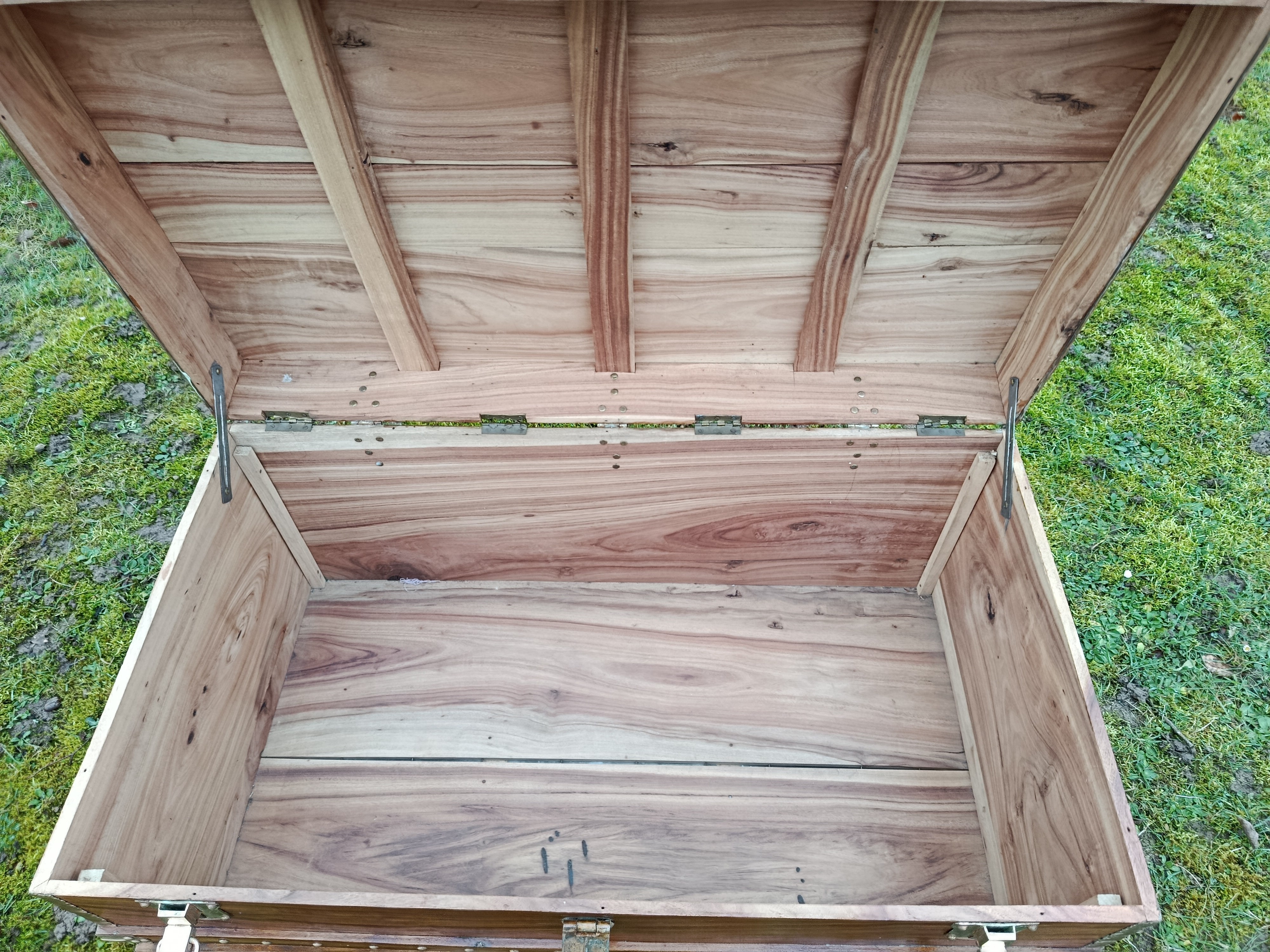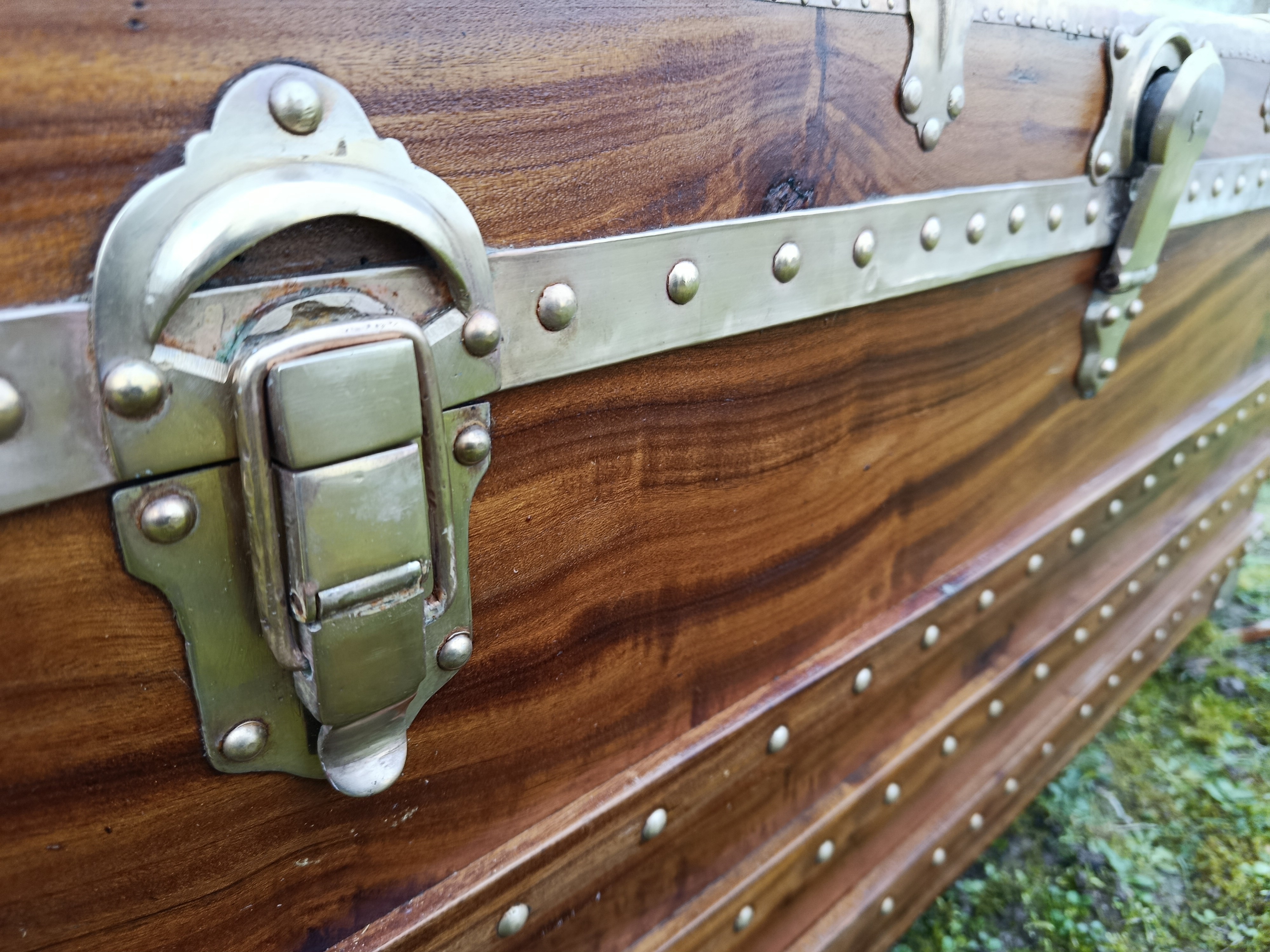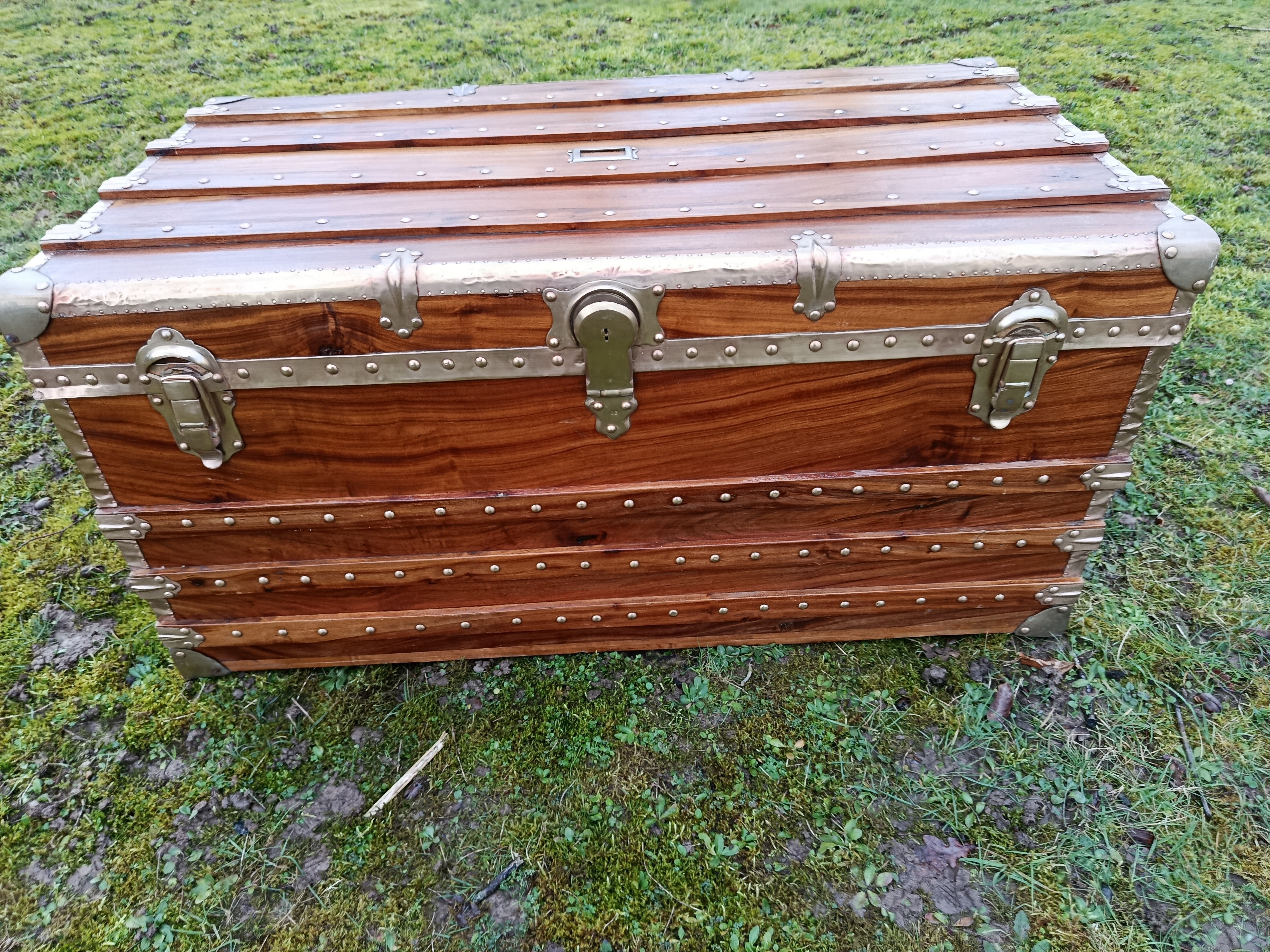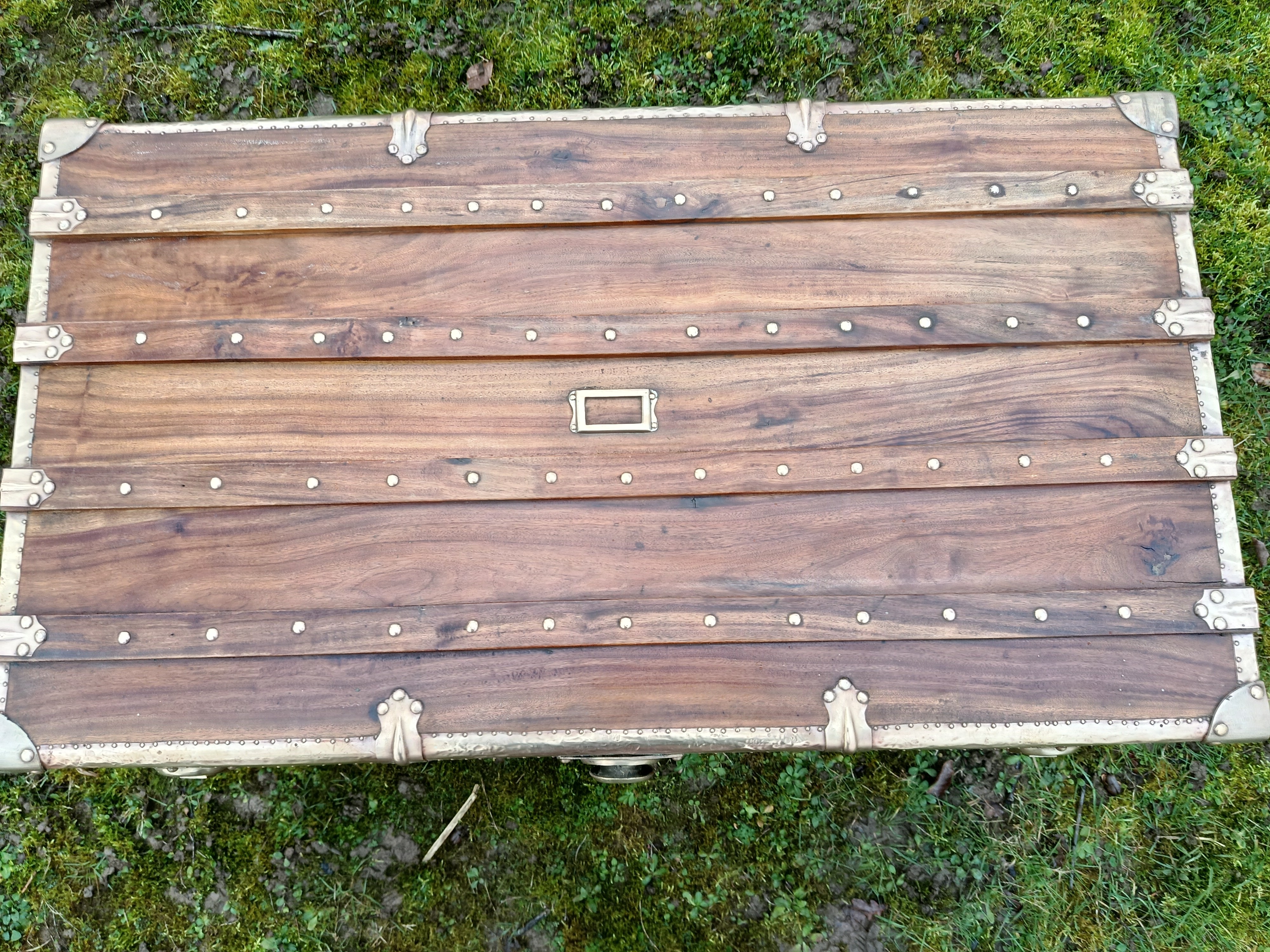 Gros camphrier de marine fin 19ème - appartenait à un officier de la coloniale - le camphrier a cette vertu de préserver le linge et les effets des agressions du climat et de l'attaque des nuisibles (insectes ect...) ce coffre est de qualité exceptionnelles avec un rafraichissement très réussi - toutes les pièces sont d'origine - son parfum diffuse dans votre intérieur une odeur très agréable quand il est ouvert - bois avec un superbe veinage - vernis - la bijouterie est en laiton - bandeaux et cornières - ainsi que les fermoirs - belles poignées en bronze ainsi que les coins - malle très solide et assez lourde - grande contenance - produit de très belle qualité - n'a rien à envier des grandes malles de luxe mais avec un prix plus abordable - je trouve que mes photos ne la mette pas dans la valeur qu'elle mérite (plus belle en réalité...)