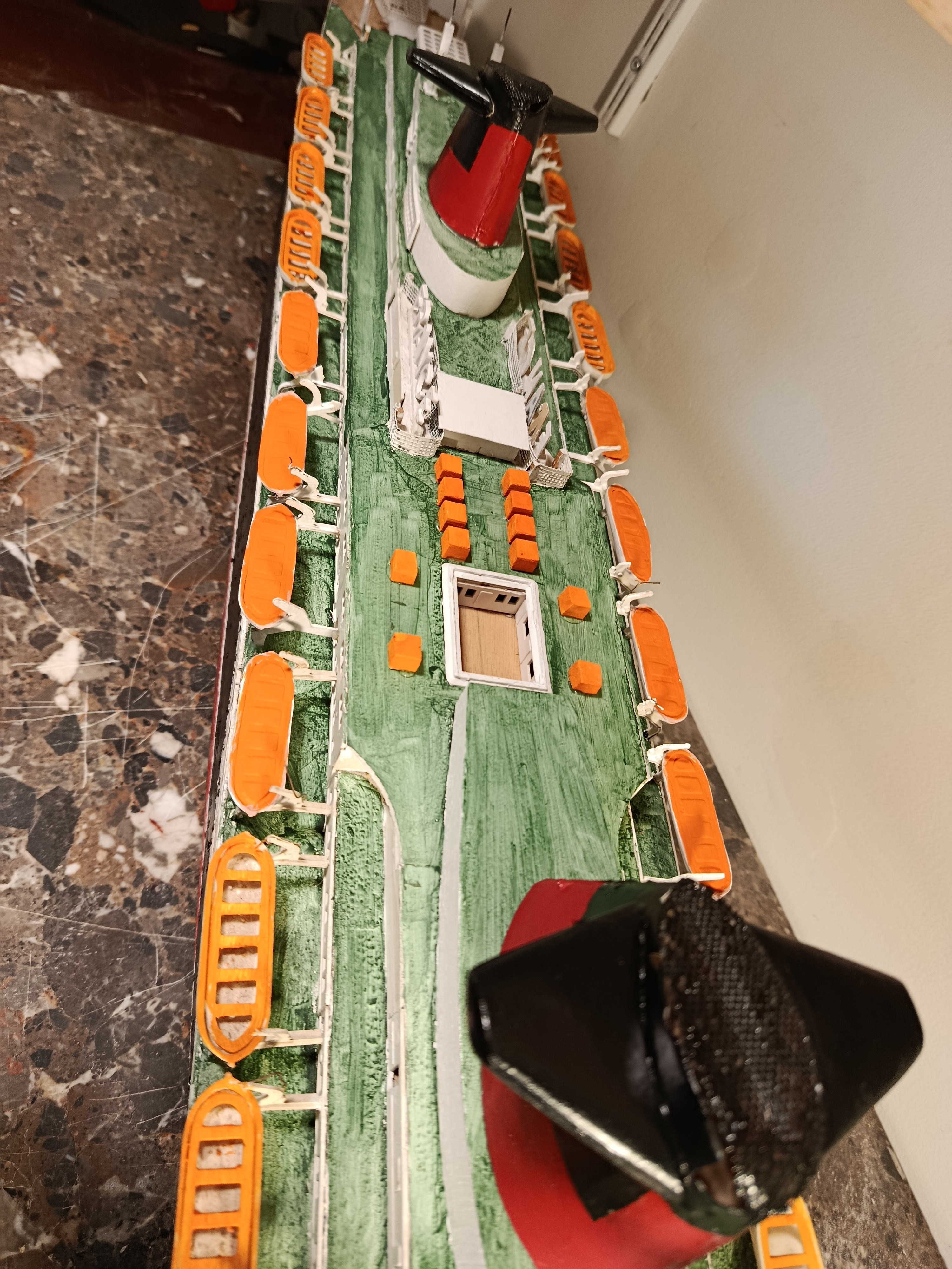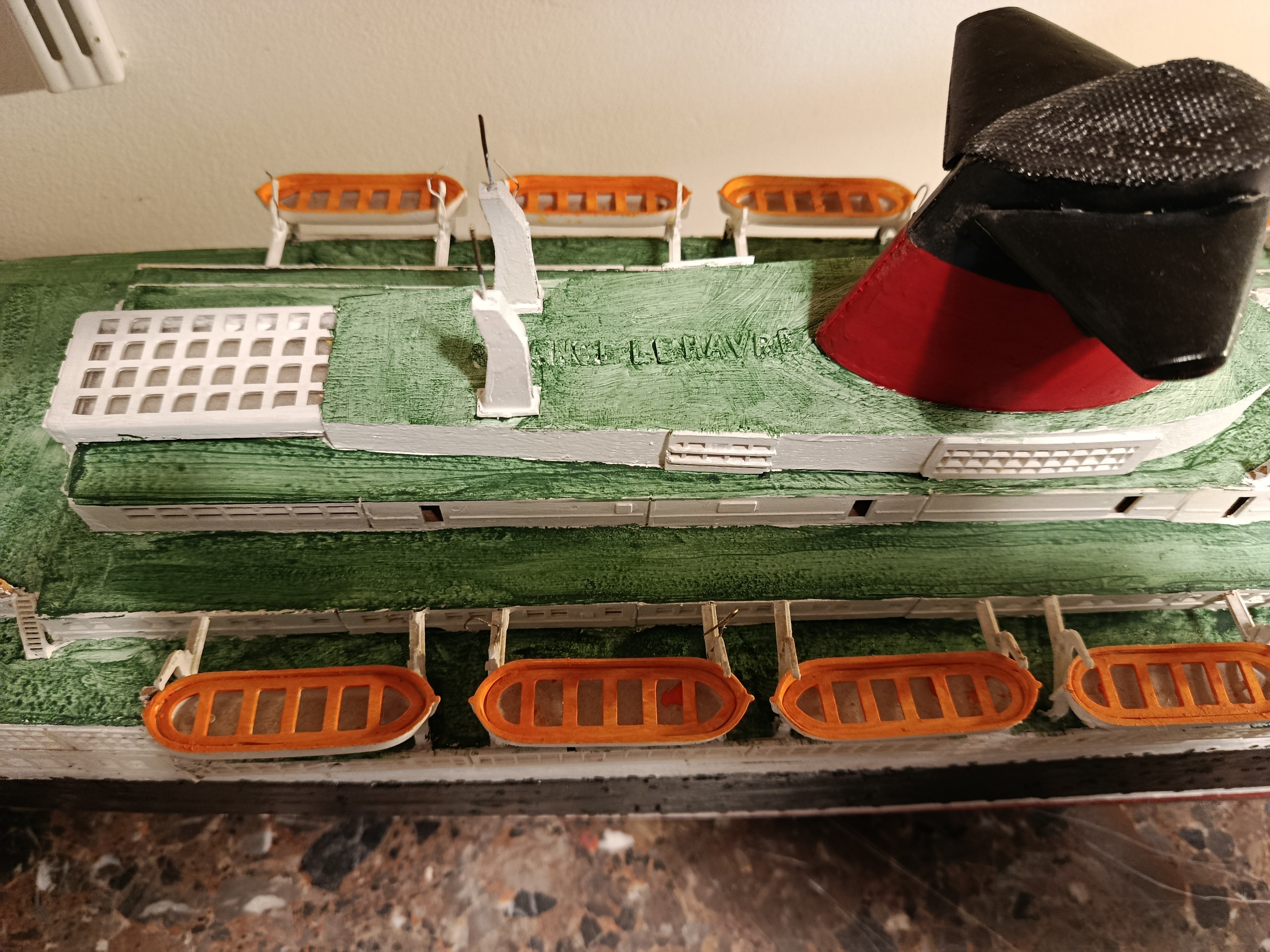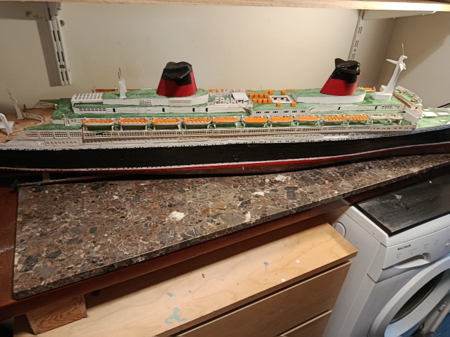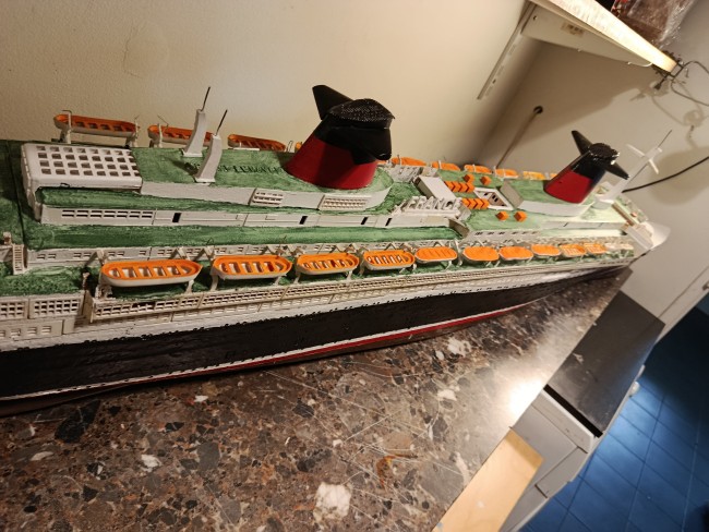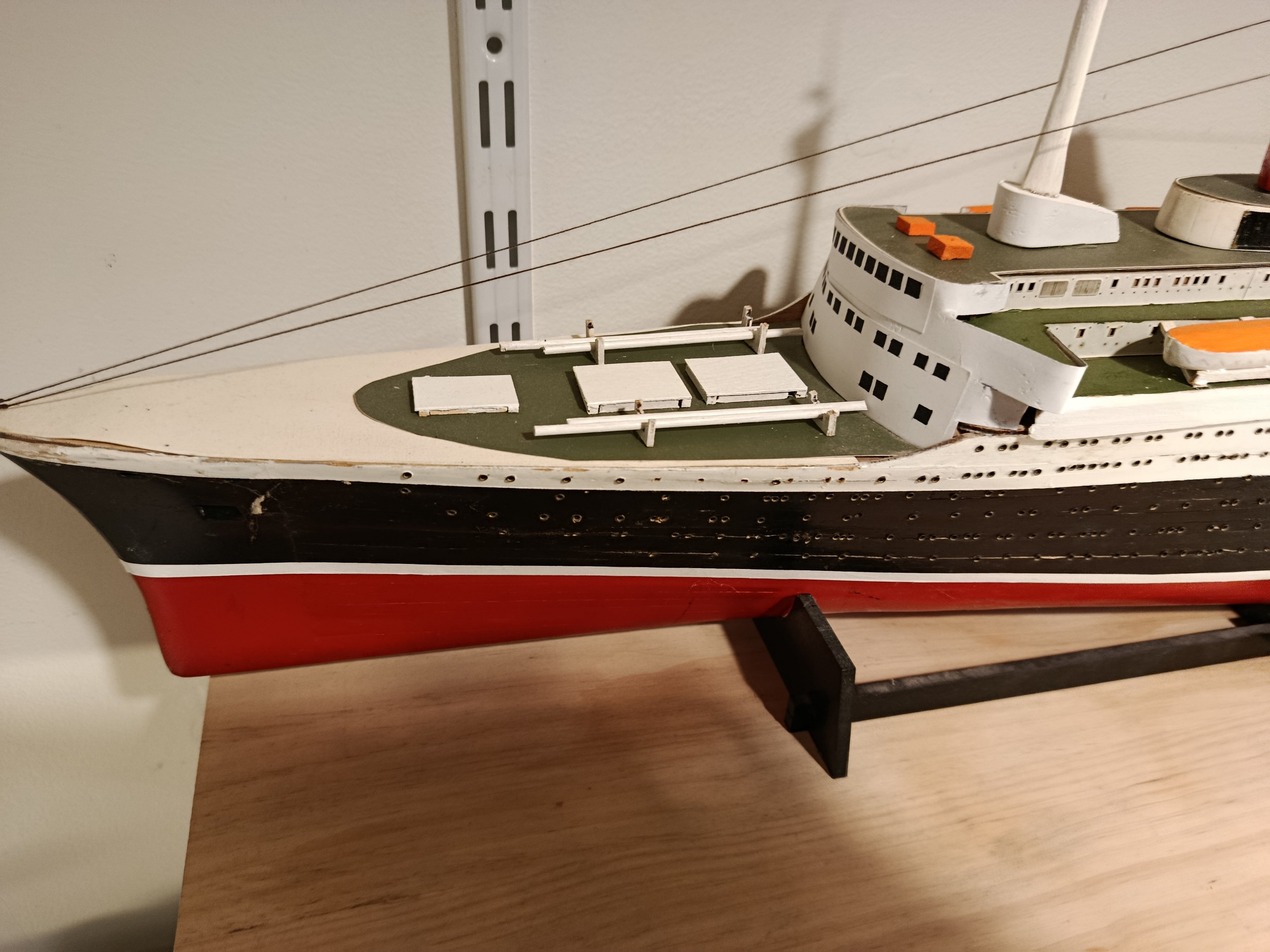 Grande maquette en bois, montée sur plan, du paquebot France - Dans cette dimension le produit est assez rare - il mesure 1M60 de long - pour le reste je laisse juger d'après les photos mais je peux répondre avec plaisir à toutes questions
