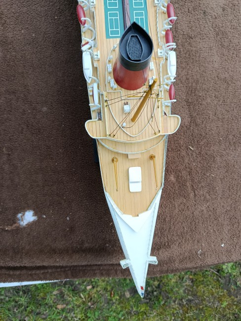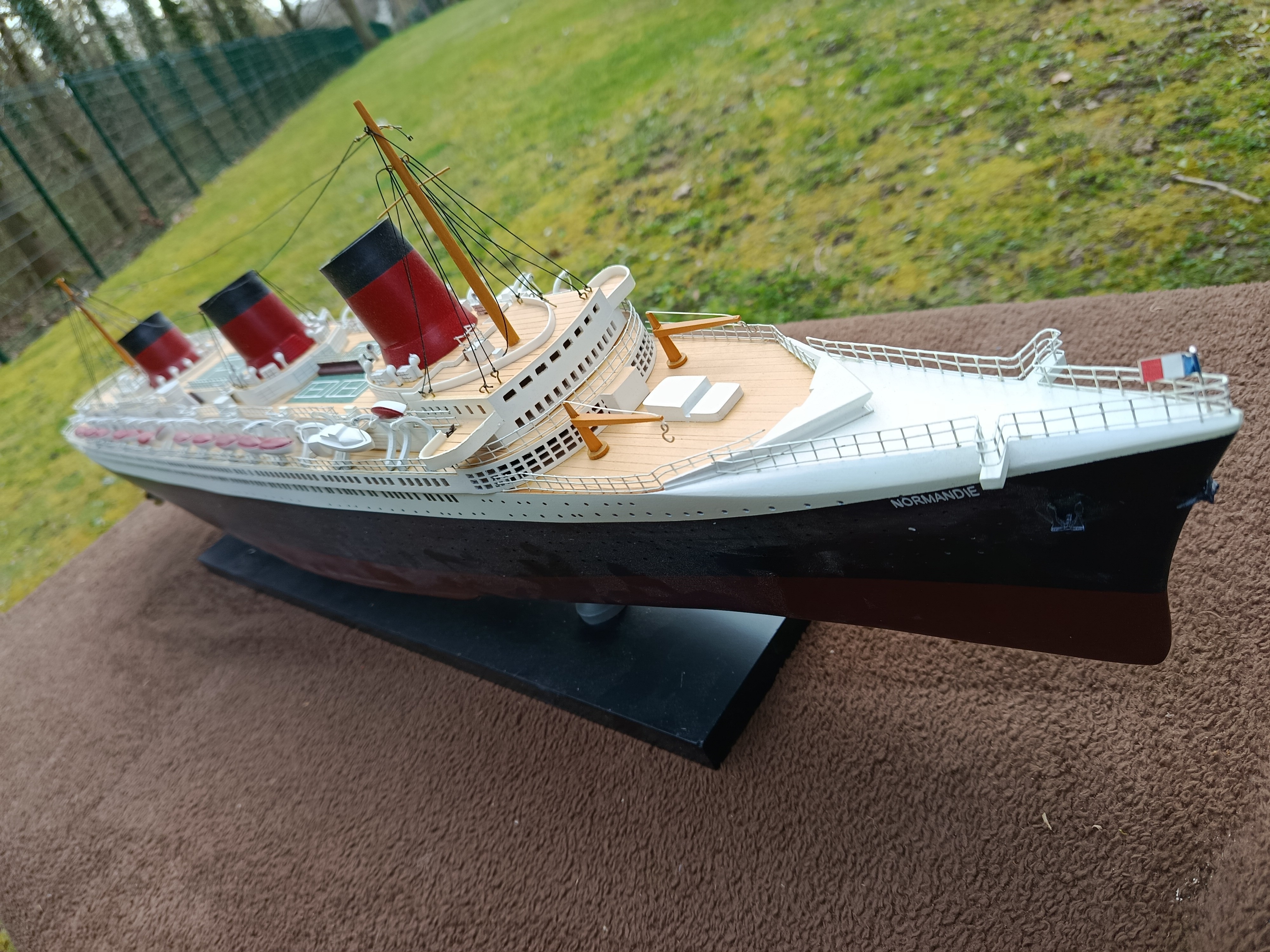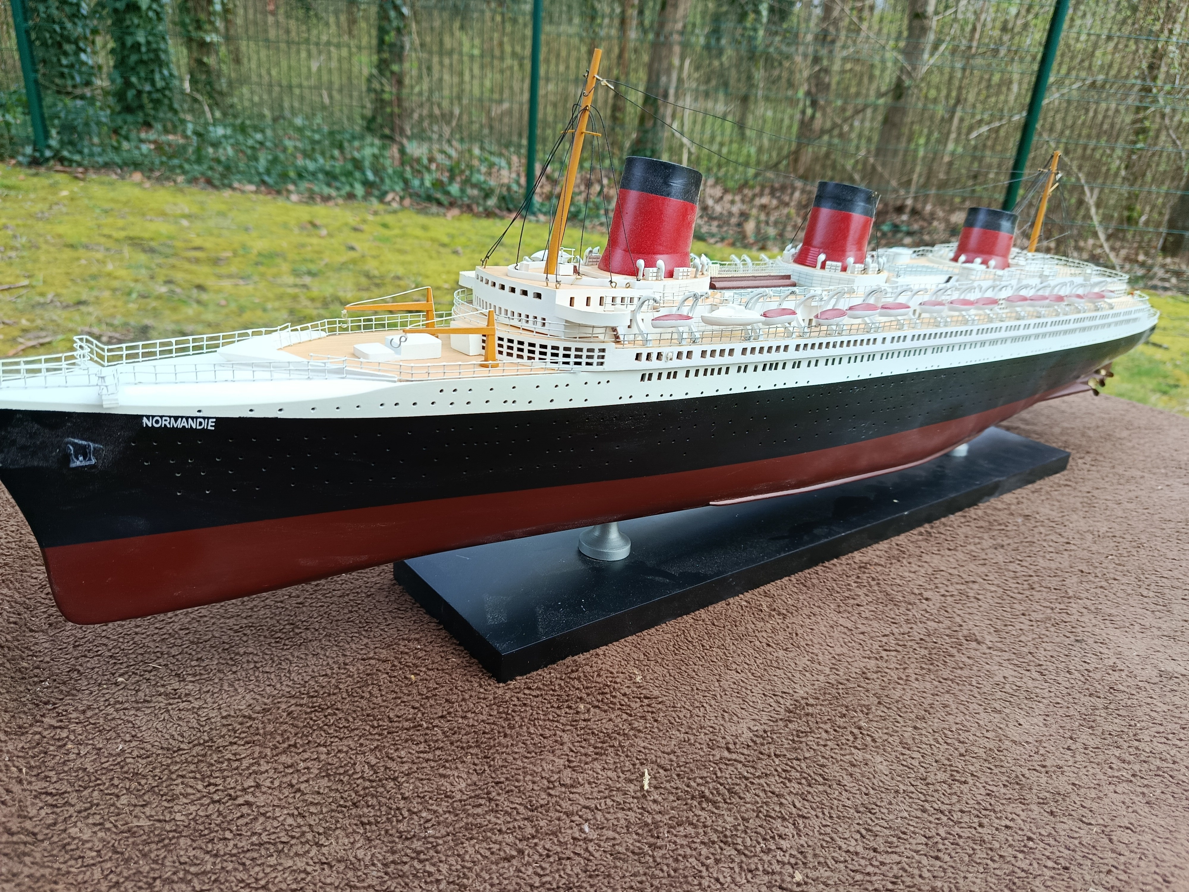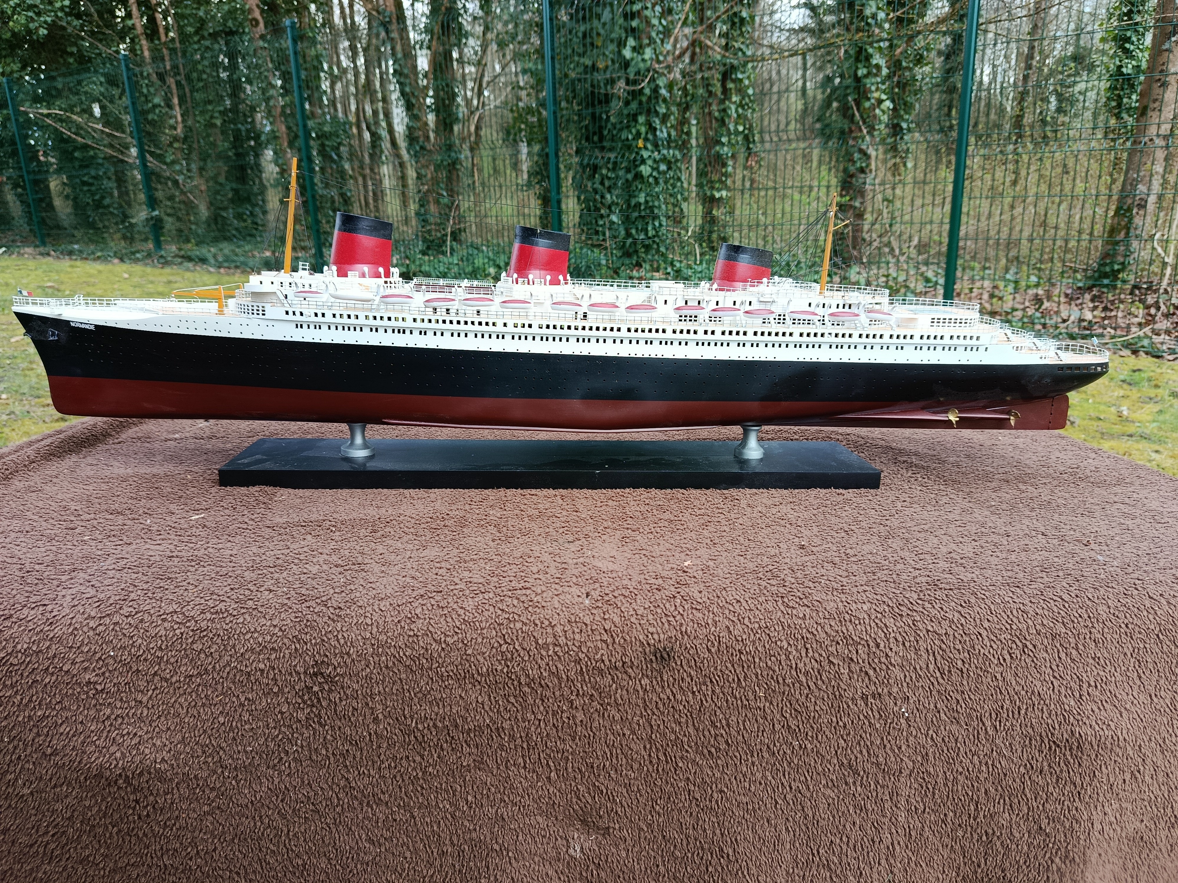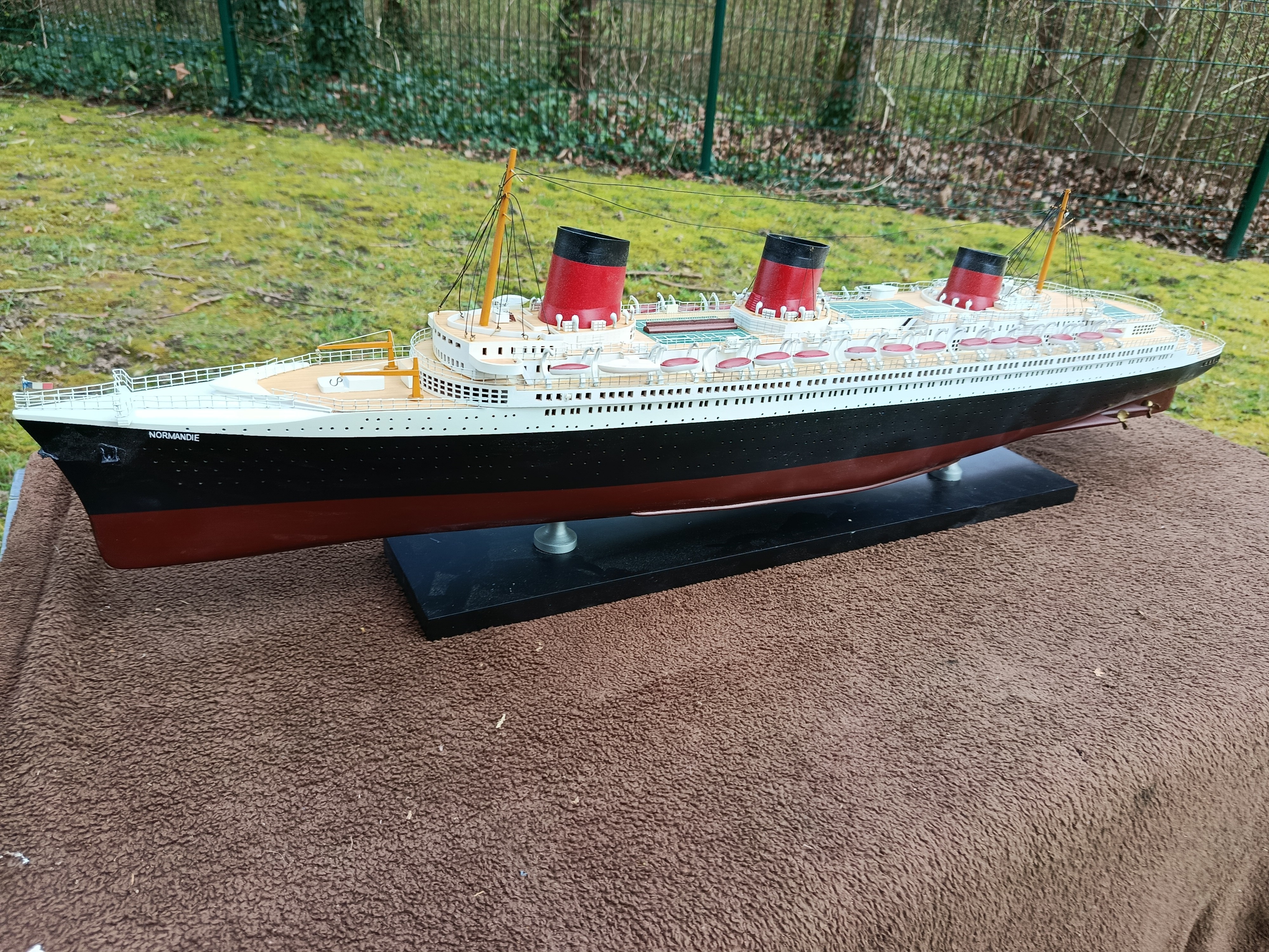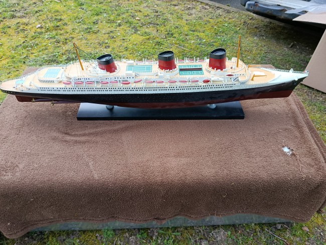 Très belle maquette en bois du paquebot Normandie - très déco - idéale pour maison de bord de mer - déco marine - collectionneur - Une malle + un paquebot - c'est toute une époque qui redonne ses lettres de noblesse au mot VOYAGE