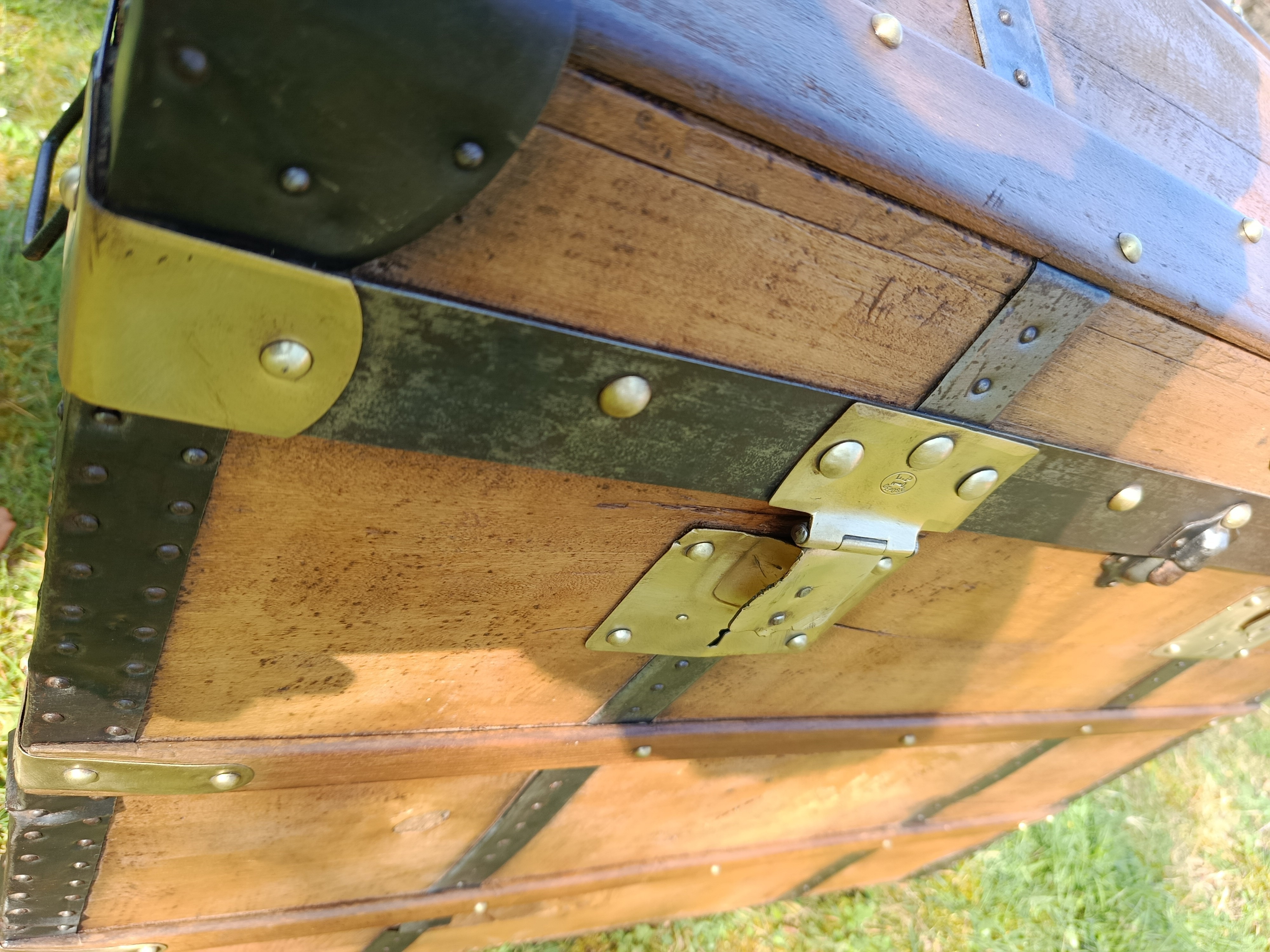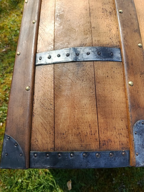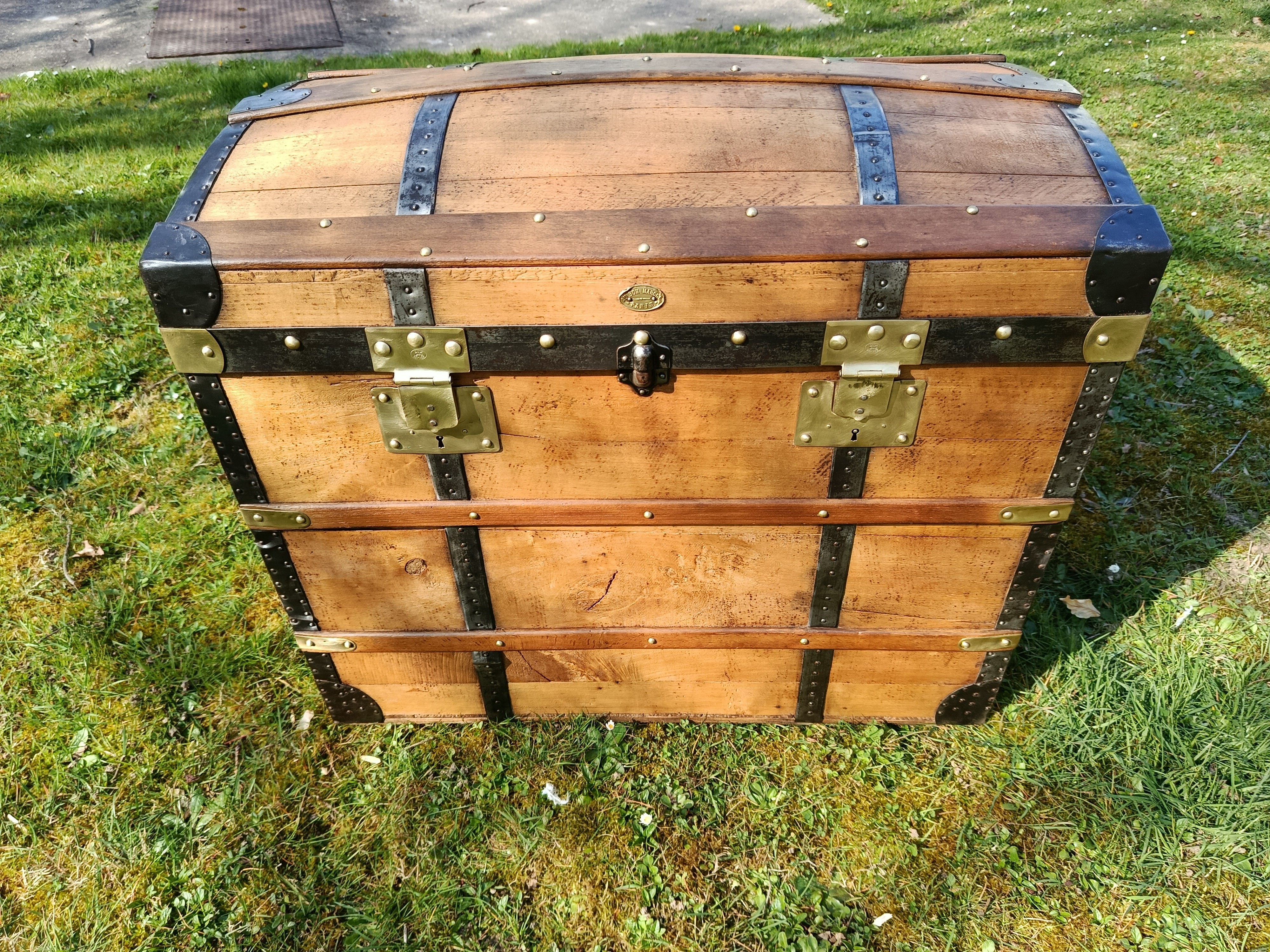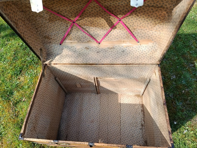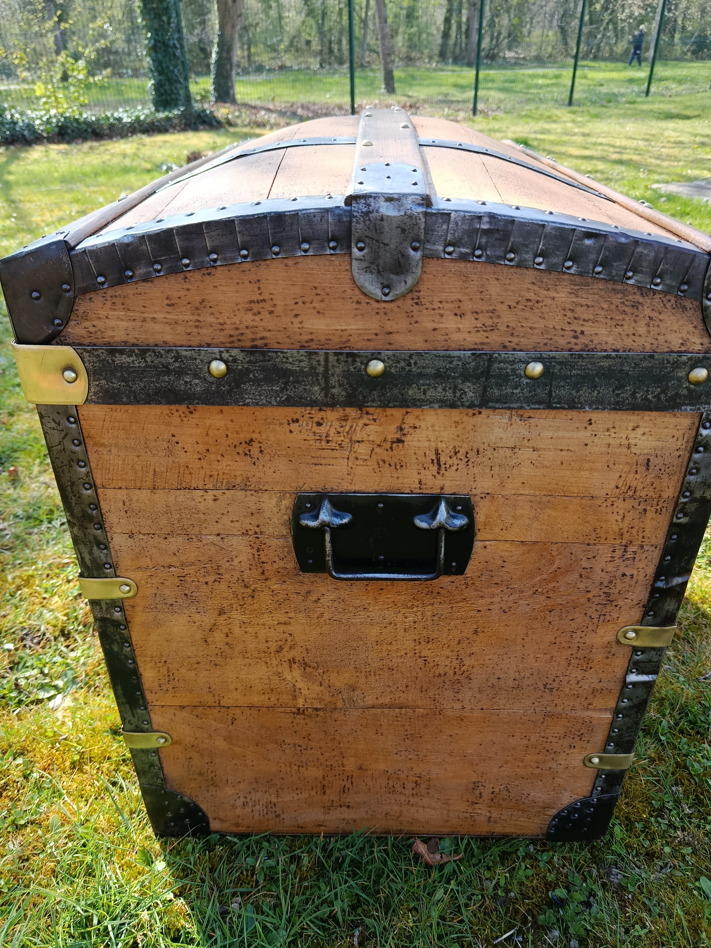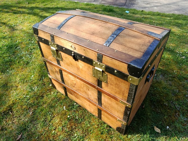 Patine exceptionnelle pour cette malle de 1880 - elle était destinée aux voyages par transport malle poste - beau galbe du capot - hêtre et peuplier massif - les ferrures sont brossées et cirées - belle contenance - grande solidité - se marie avec tous les styles d'intérieur
