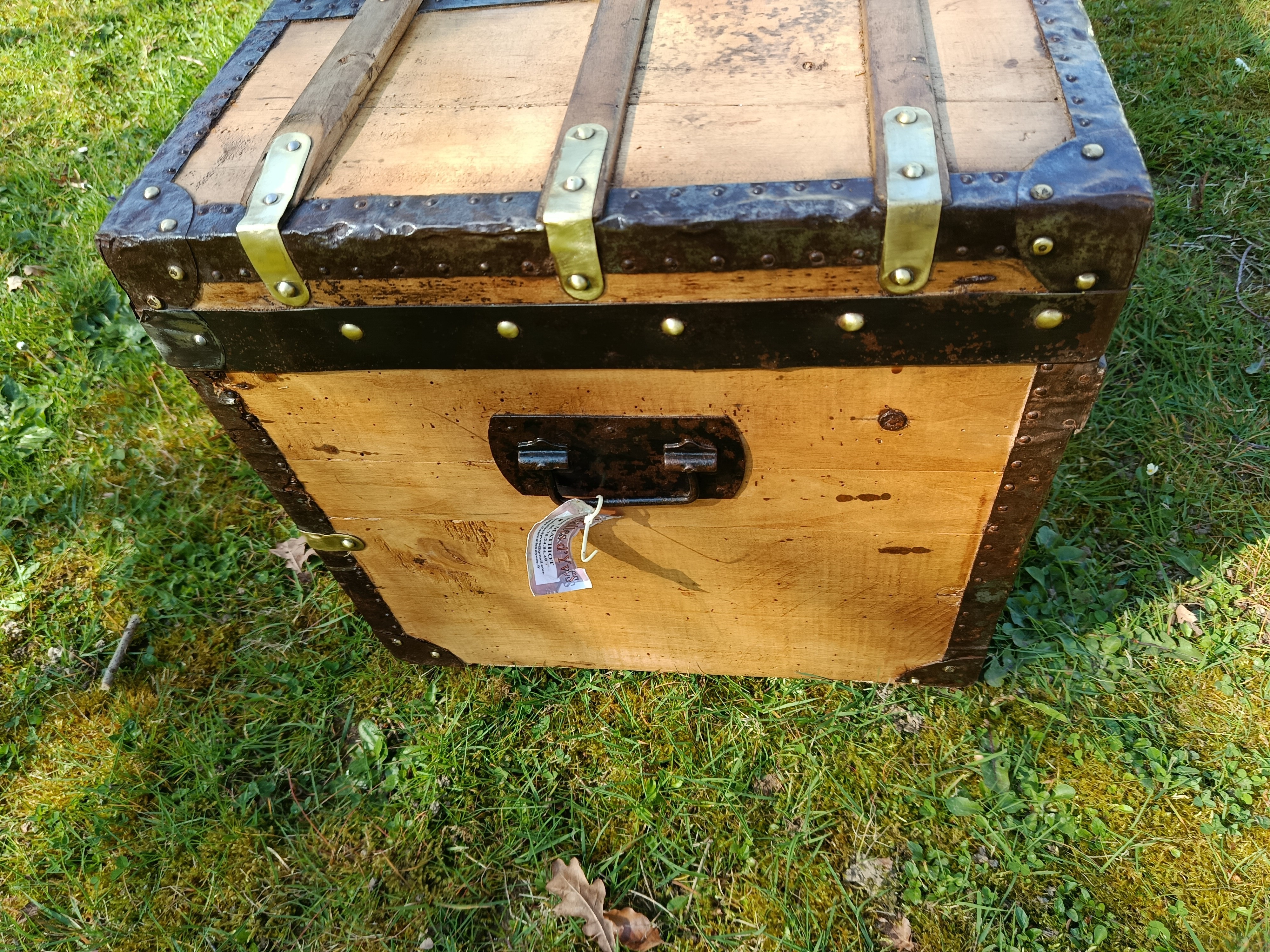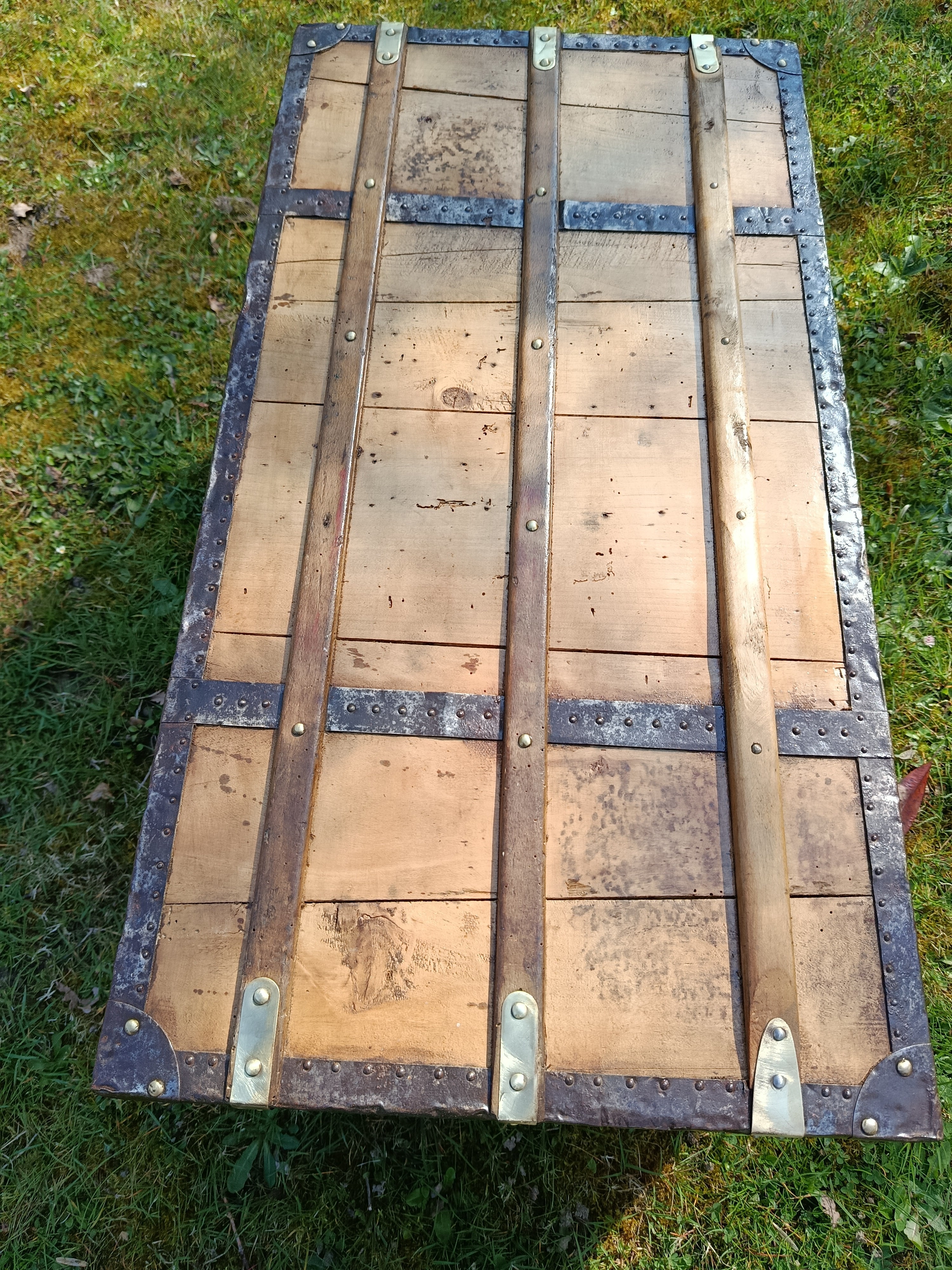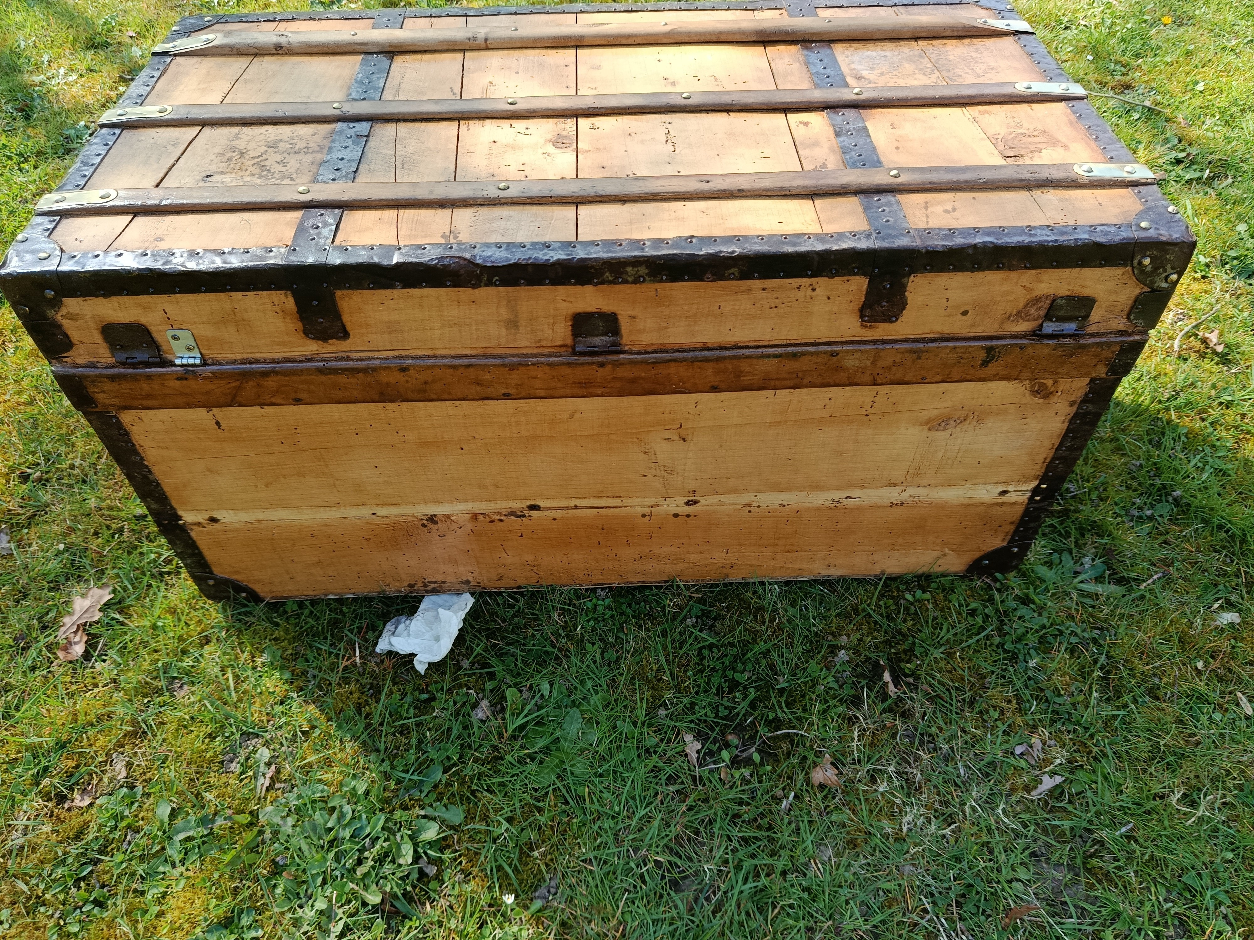 Malle transatlantique en bois de peuplier et hêtre - pratique et très déco - idéale pour rangement du linge - collections - bouteilles - peut être adaptée en bar - table basse ou bout de lit - cette malle est faite de matériaux nobles - bois massif - ferrures brosses et cirées - laiton - cuir