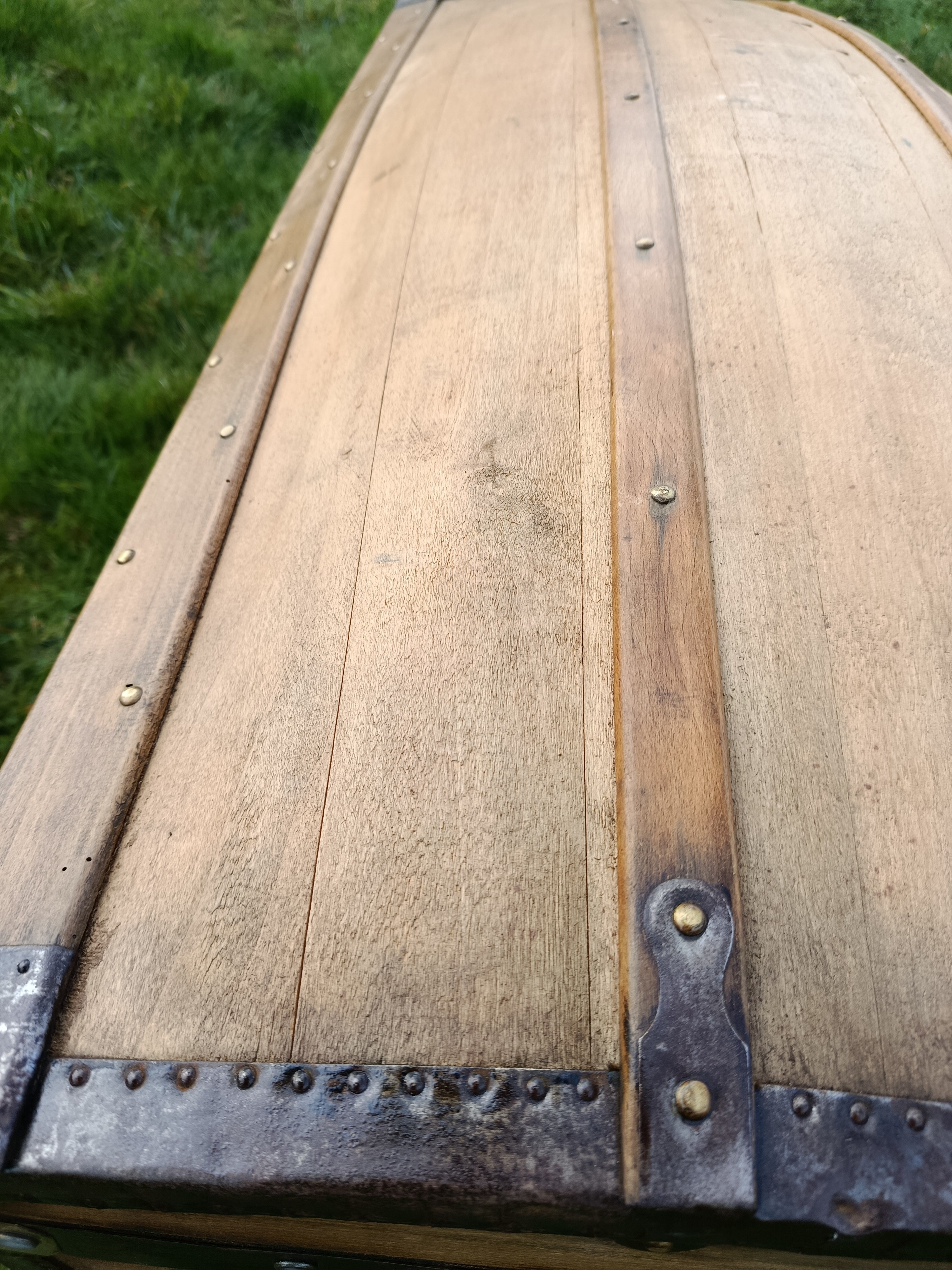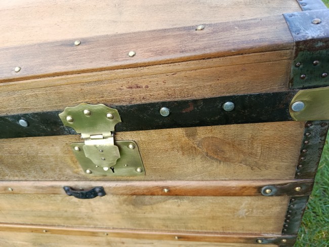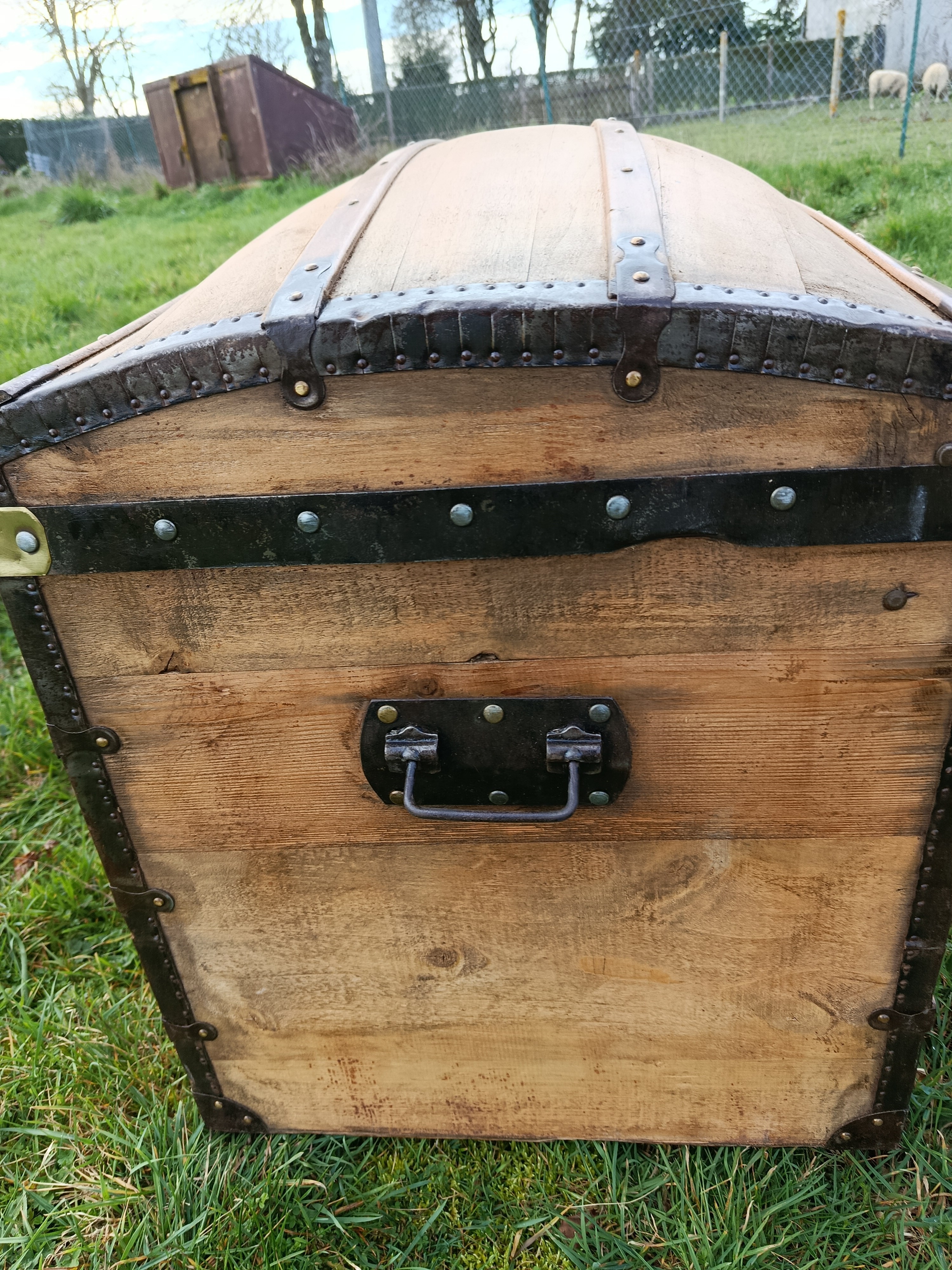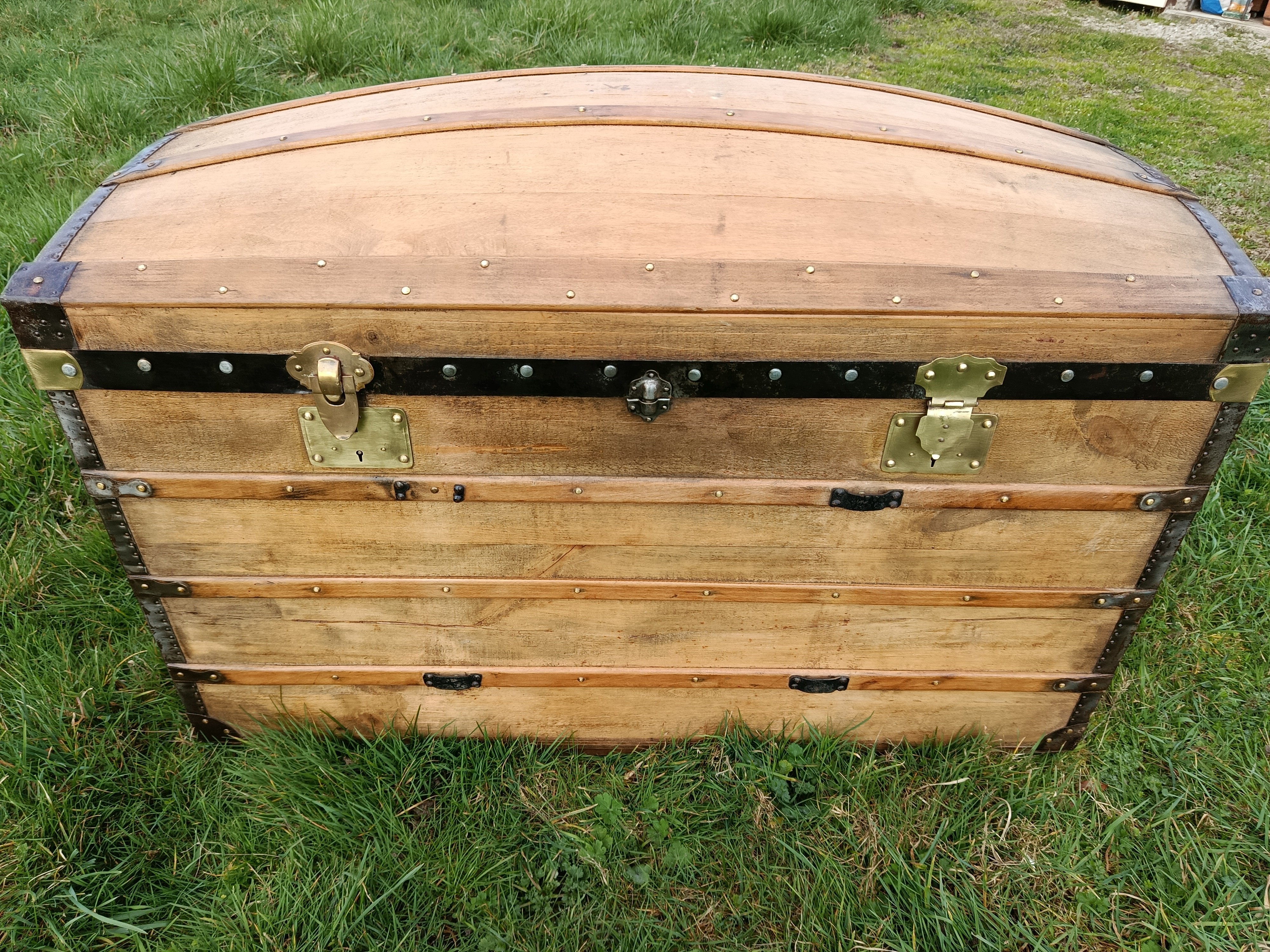 Malle bombée de calèche - sa particularité : très grande - belle contenance - idéale pour bois de cheminée ou objets fort encombrants