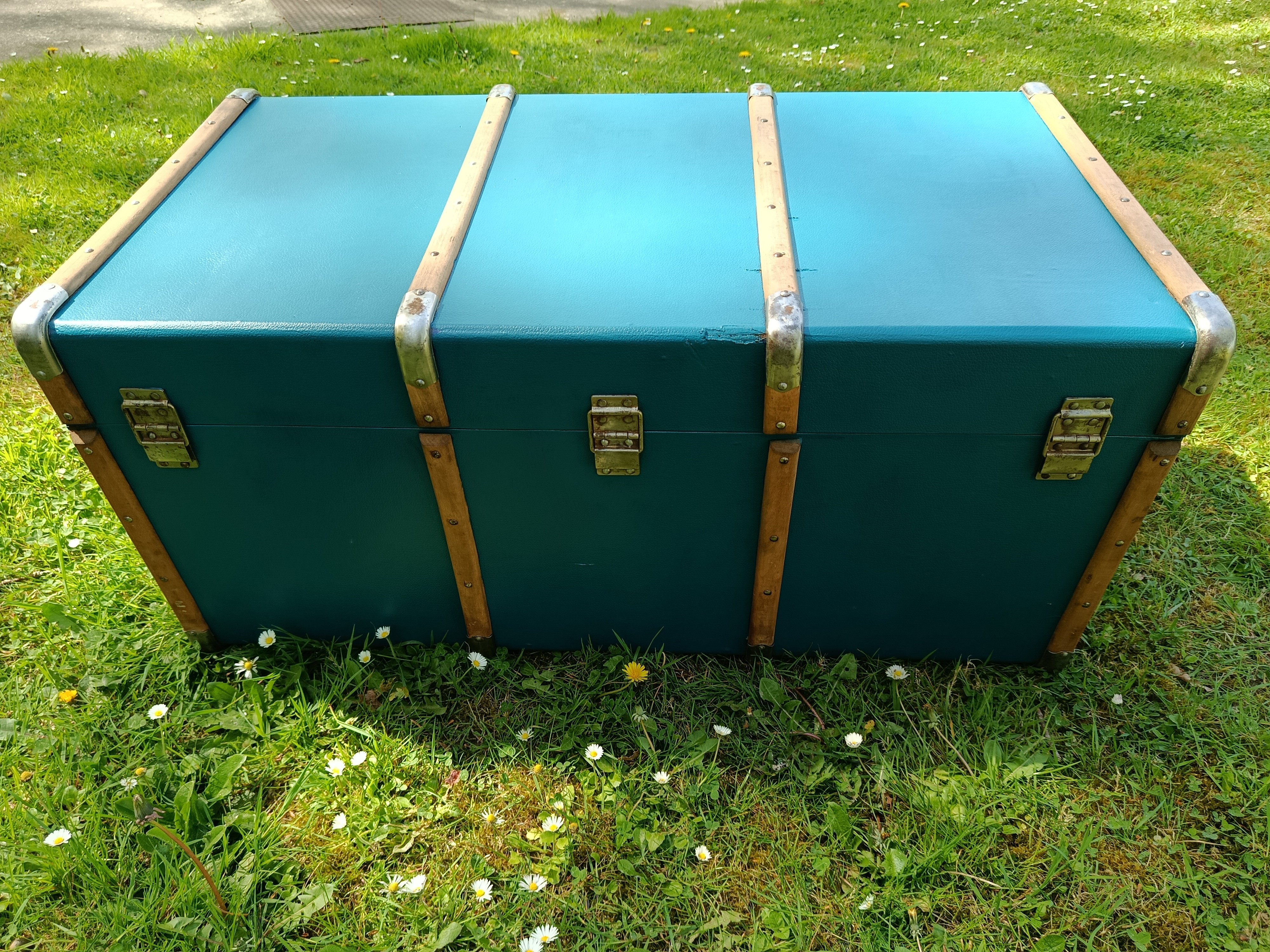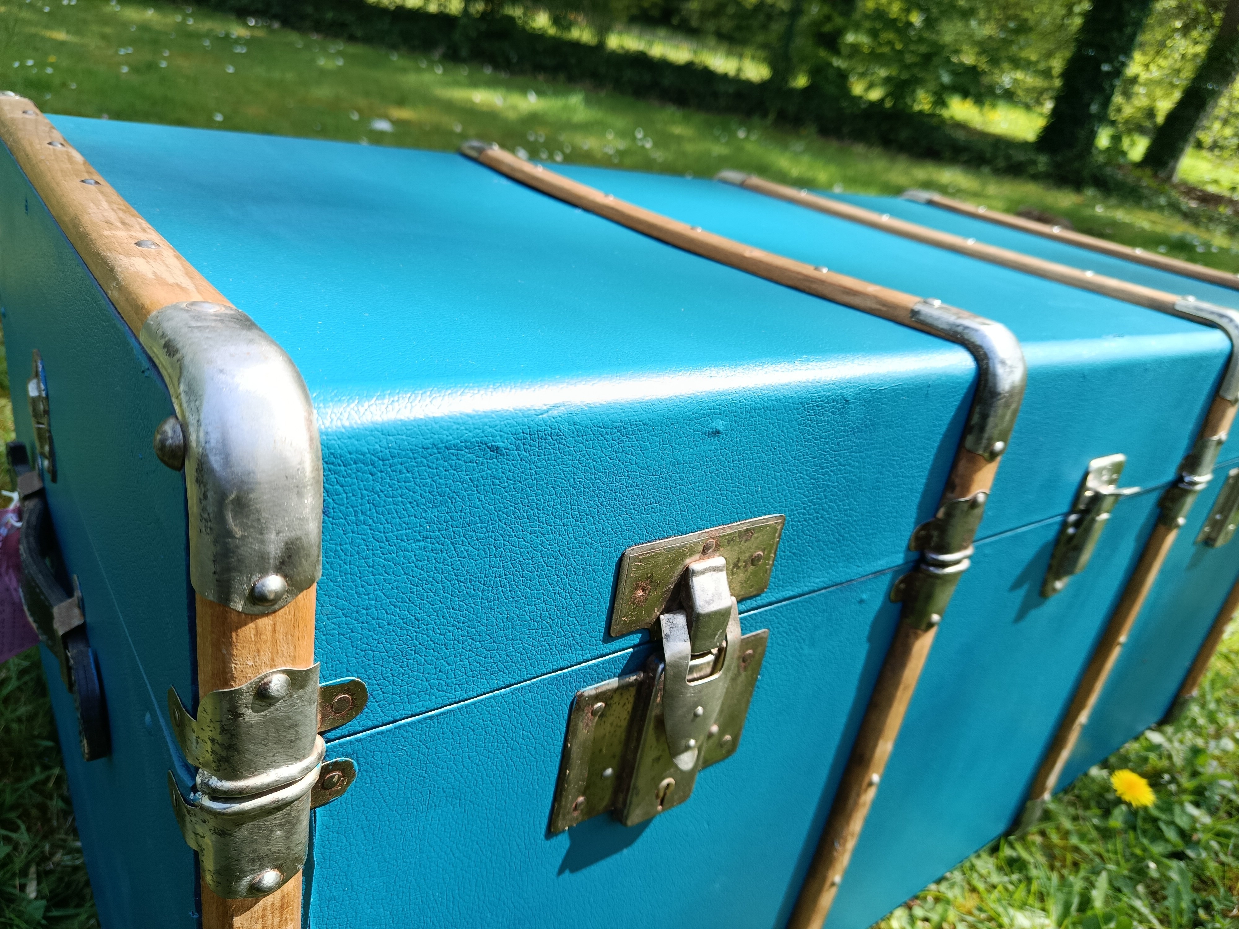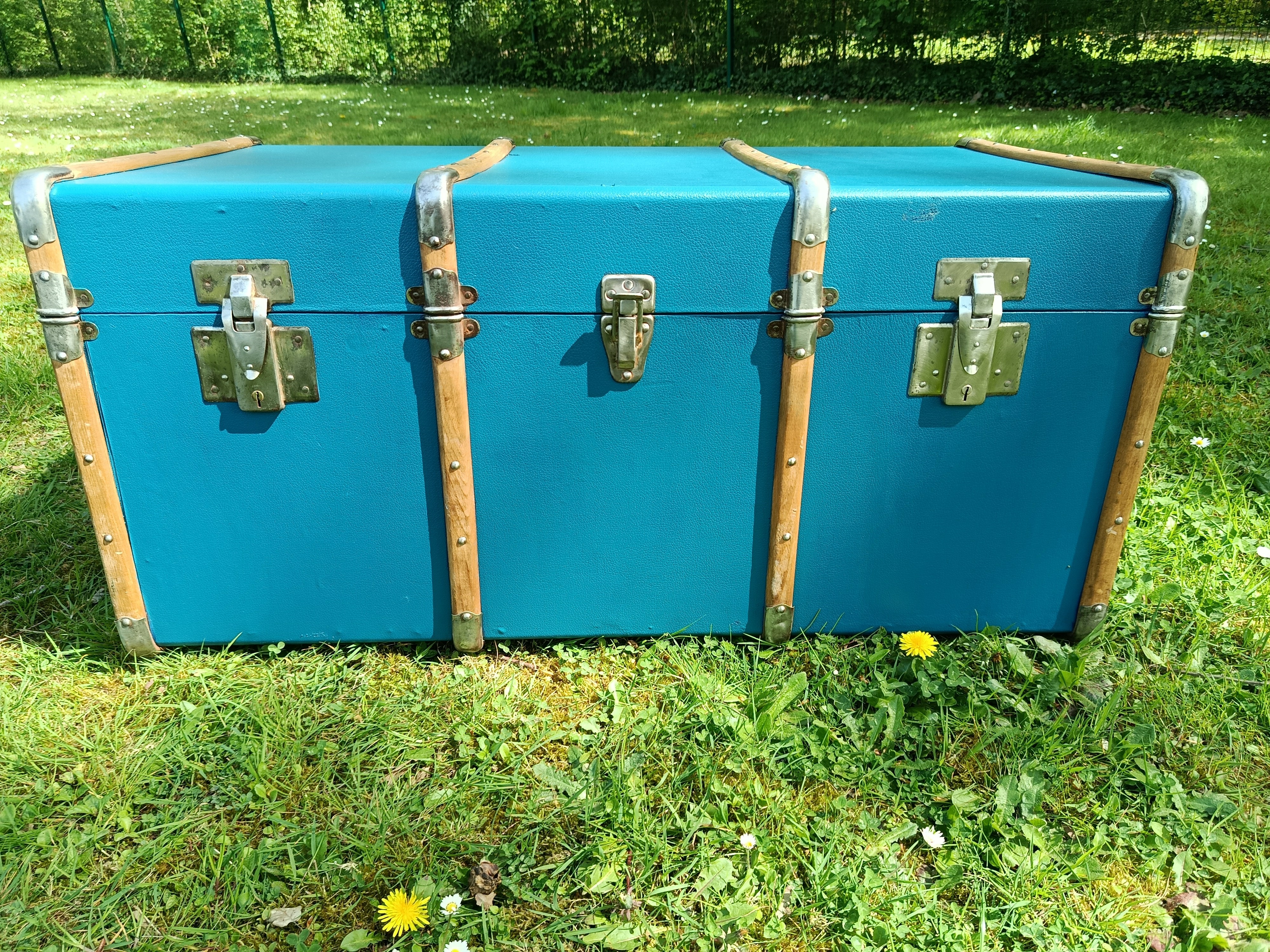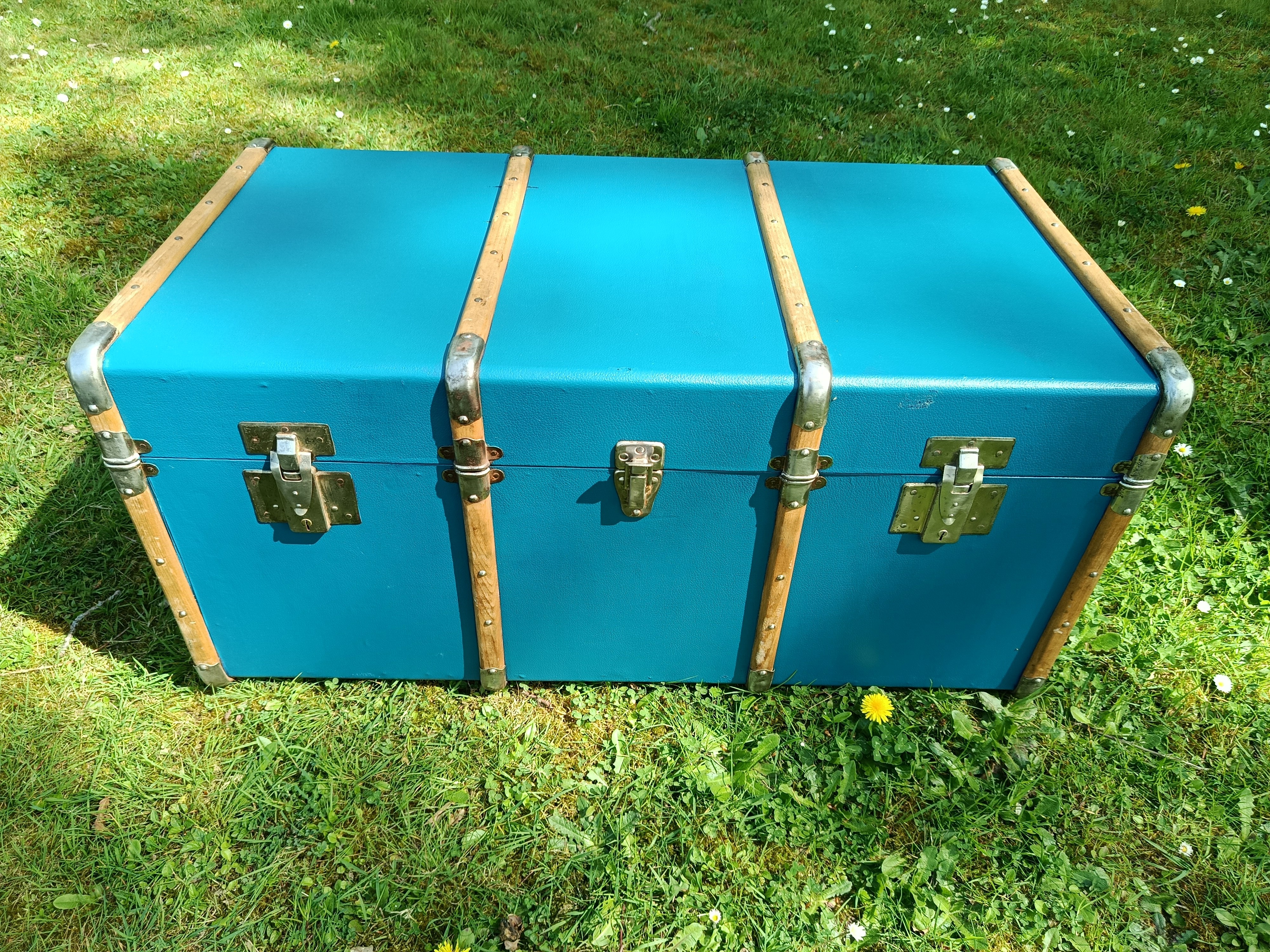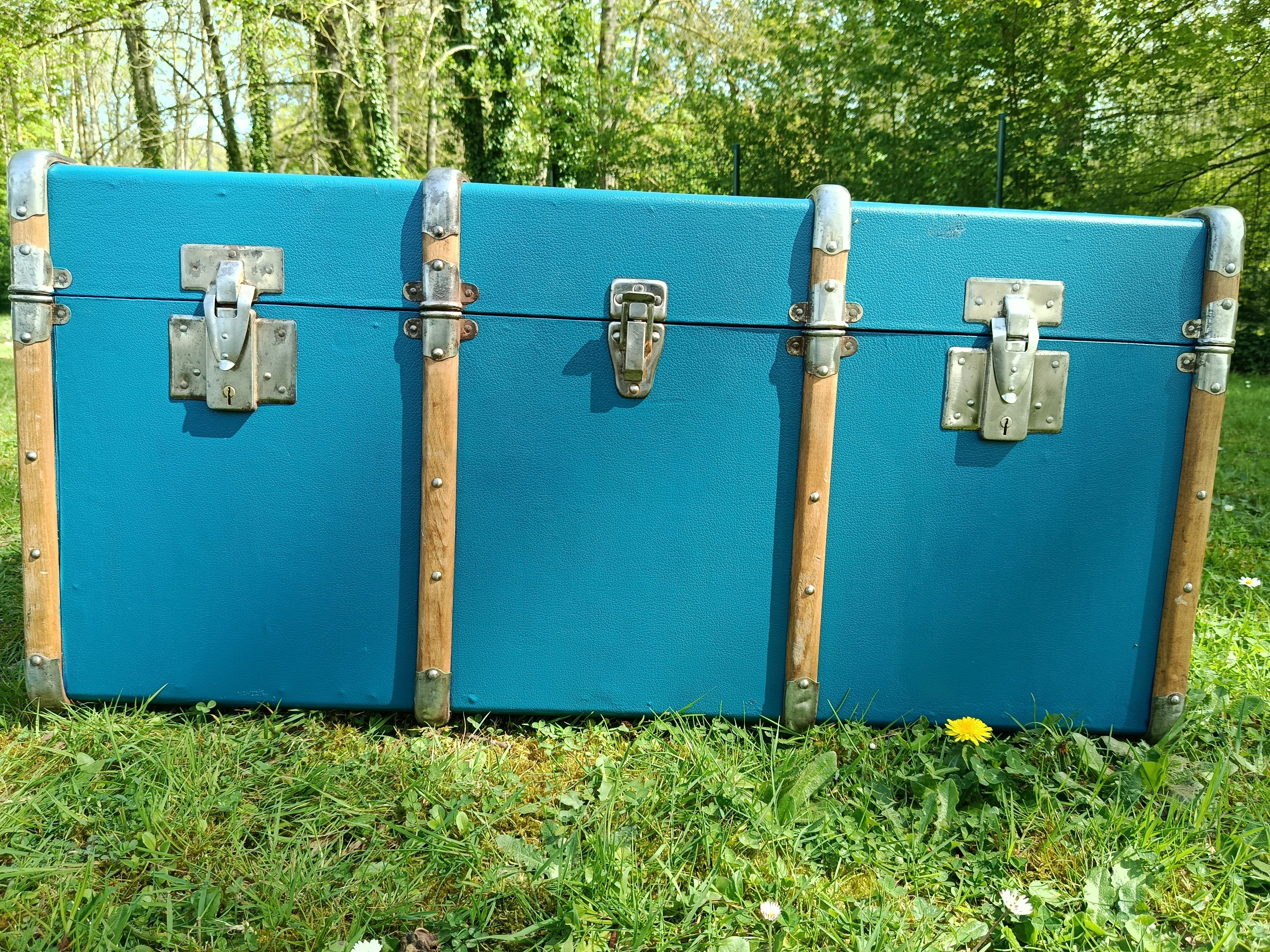 Malle lumineuse et très déco des années 30 - bel état - solide et légère - fermoirs en acier nickelé - idéale pour une déco jeune et rafraichissante - maison de bord de mer - vitrine de magasin - commerce - gite - salon ... adaptée pour bout de lit - bar - table basse ...