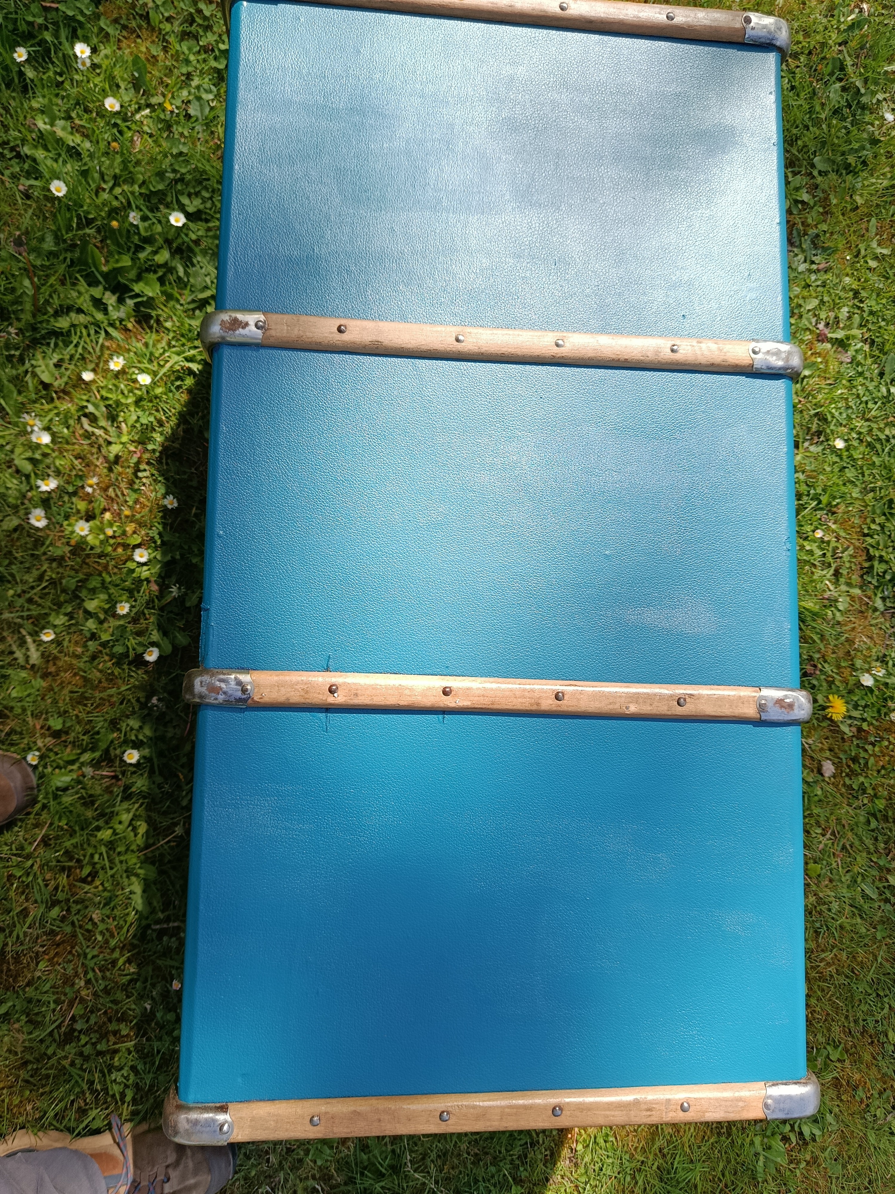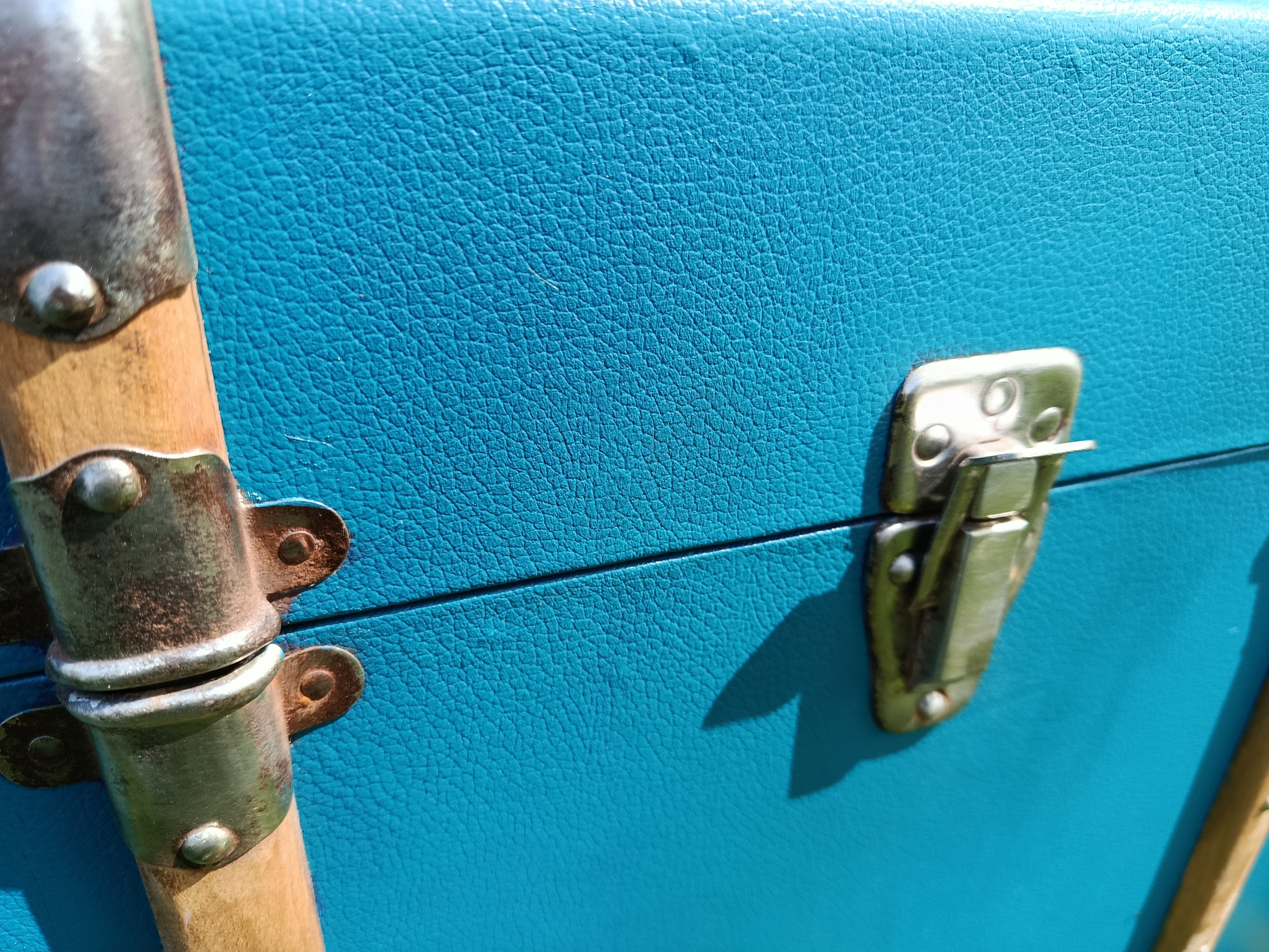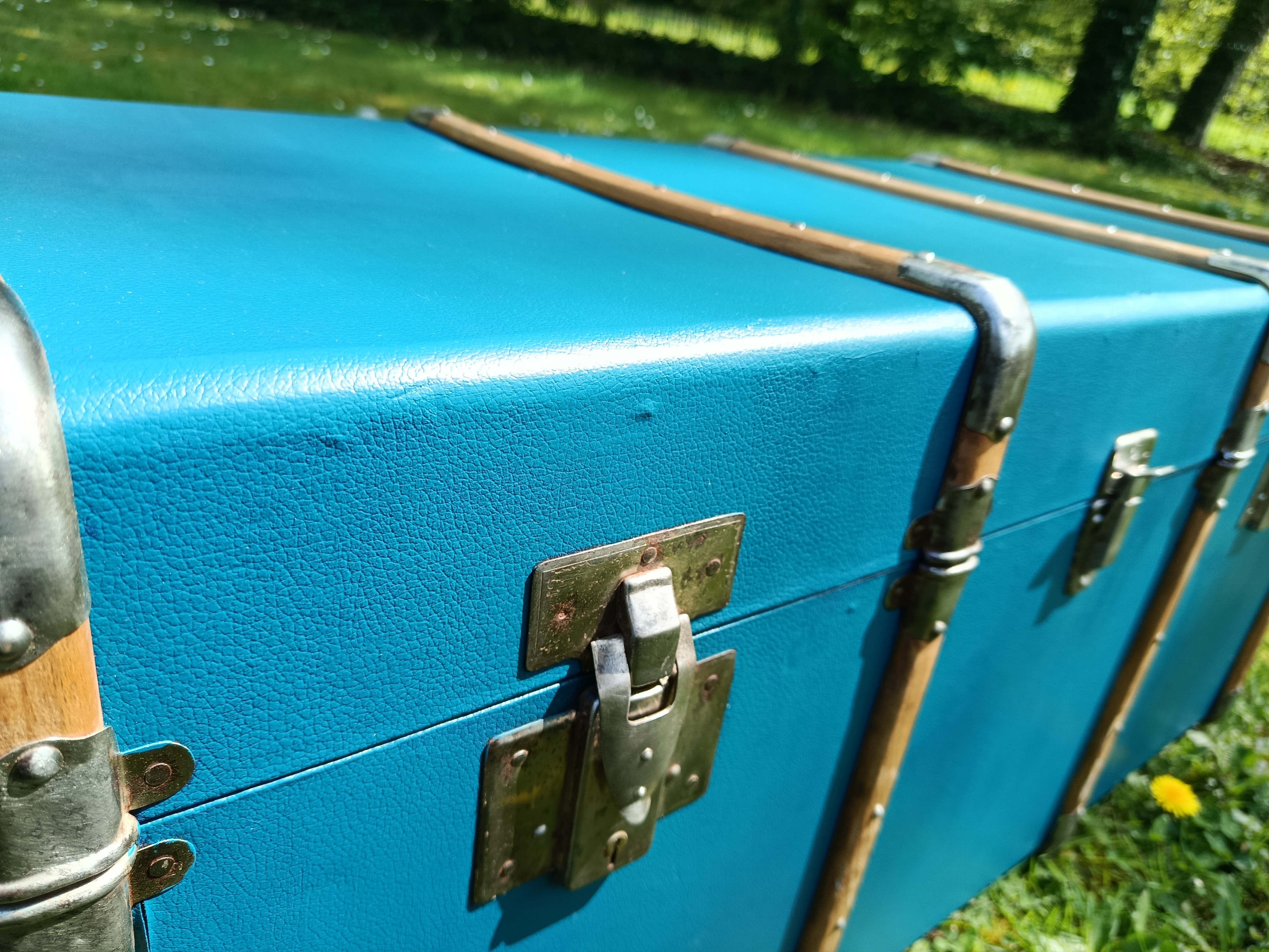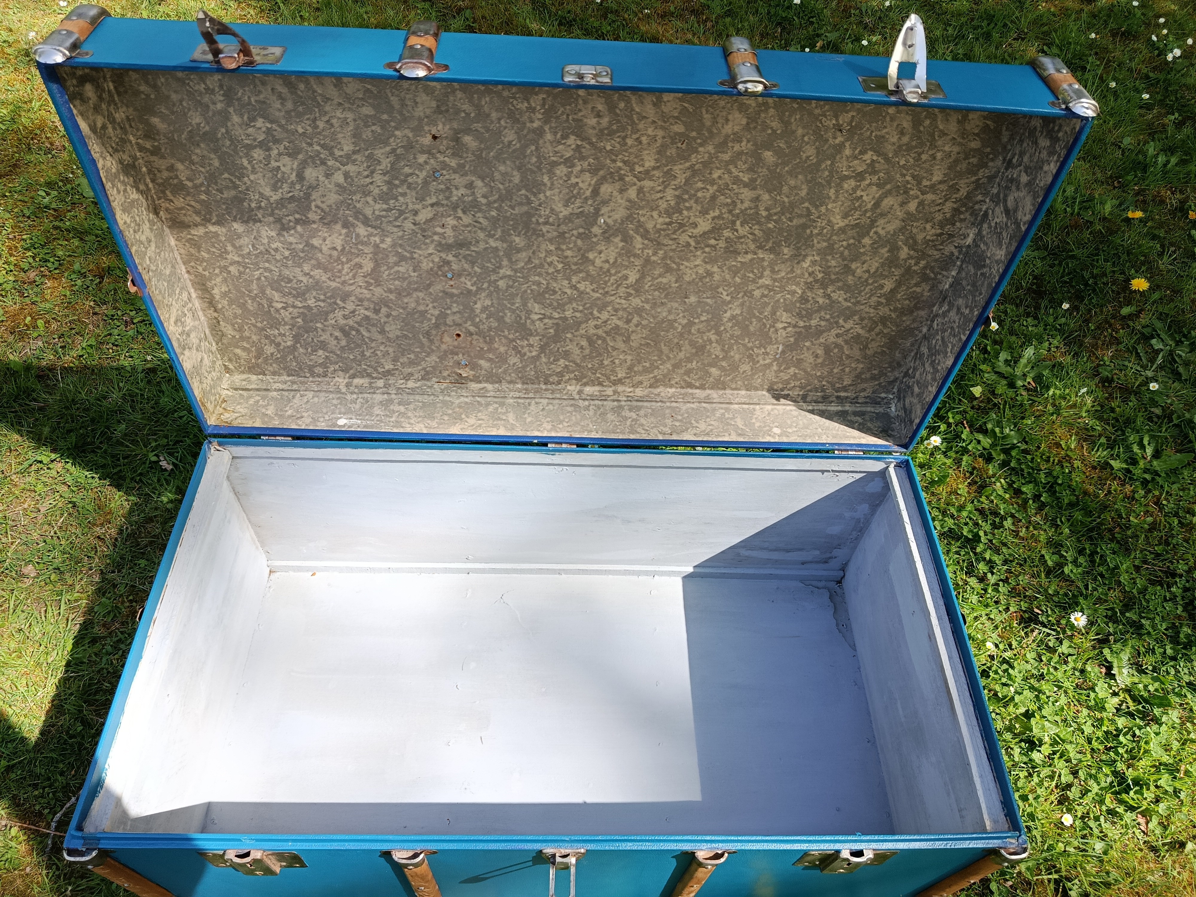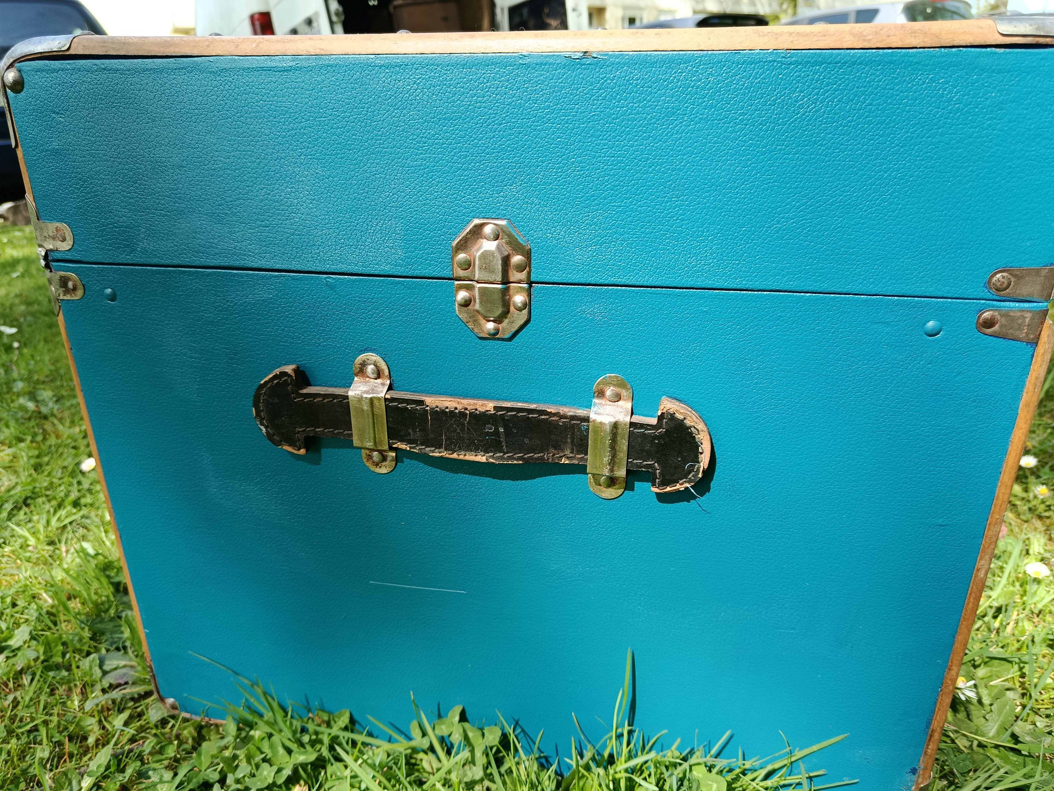 Malle lumineuse et très déco des années 30 - bel état - solide et légère - fermoirs en acier nickelé - idéale pour une déco jeune et rafraichissante - maison de bord de mer - vitrine de magasin - commerce - gite - salon ... adaptée pour bout de lit - bar - table basse ...