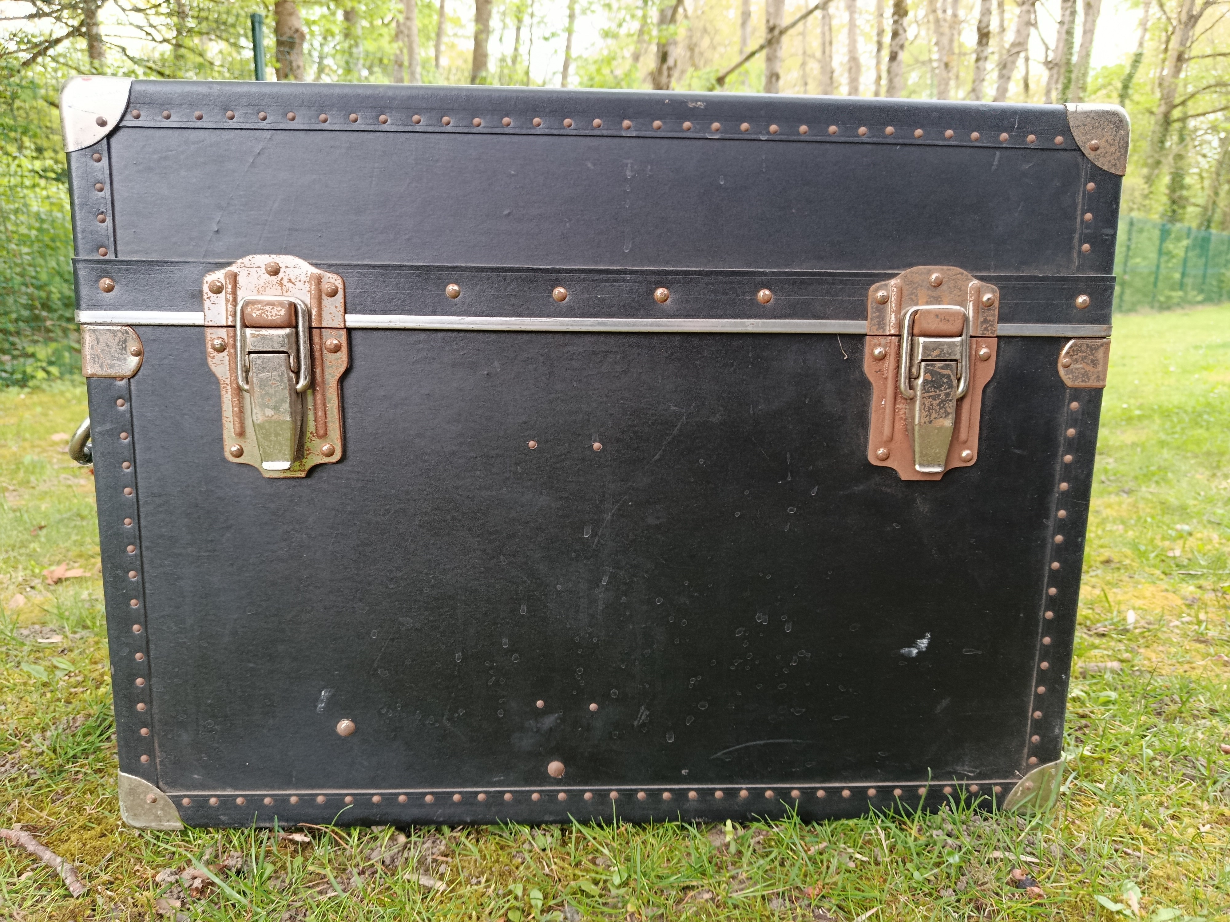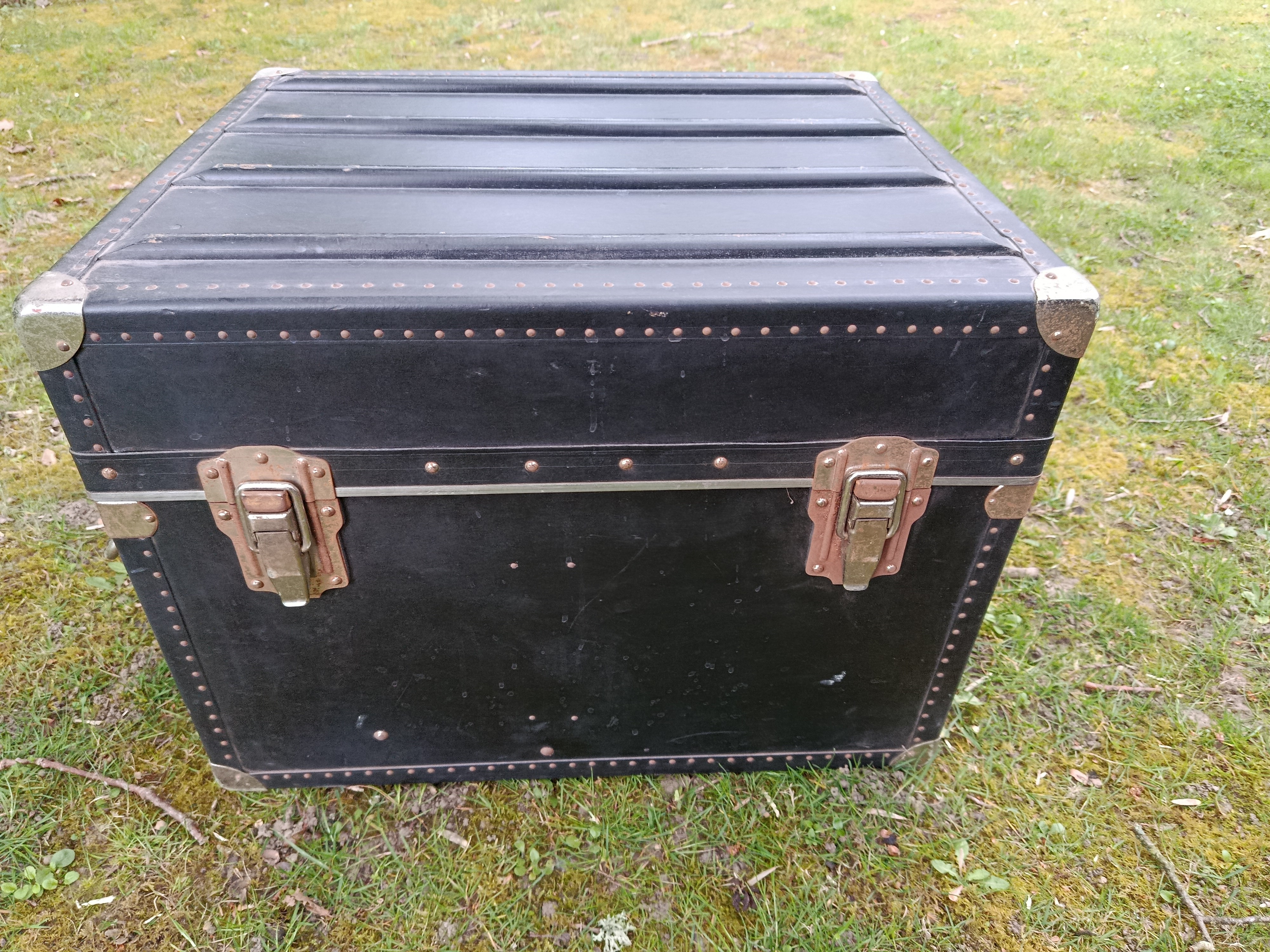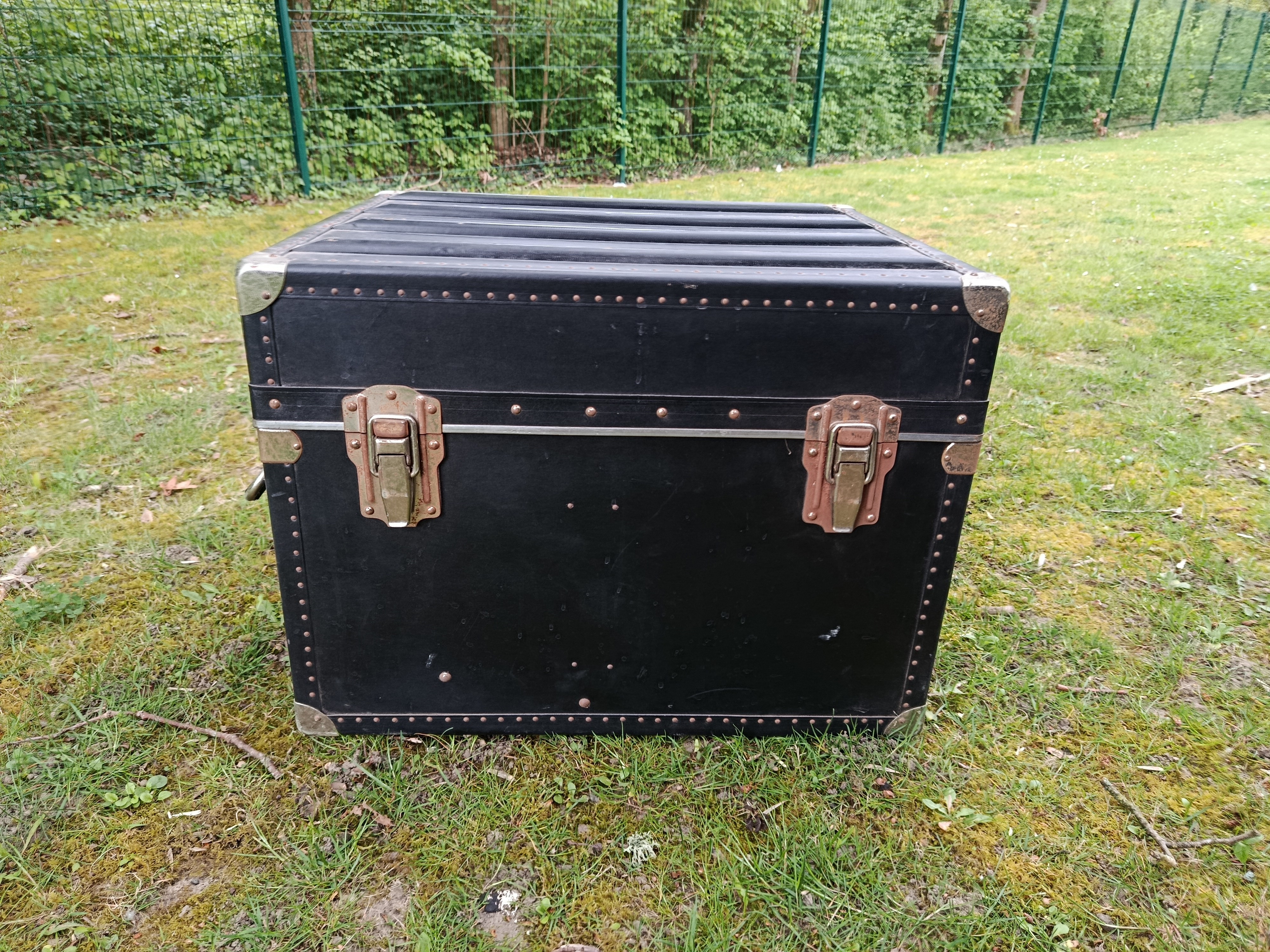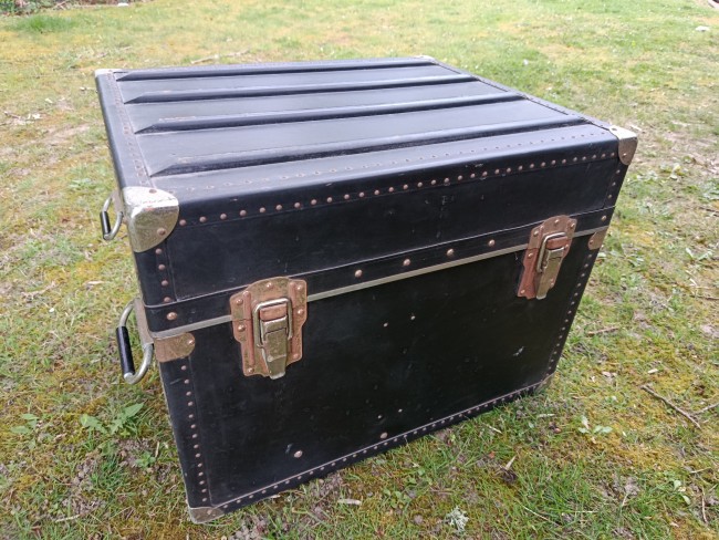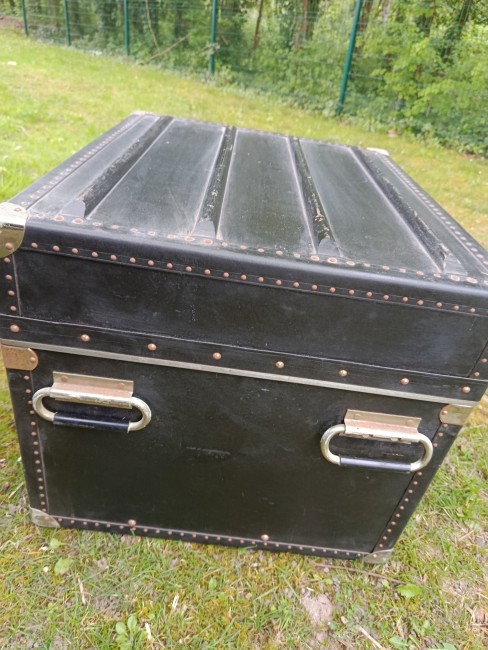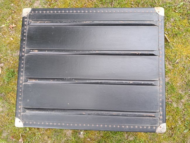 Malle cabine de transports aériens des années 50 - modèle américain - très atypique par ses dimensions - intéressante pour de petits espaces - détournée en table basse ou de salon - dimensions très pratiques - capable de contenir bouteilles ou autres objets assez hauts - matières : bois et lozine - fermoirs en acier