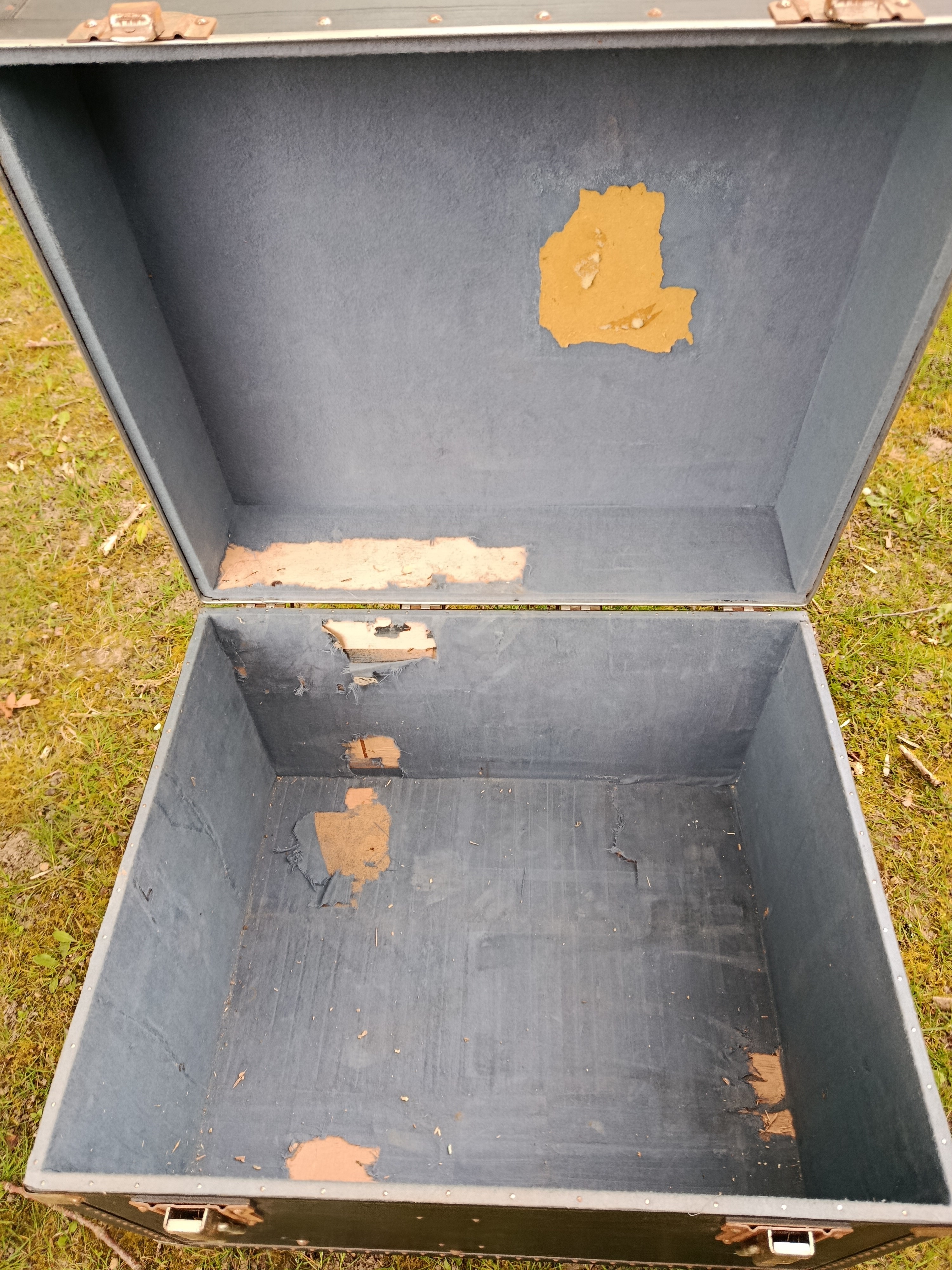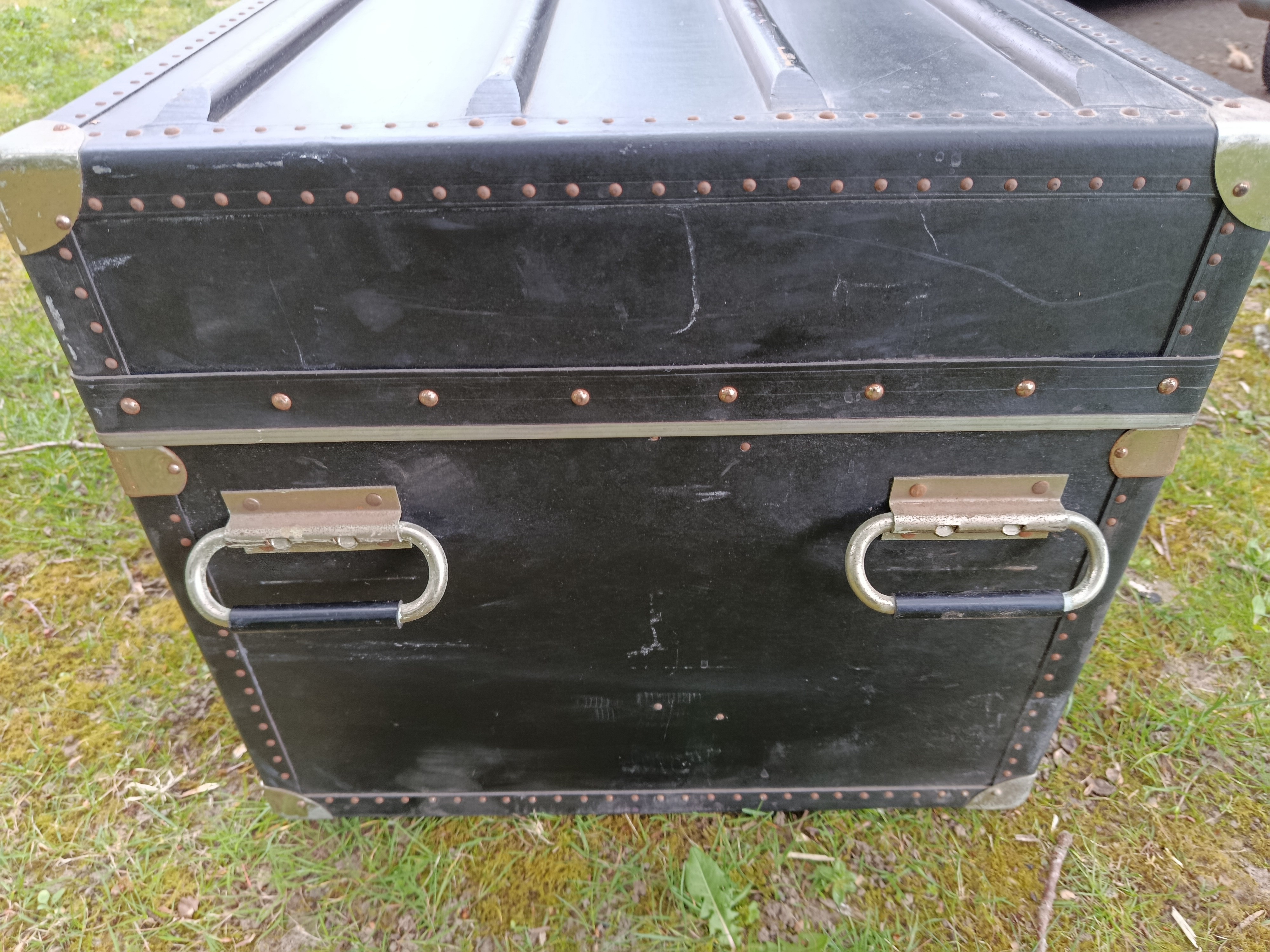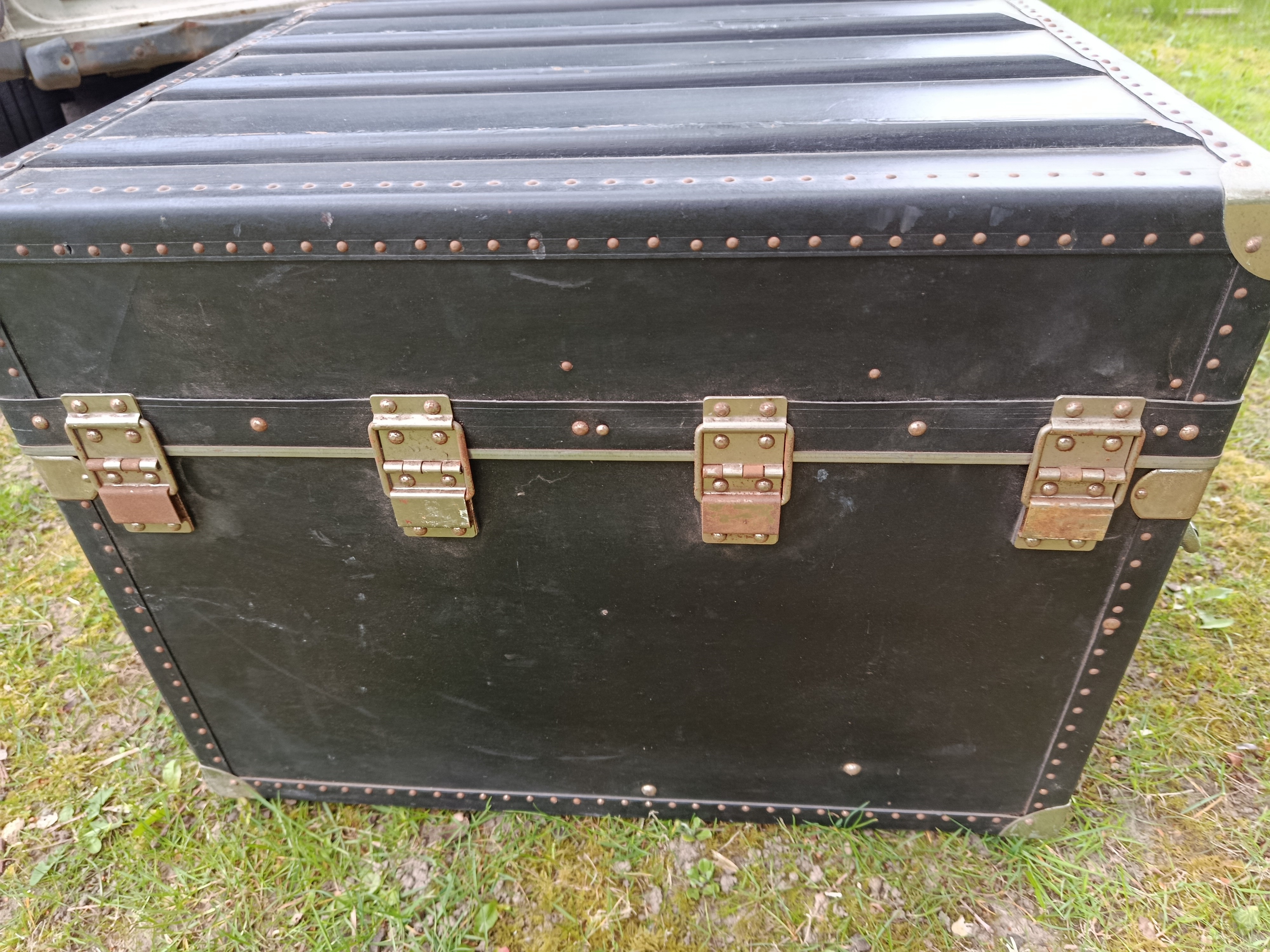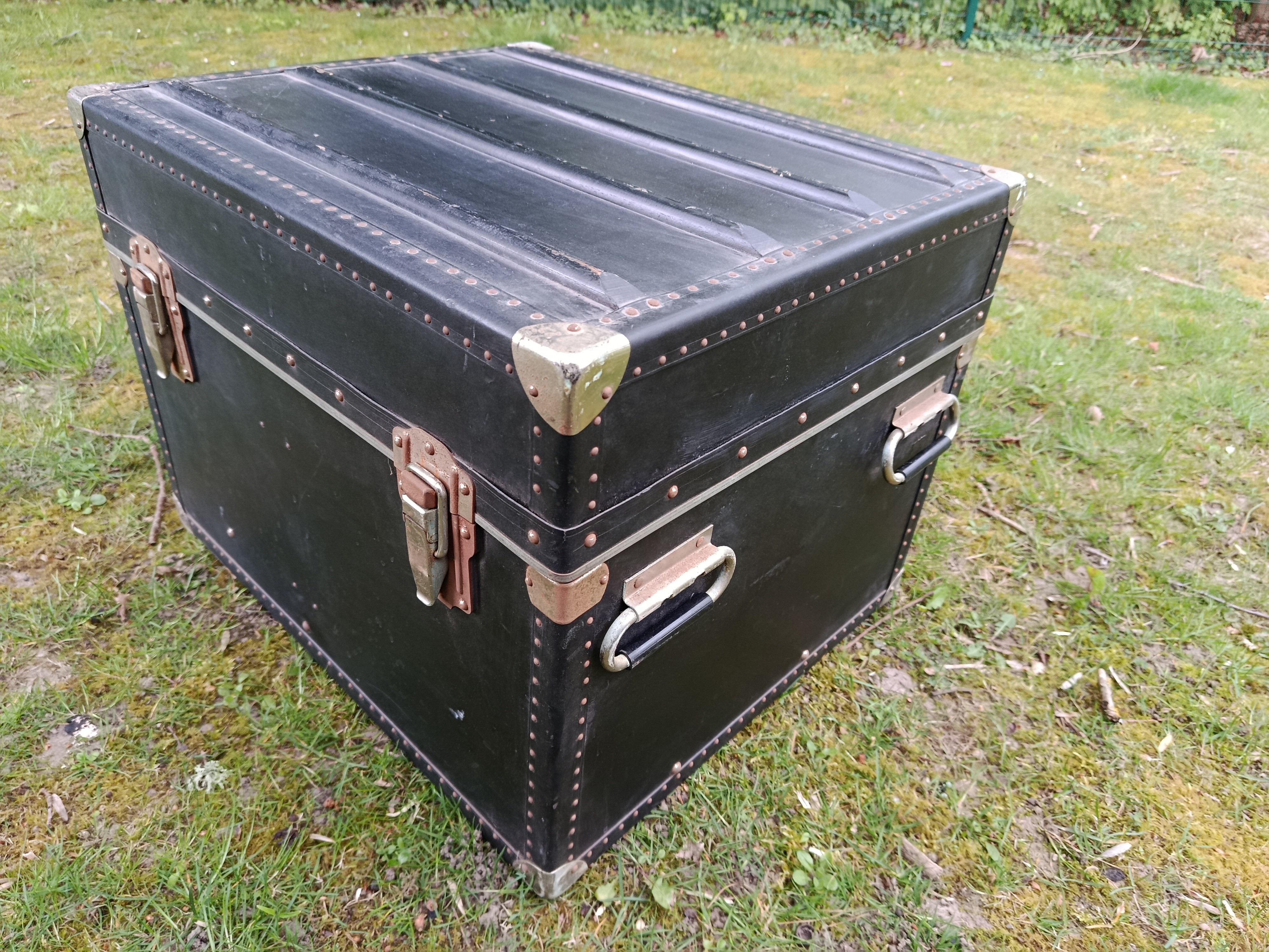 Malle cabine de transports aériens des années 50 - modèle américain - très atypique par ses dimensions - intéressante pour de petits espaces - détournée en table basse ou de salon - dimensions très pratiques - capable de contenir bouteilles ou autres objets assez hauts - matières : bois et lozine - fermoirs en acier